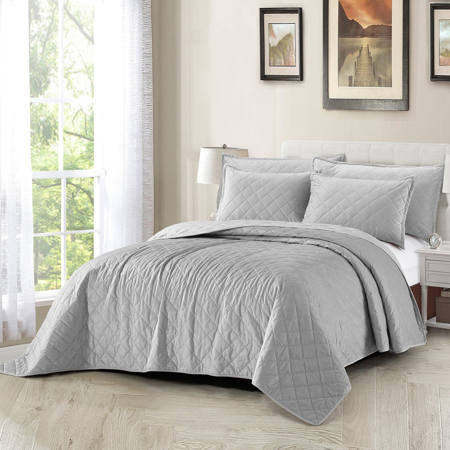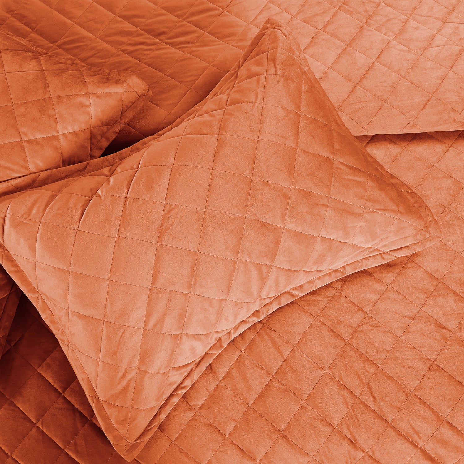 Super Soft Flannel Microfiber Velvet 5-Piece bedspread sets are designed for comfort, warmth, and class. The highly detailed diamond pattern quilting provides an elegant ambiance to your bedroom. A set includes 1 – Oversized Bedspread 122 inches x 106 inches, 2 - Shams 20 inches x 26 inches and 2 -Shams 20 inches x 36 inches. Simply machine wash, separately, using cold water on a gentle cycle. Tumble dry on lowest heat setting to avoid heat damage to your set.