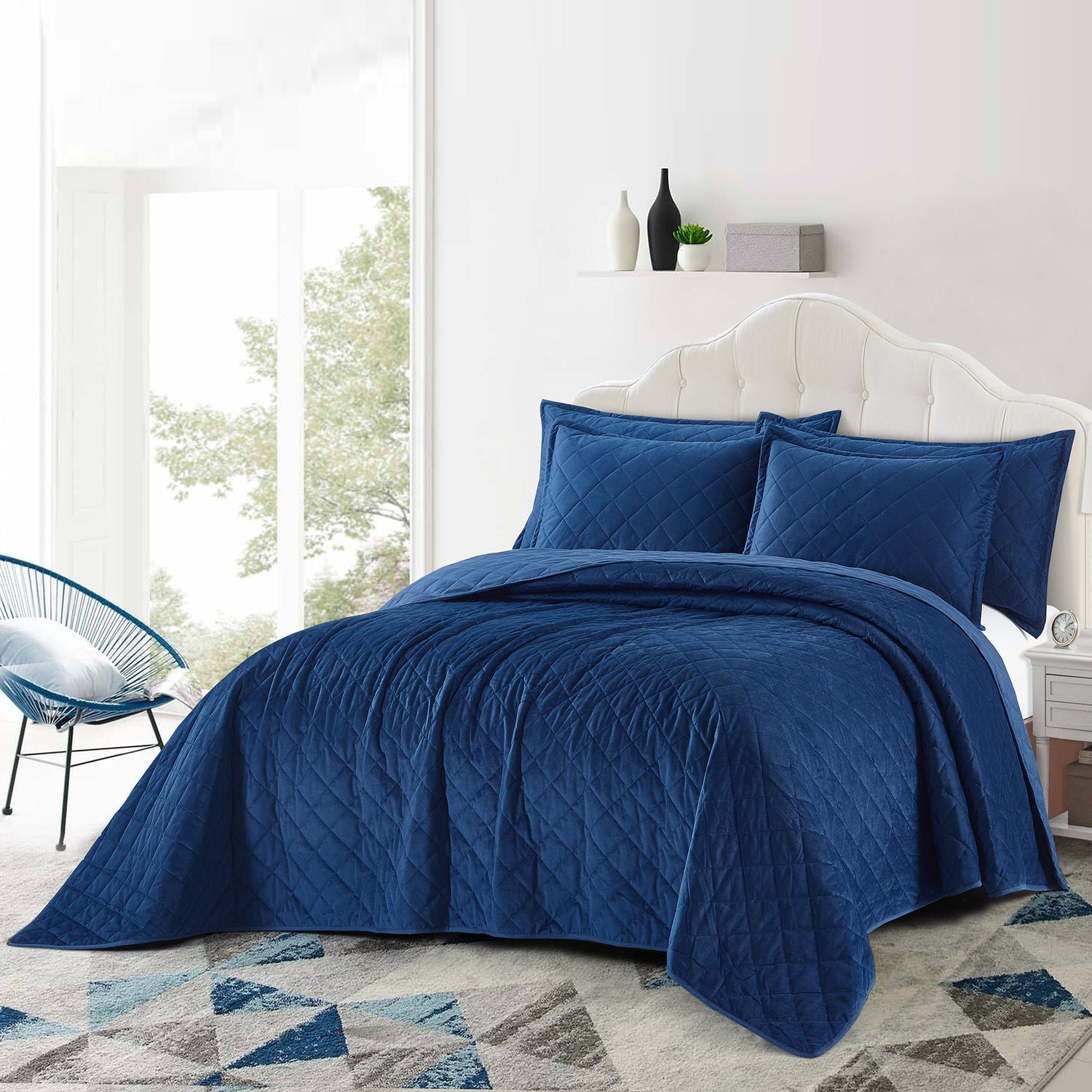 5 Piece Velvet Quilted bedspread Set (Oversize King 122"x106“)