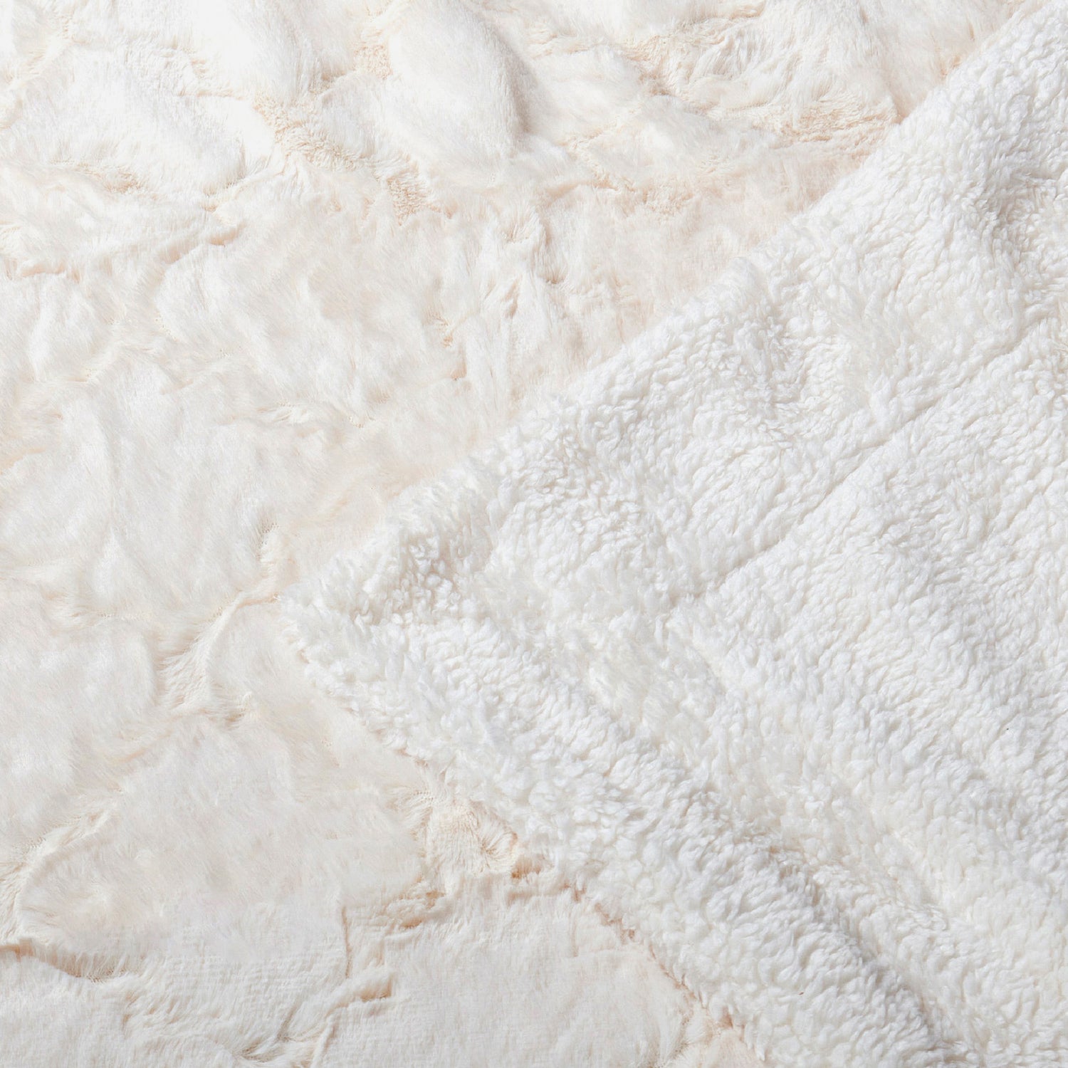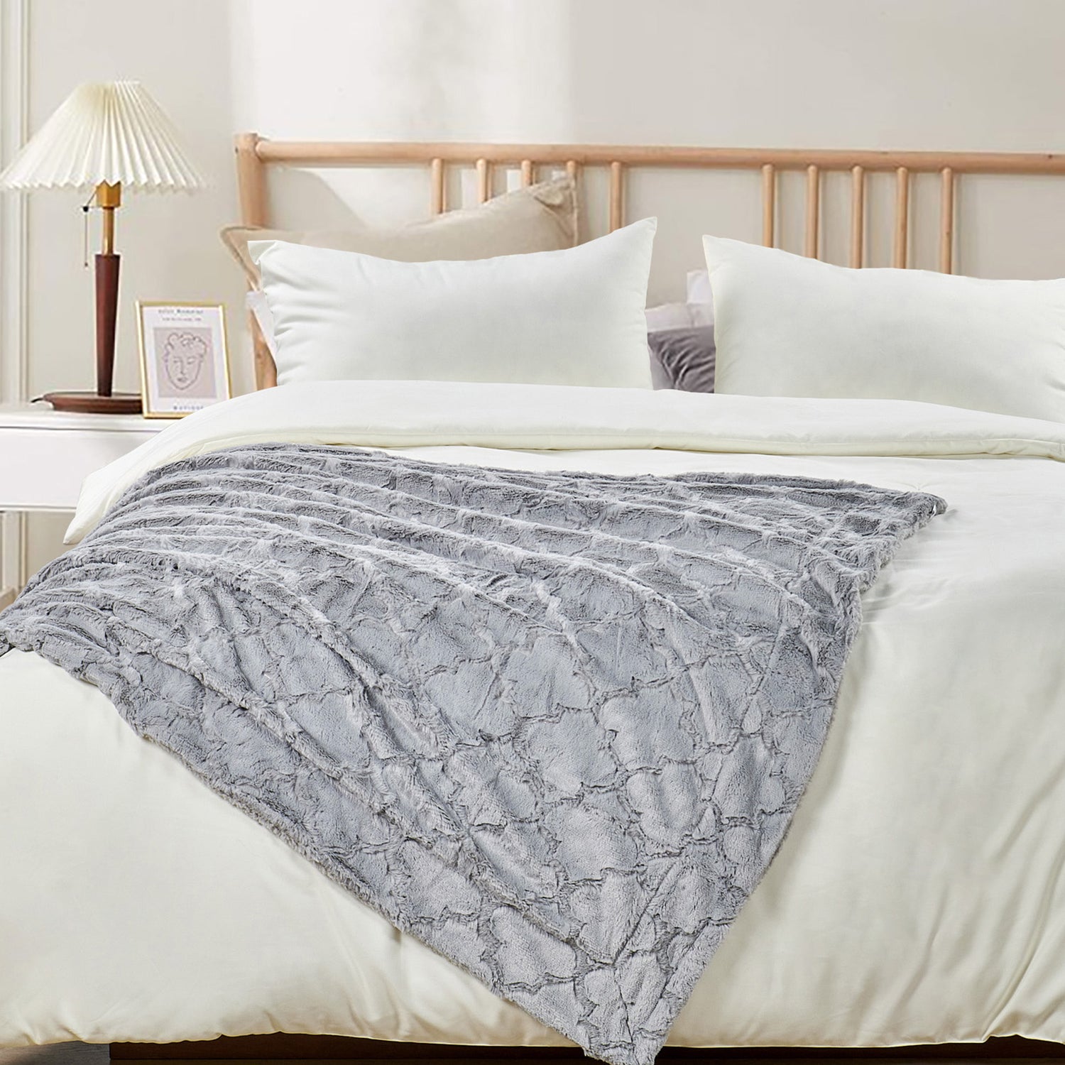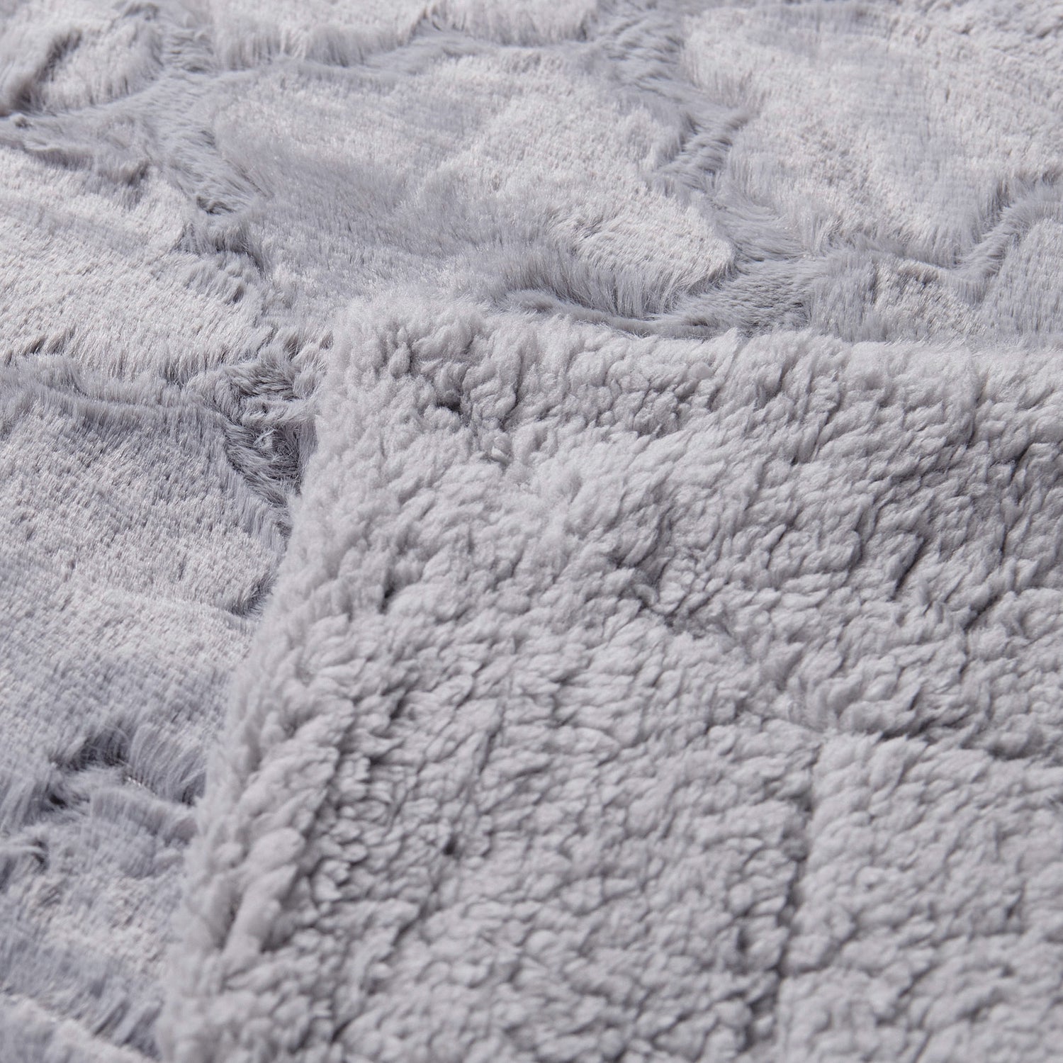 • Construction: Made from premium faux fur with a modern ogee pattern on the front and soft sherpa on the reverse, this blanket offers a cozy and breathable experience.