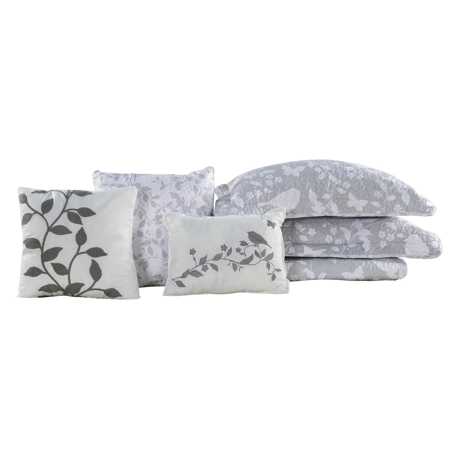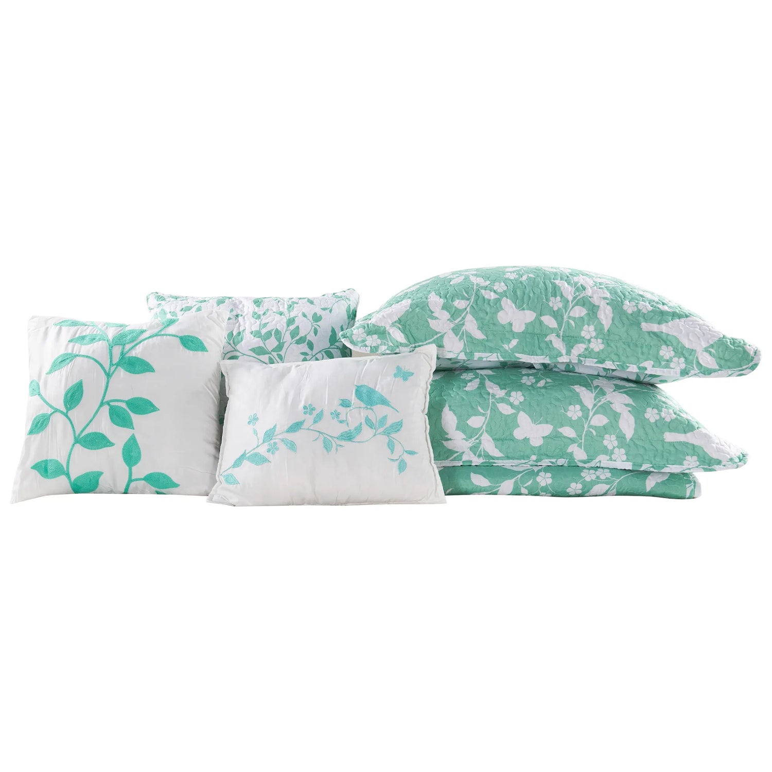 6 Piece Birdsong Printed Microfiber Quilt Set