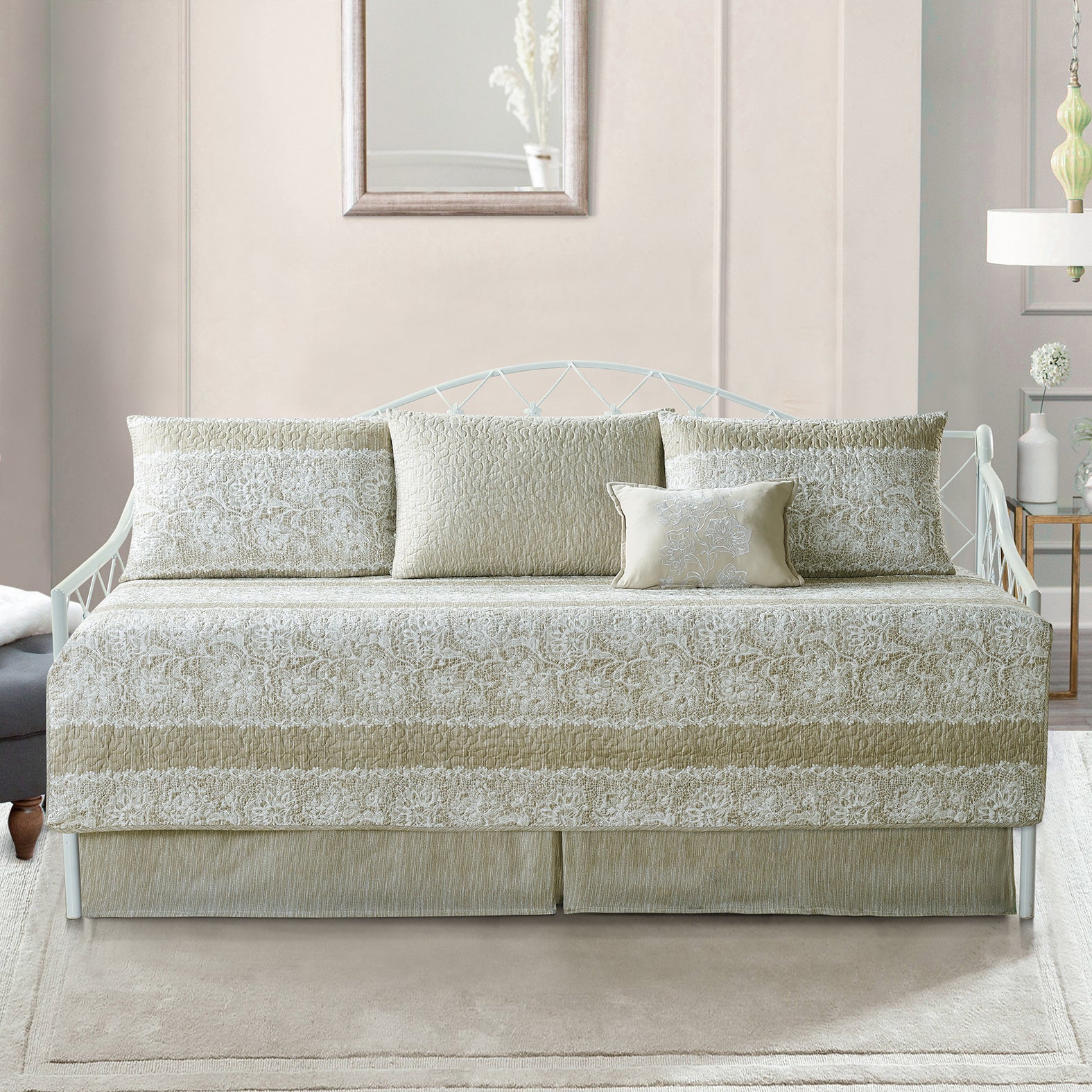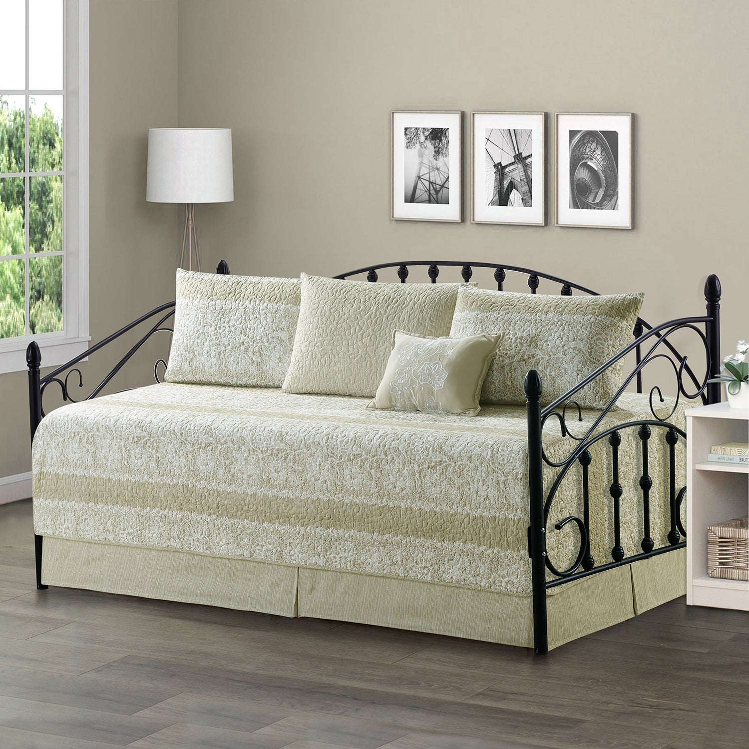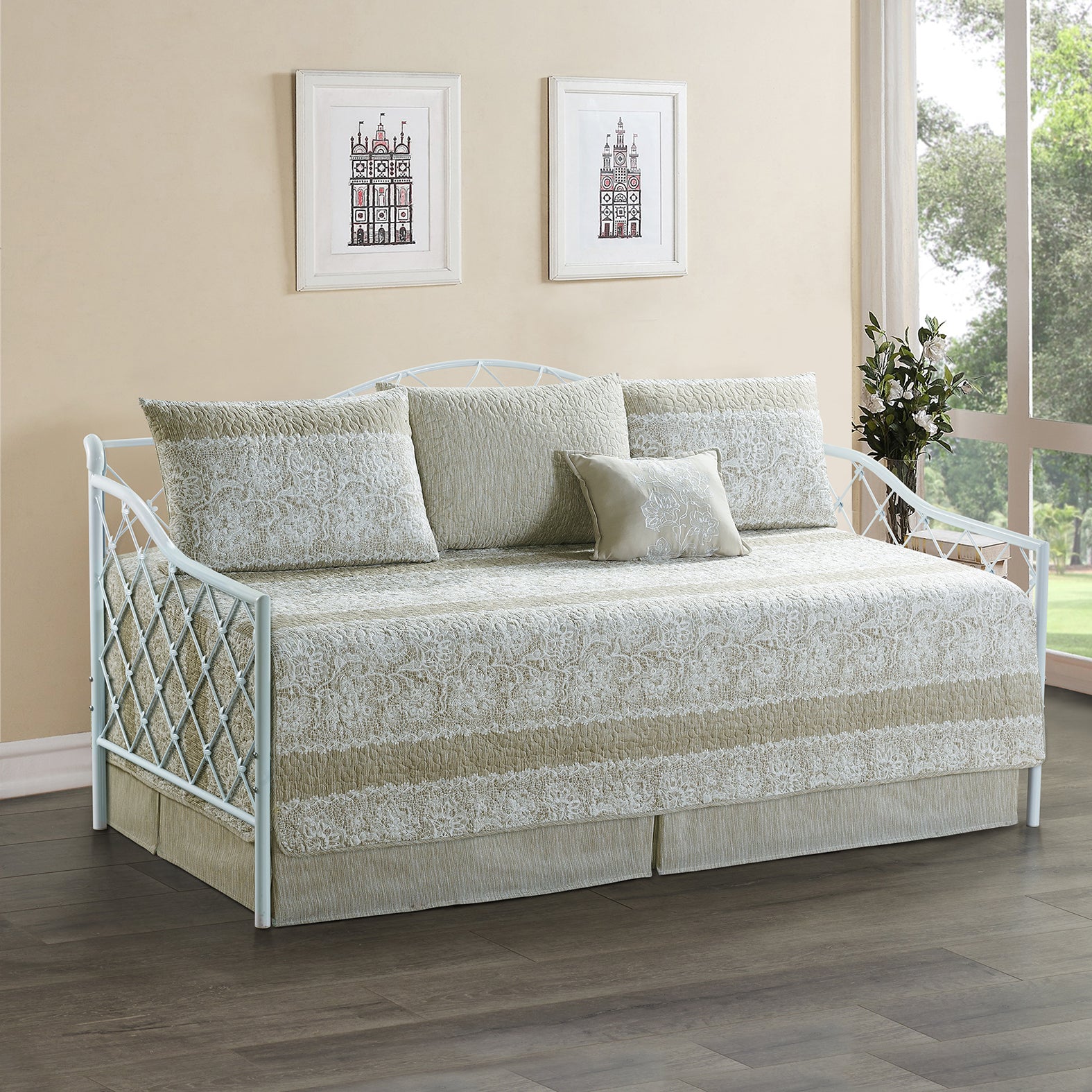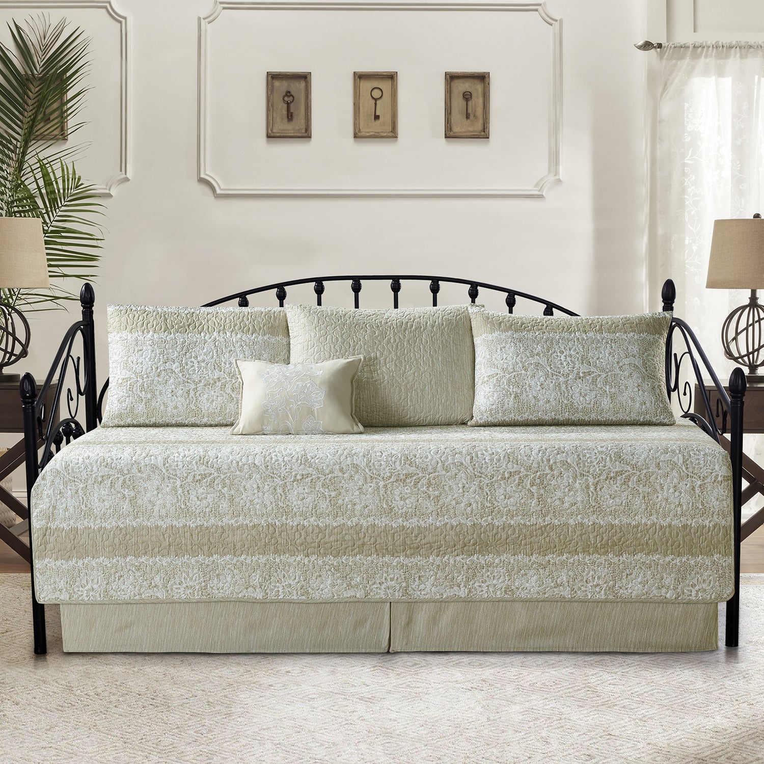 - Set includes: 1 Daybed Cover (75 inches x 39 inches), 3 Pillow Shams (20 inches x 26 inches + 2 inches), 1 Decorative Pillow (12 inches x 16 inches) and, 1 Bed Skirt (60 inches x 80 inches + 18 inches).
