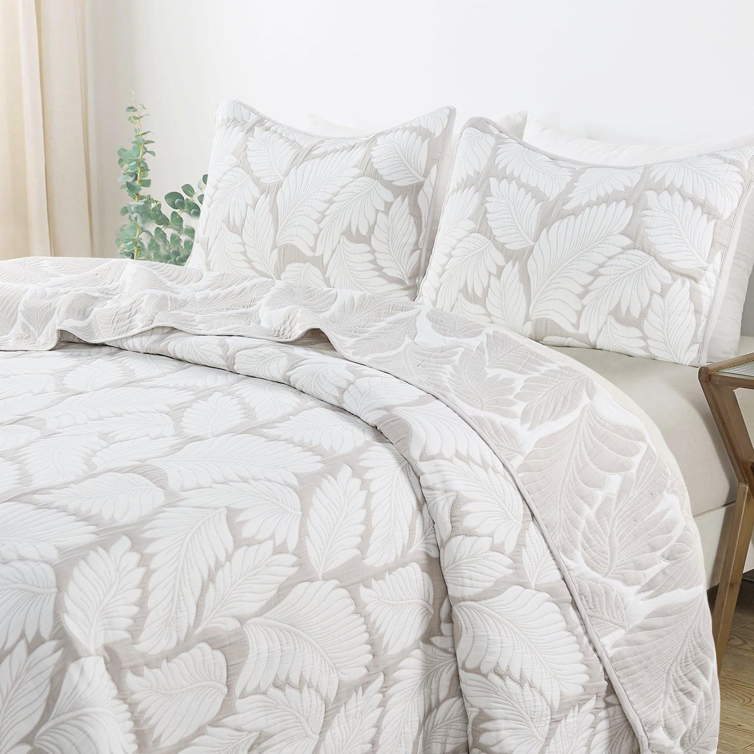 • Beautiful banana leaf pattern. Available in Queen and King sizes Includes matching shams.