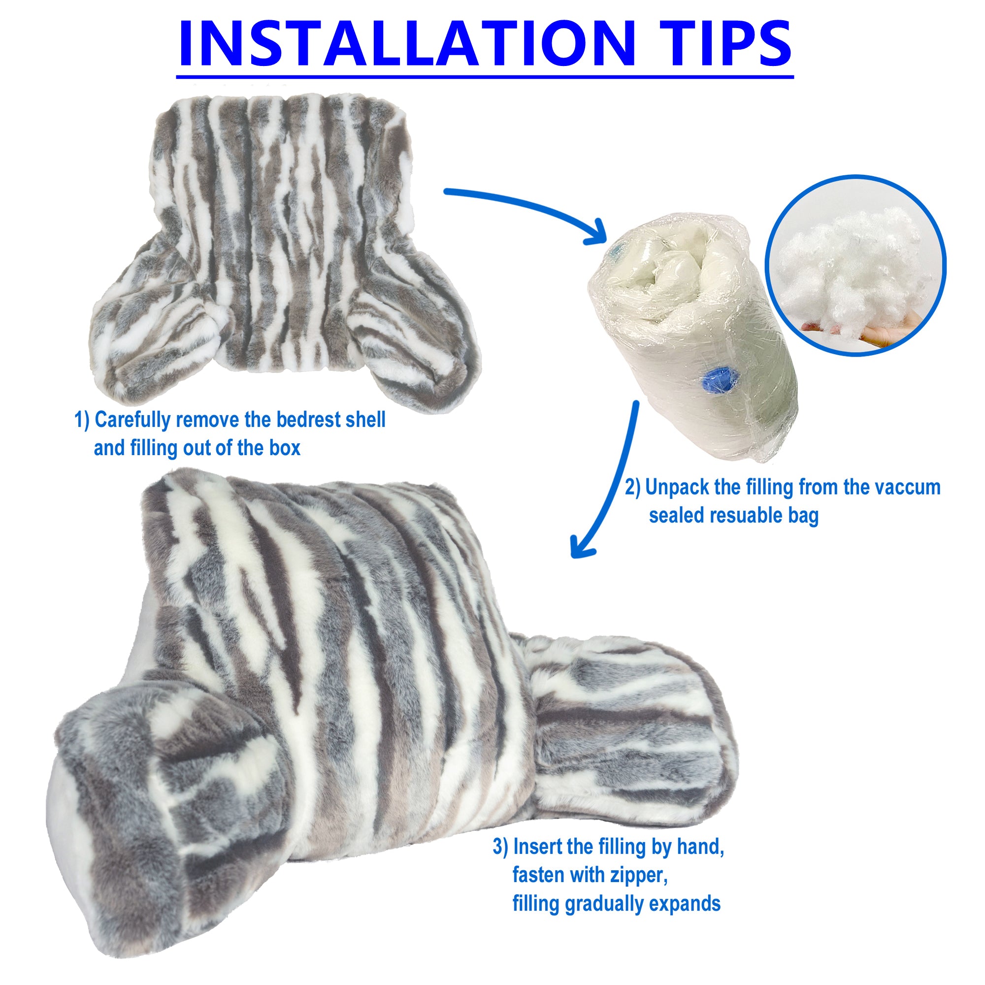 Make comfort and style your bedtime ritual with this Multi-Jaquard Faux Fur Bedrest! Its sturdy handle and perfect size add practicality while its well-crafted design and faux fur fabric provide a luxurious feel. Support your neck, back, and arms while its pocket design keeps small accessories close at hand. Plus, you can machine wash the shell using cold water on a gentle cycle and tumble dry on the lowest heat setting.