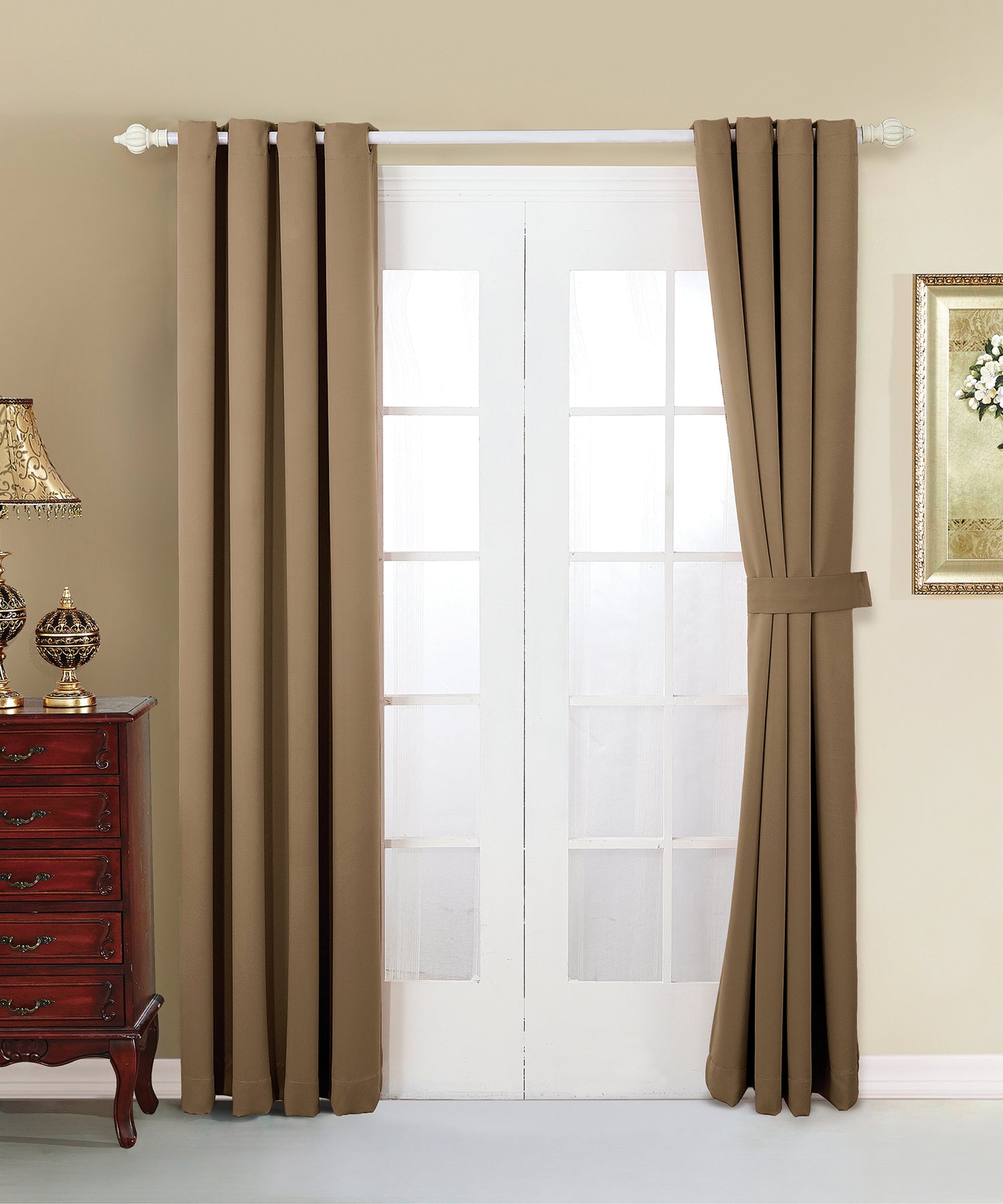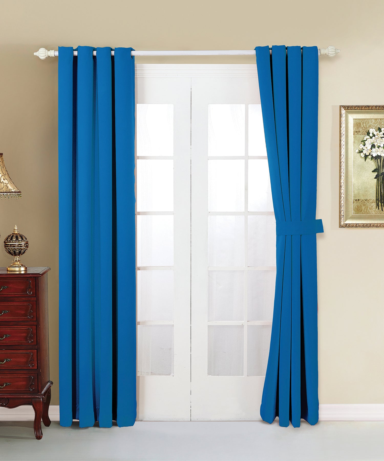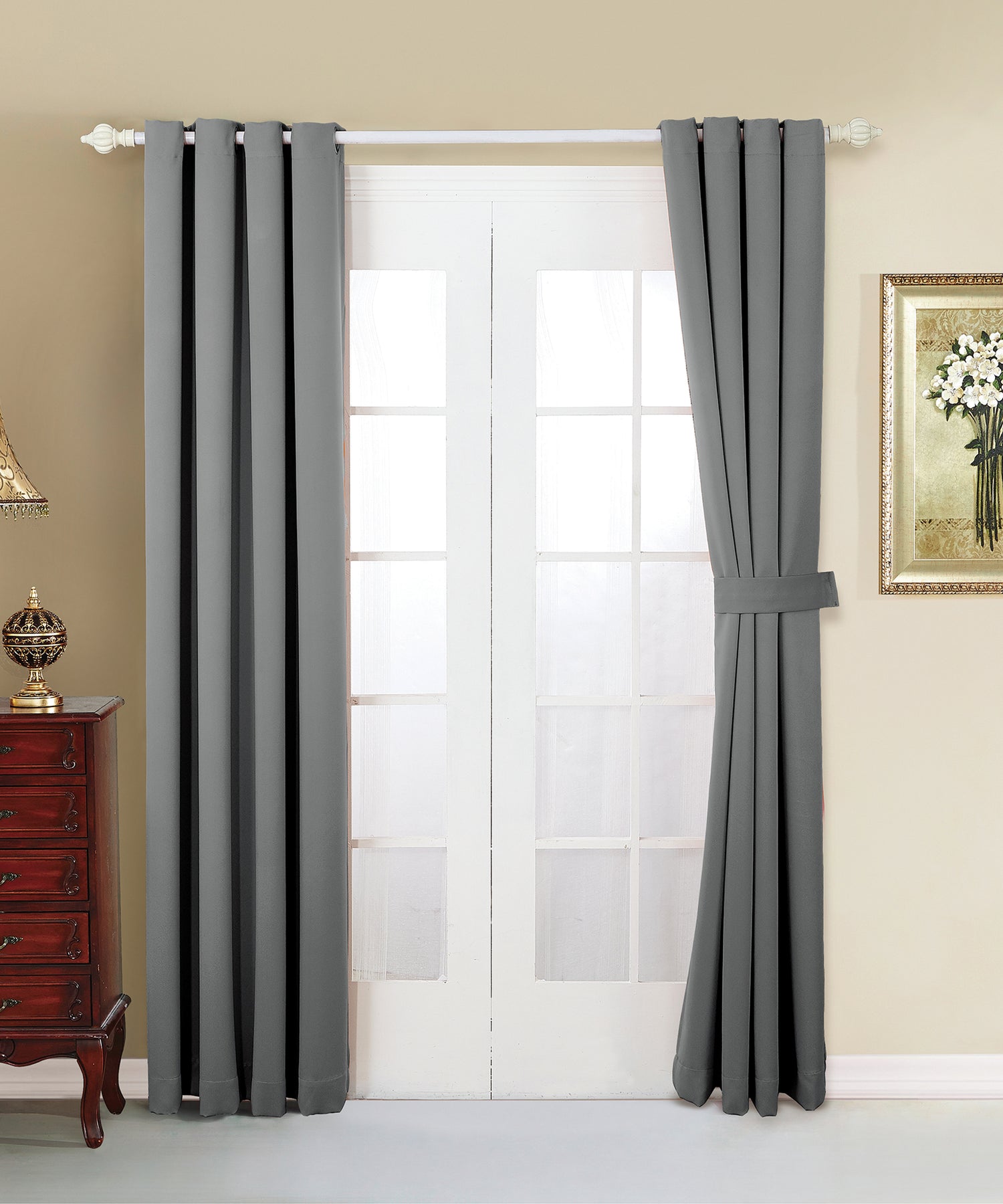 Solid Blackout Curtain - Set of 4 (2 Curtains and 2 Tiebacks Set)