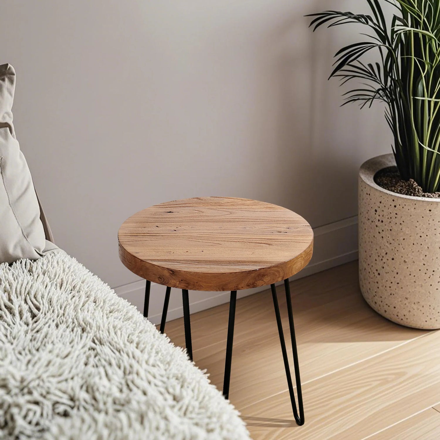 • Easy Assembly: The end table includes old pine wood slab, black metal table legs and screws.