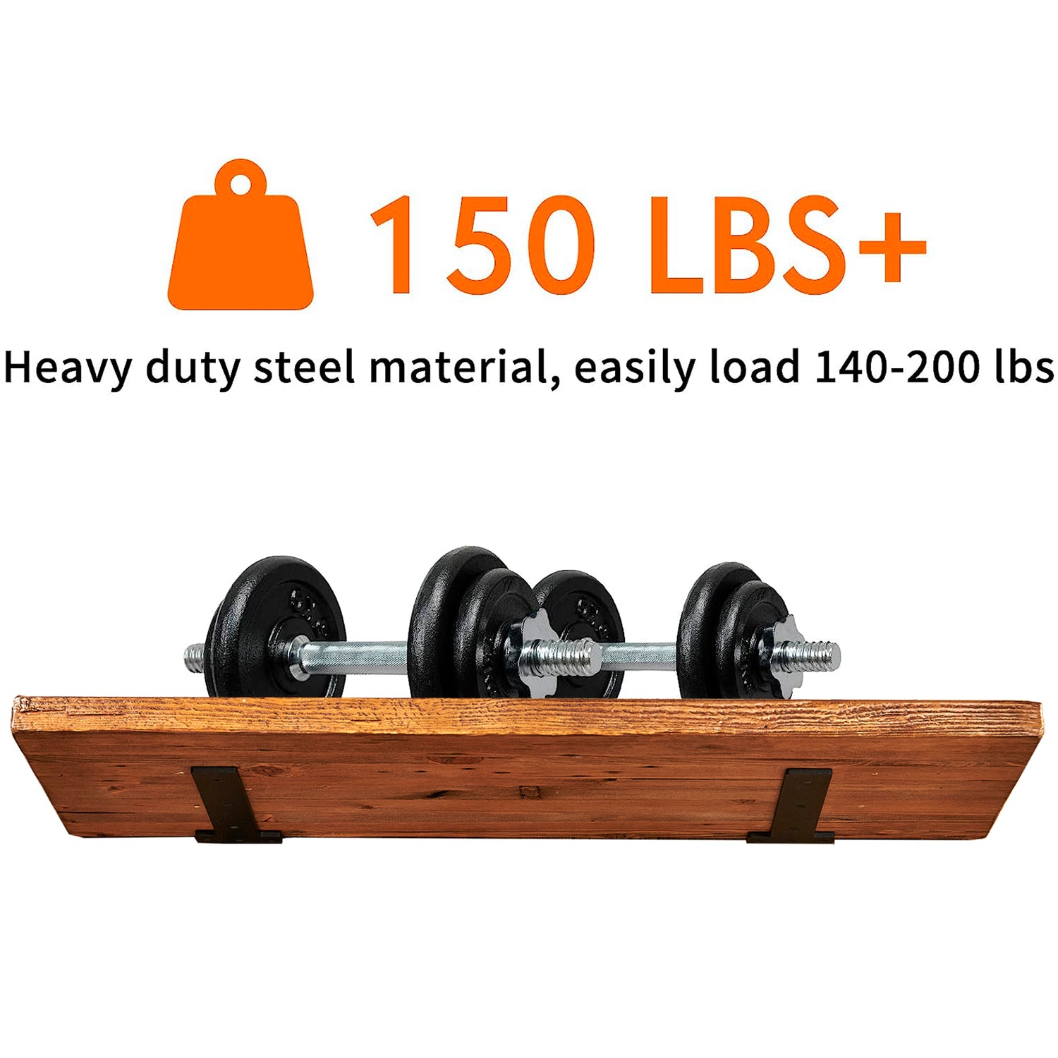 • HEAVY DUTY: These shelf brackets made of premium steel support heavy weight, maximum support weight of 150 lbs for a pair of this floating shelf bracket, durable and not easy to break. In additional, they have black coated finish for long lasting protection, against rust, you can use it both indoor and outdoor.