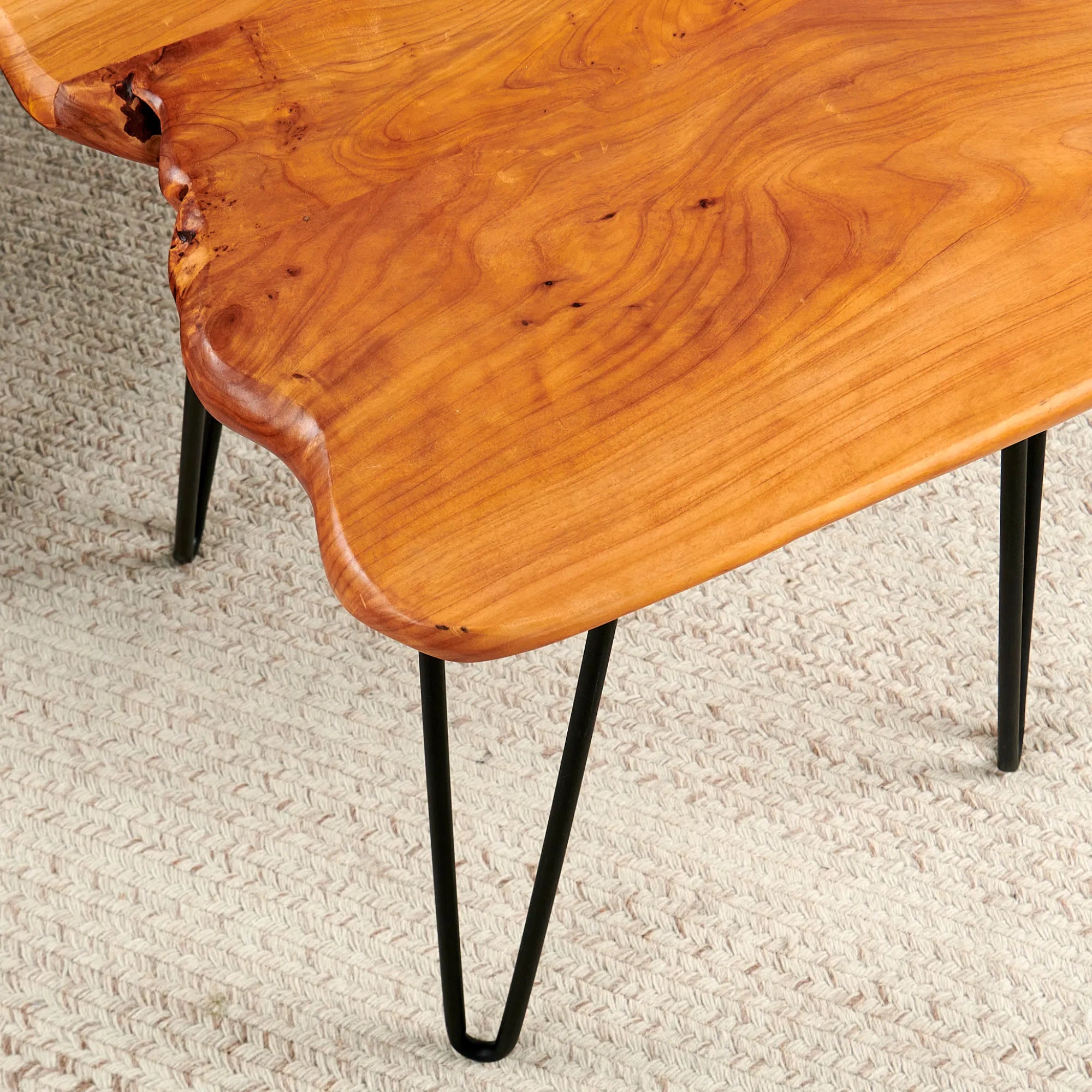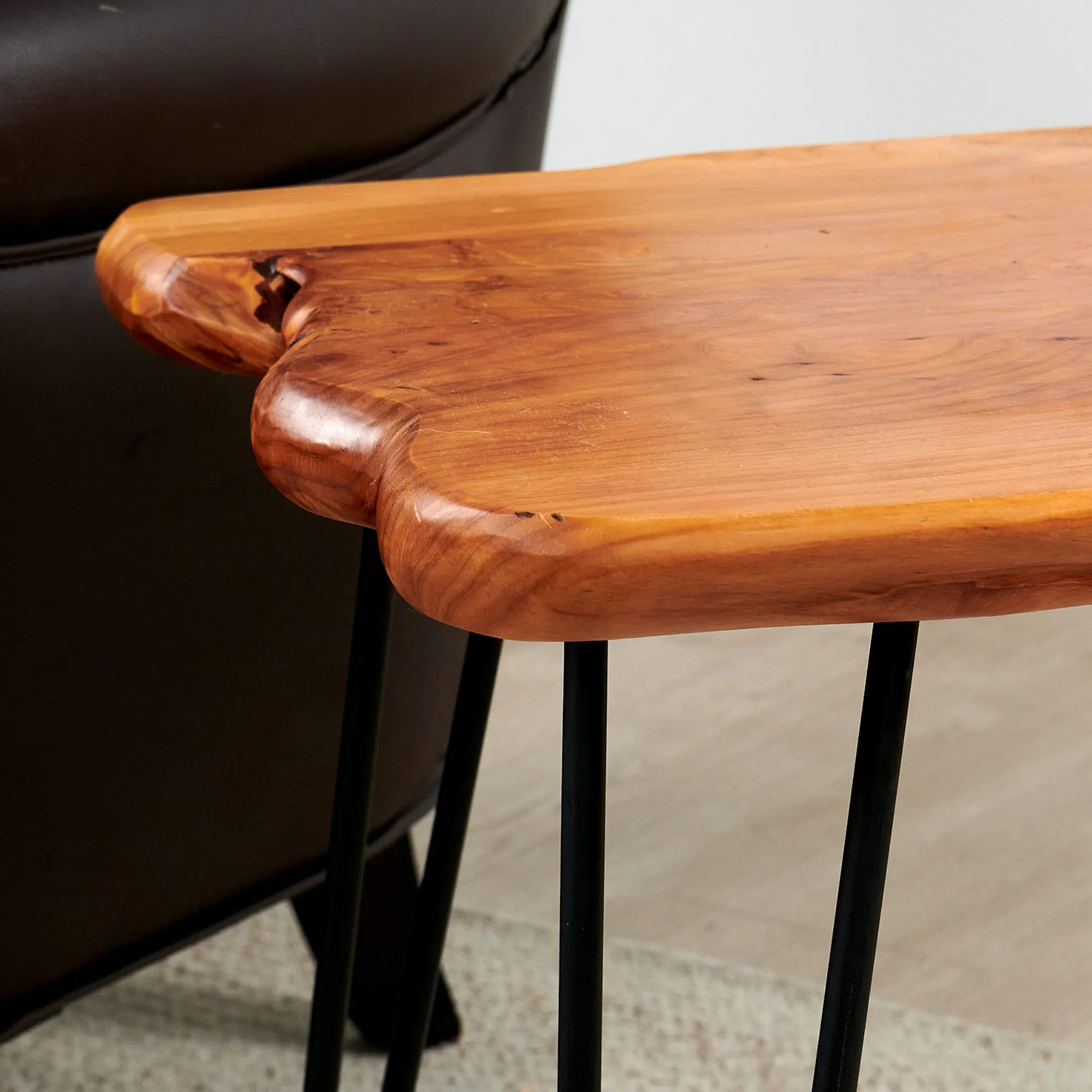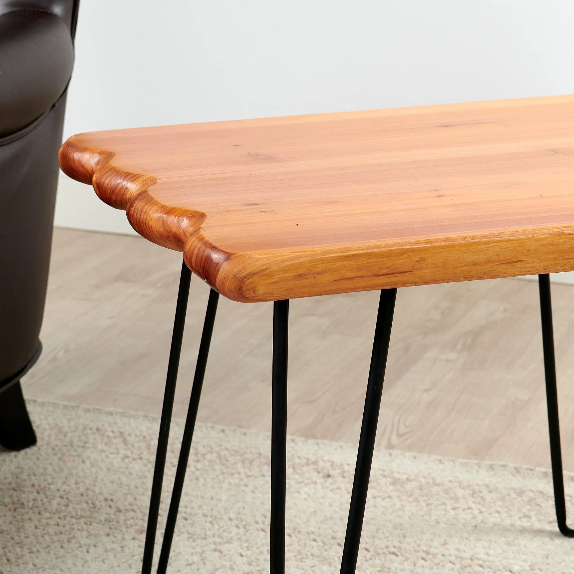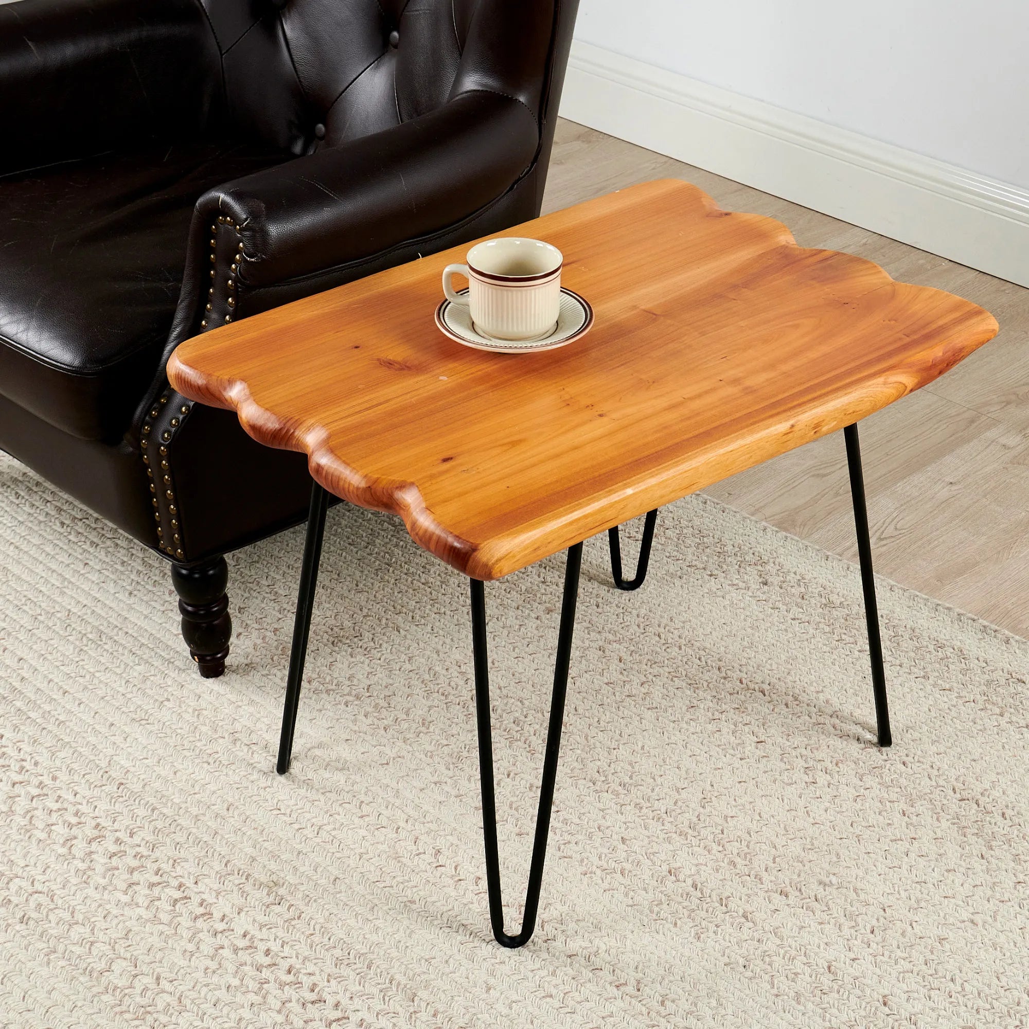 - 100% SOLID CEDARWOOD! Skilled partisans hand-pick and sand down each slab of wood preserving the natural shape, wood grain patterns, and color. Built sturdy with heavy-duty, black powder-coated hairpin legs with a weight capacity of 200 pounds. Each piece of wood undergoes a multi-step process that includes recombination, polishing, painting, and waxing and is finished with a natural lacquer.