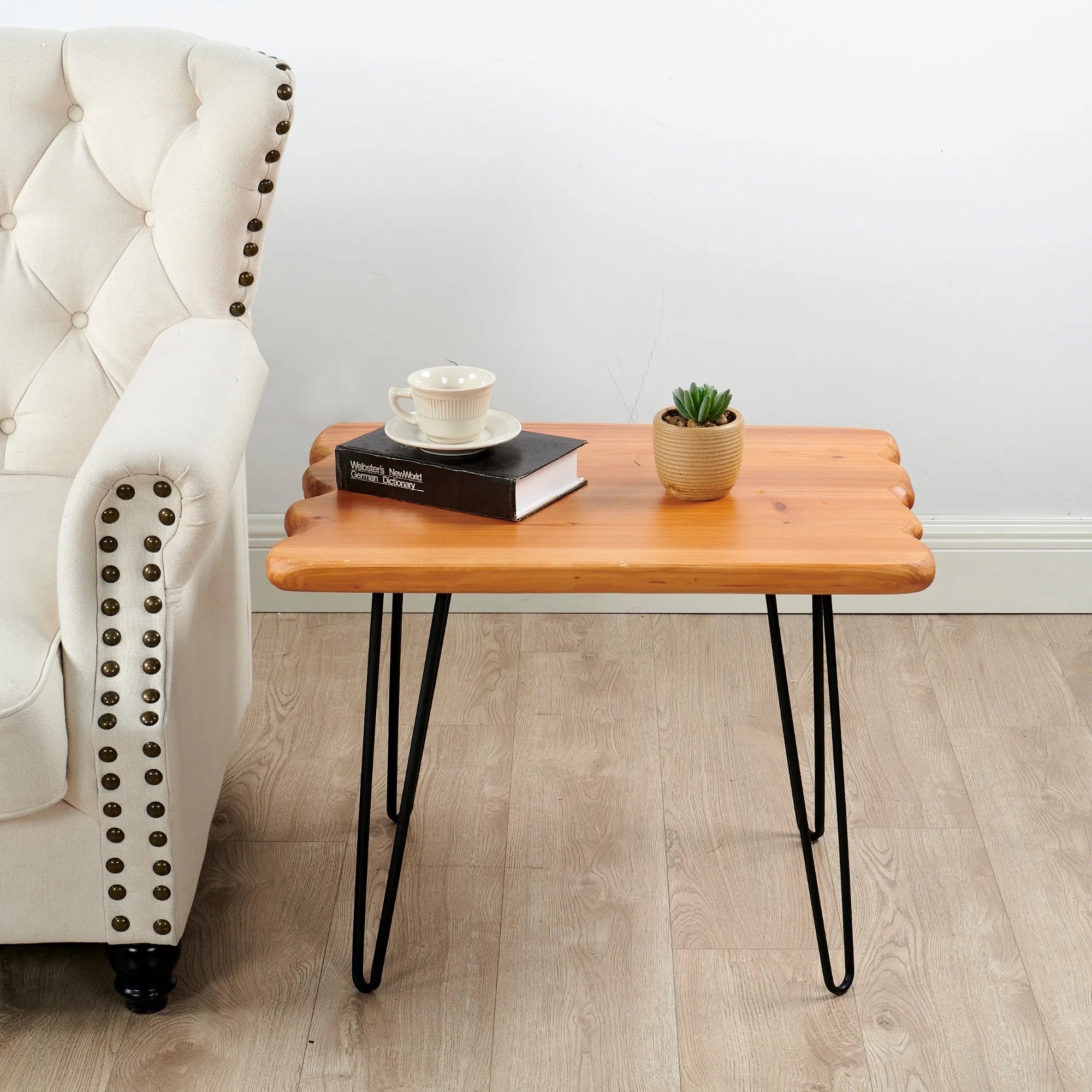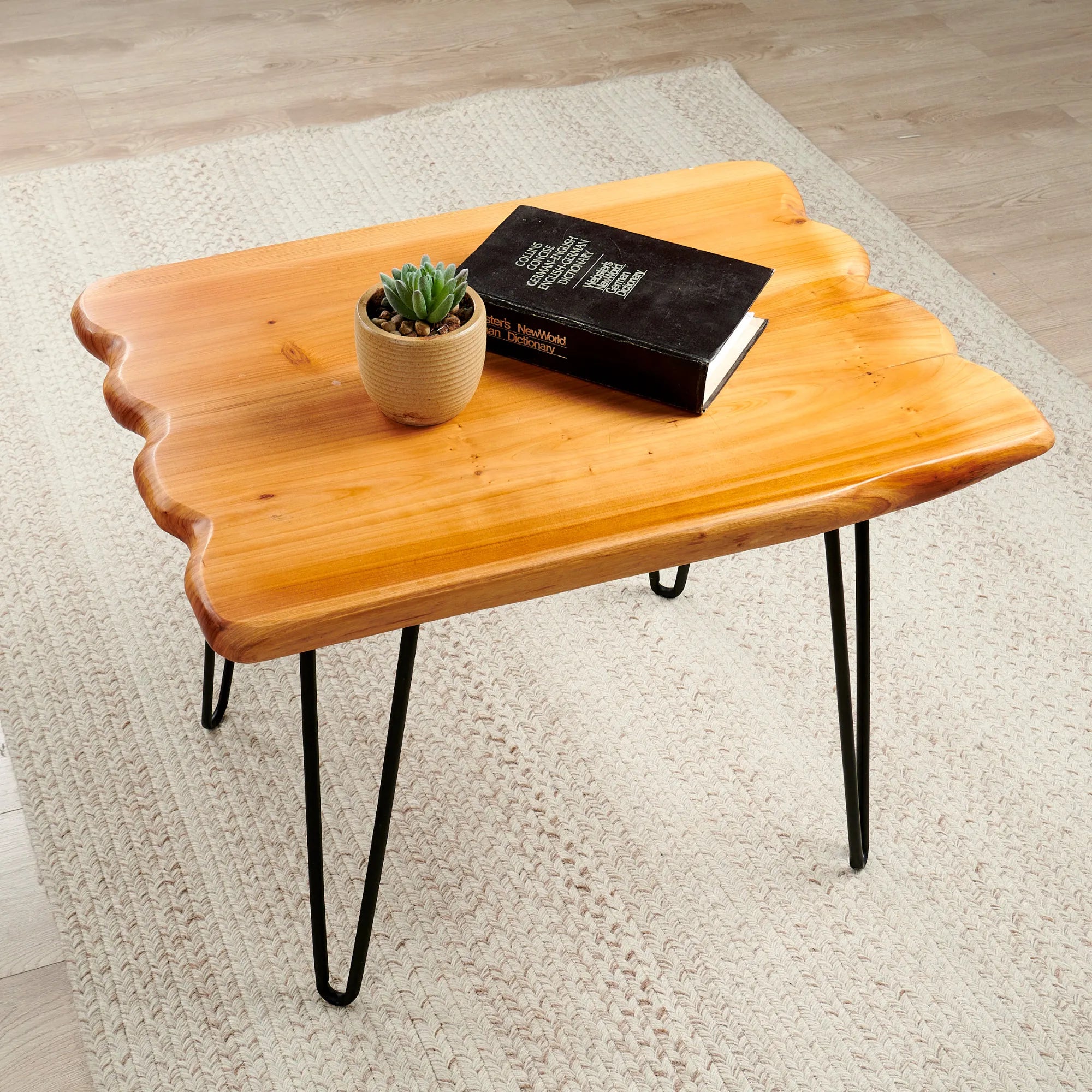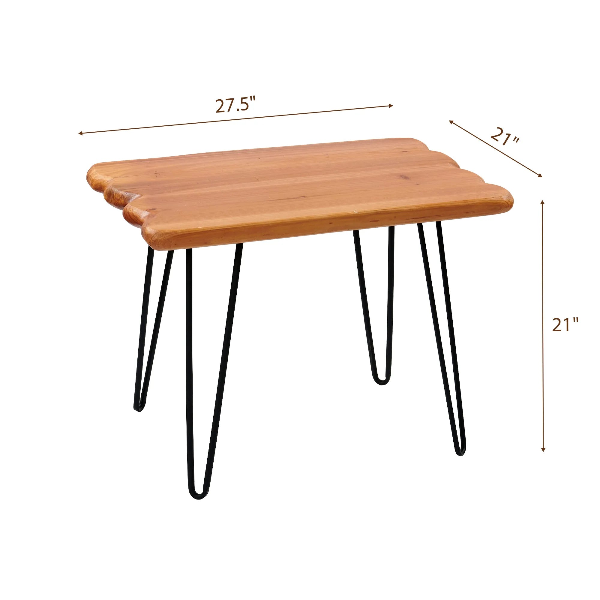 - 100% SOLID CEDARWOOD! Skilled partisans hand-pick and sand down each slab of wood preserving the natural shape, wood grain patterns, and color. Built sturdy with heavy-duty, black powder-coated hairpin legs with a weight capacity of 200 pounds. Each piece of wood undergoes a multi-step process that includes recombination, polishing, painting, and waxing and is finished with a natural lacquer.