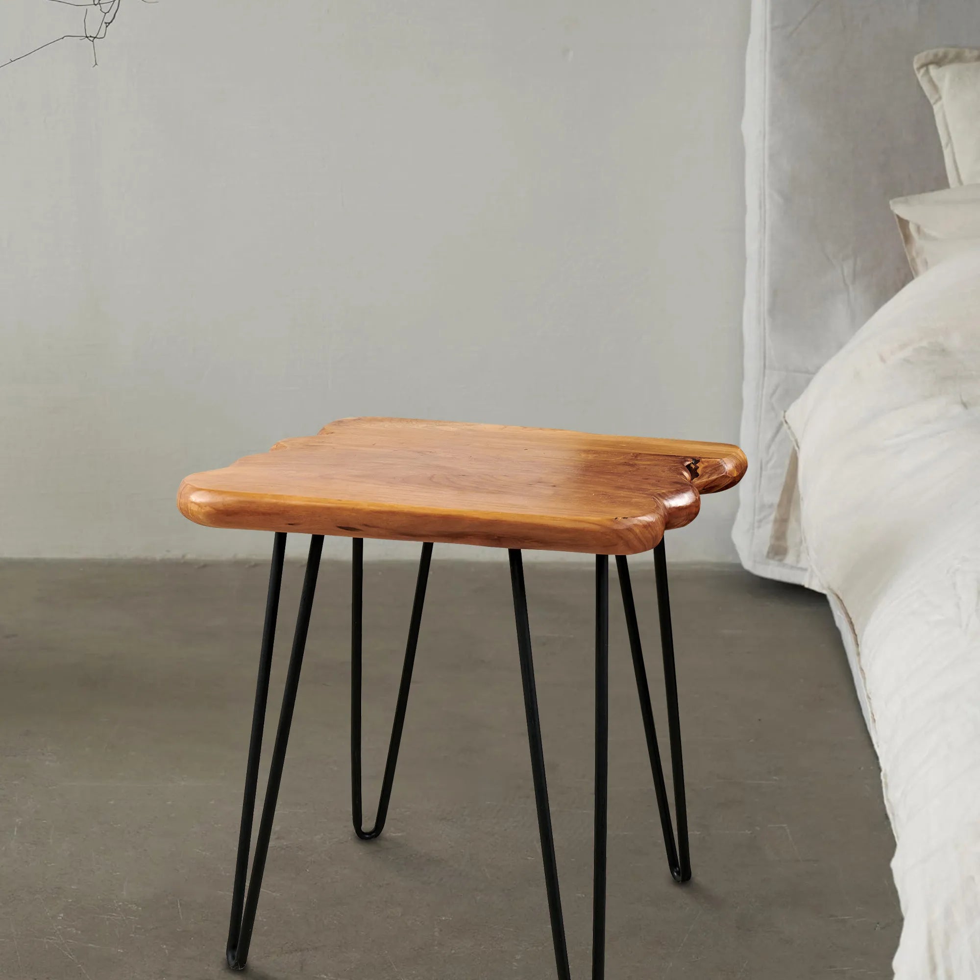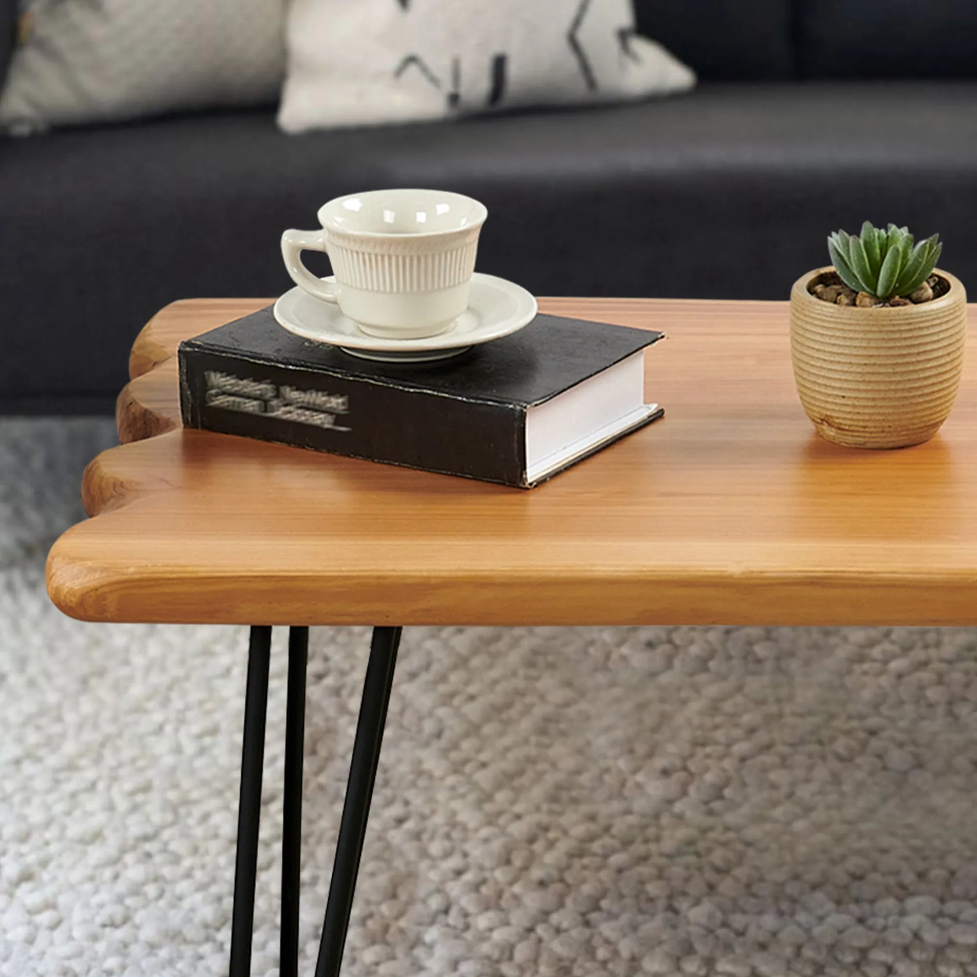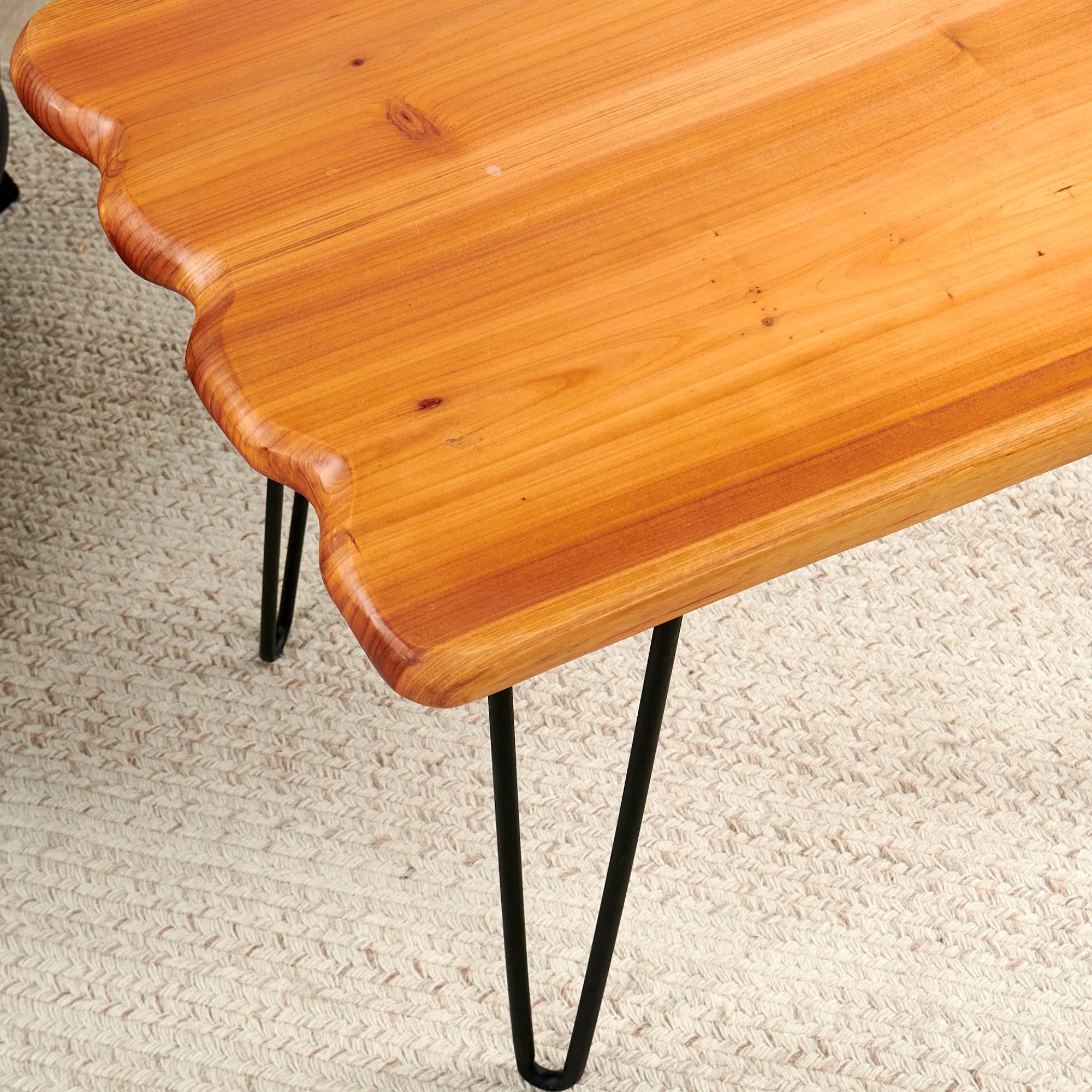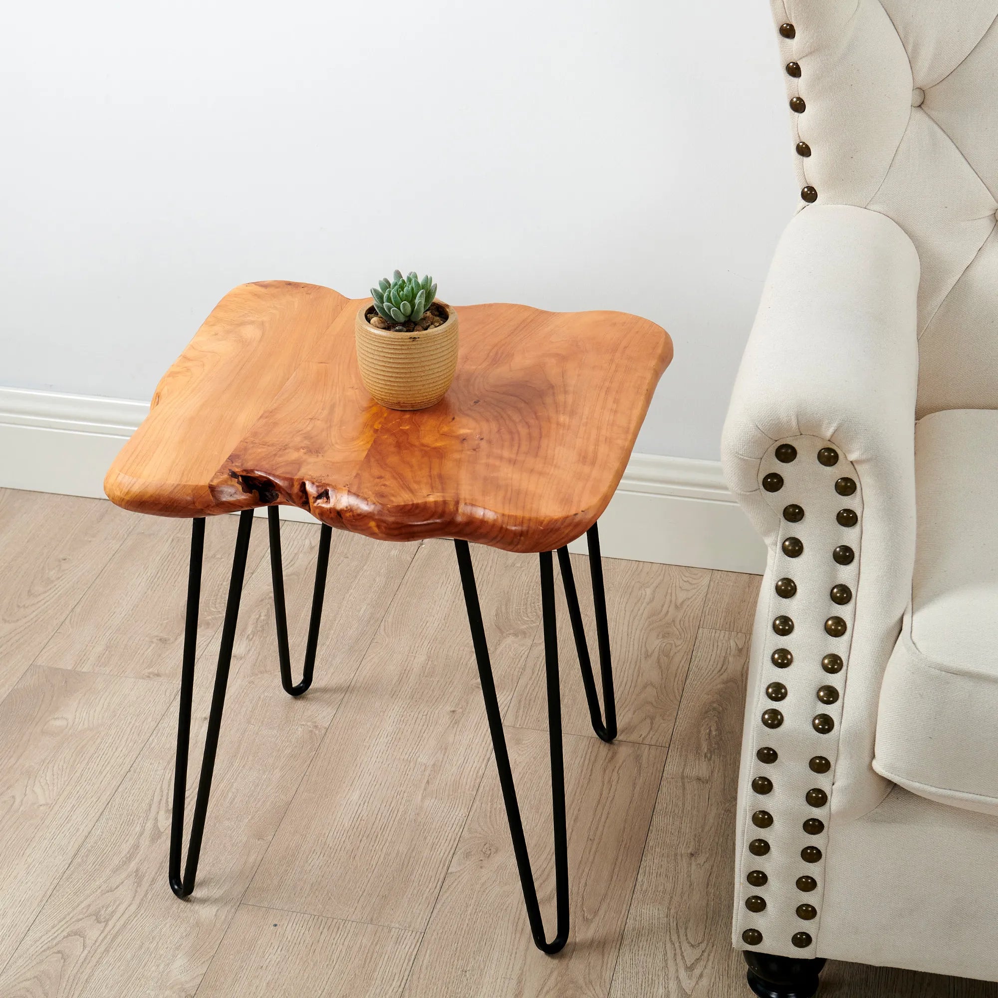 - 100% SOLID CEDARWOOD! Skilled partisans hand-pick and sand down each slab of wood preserving the natural shape, wood grain patterns, and color. Built sturdy with heavy-duty, black powder-coated hairpin legs with a weight capacity of 200 pounds. Each piece of wood undergoes a multi-step process that includes recombination, polishing, painting, and waxing and is finished with a natural lacquer.