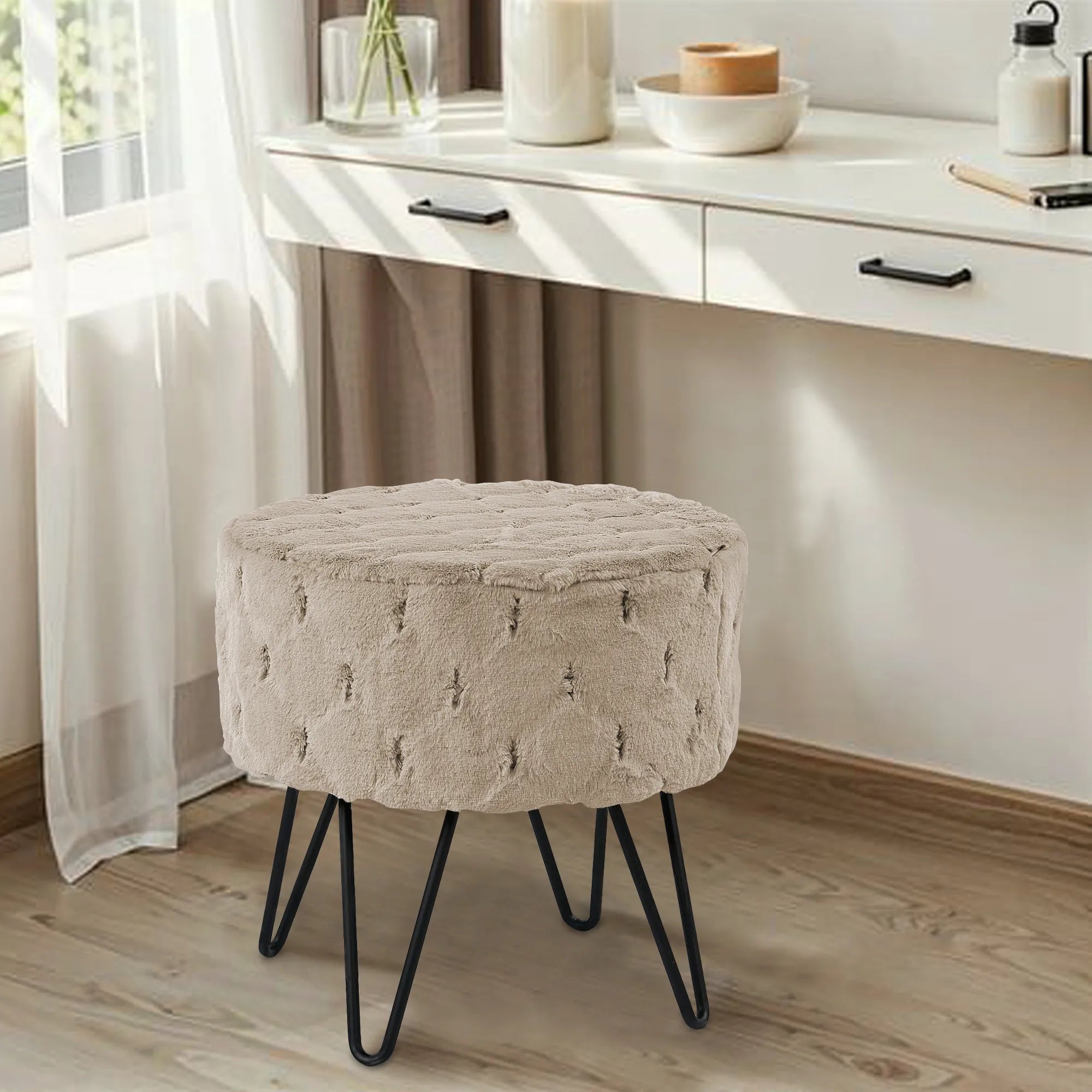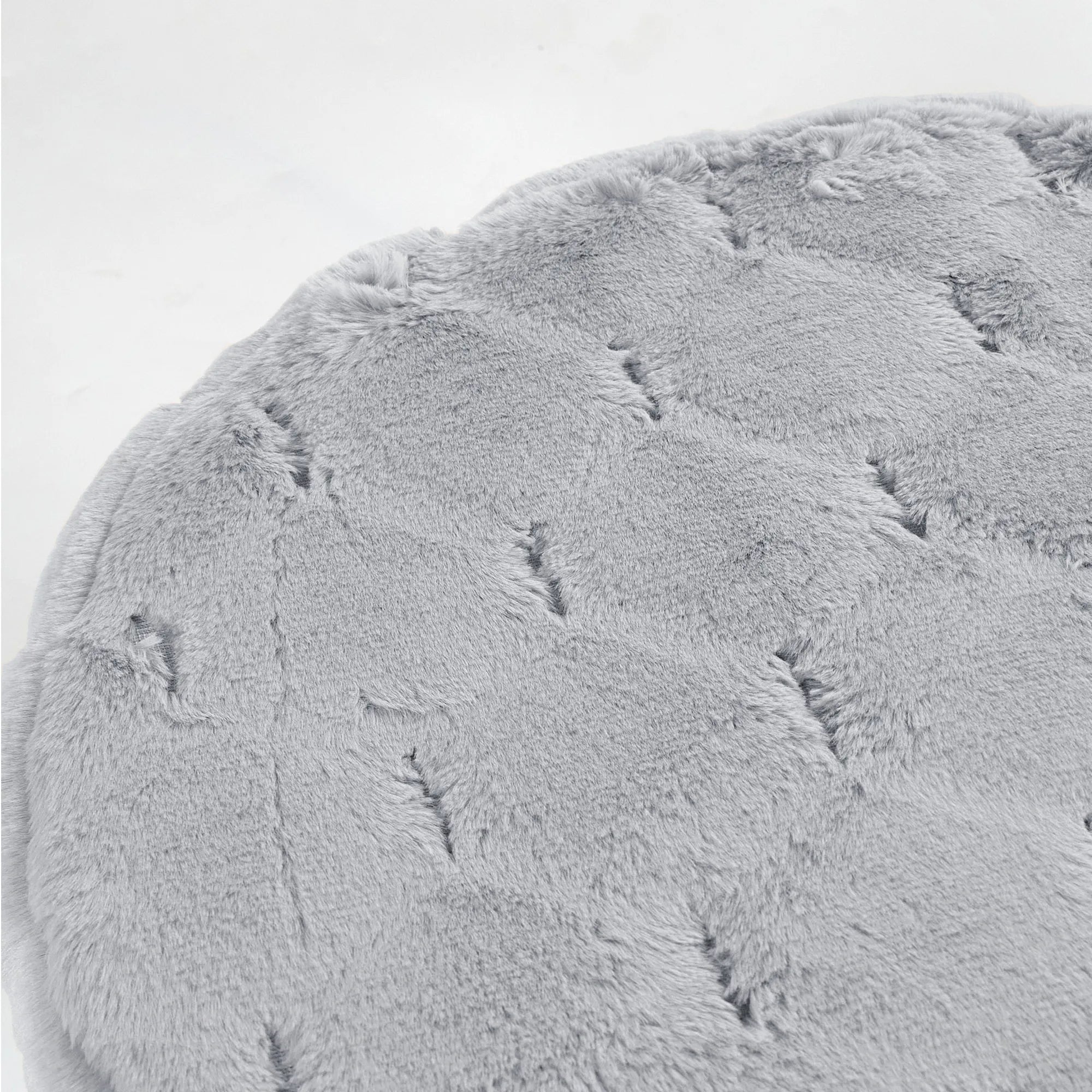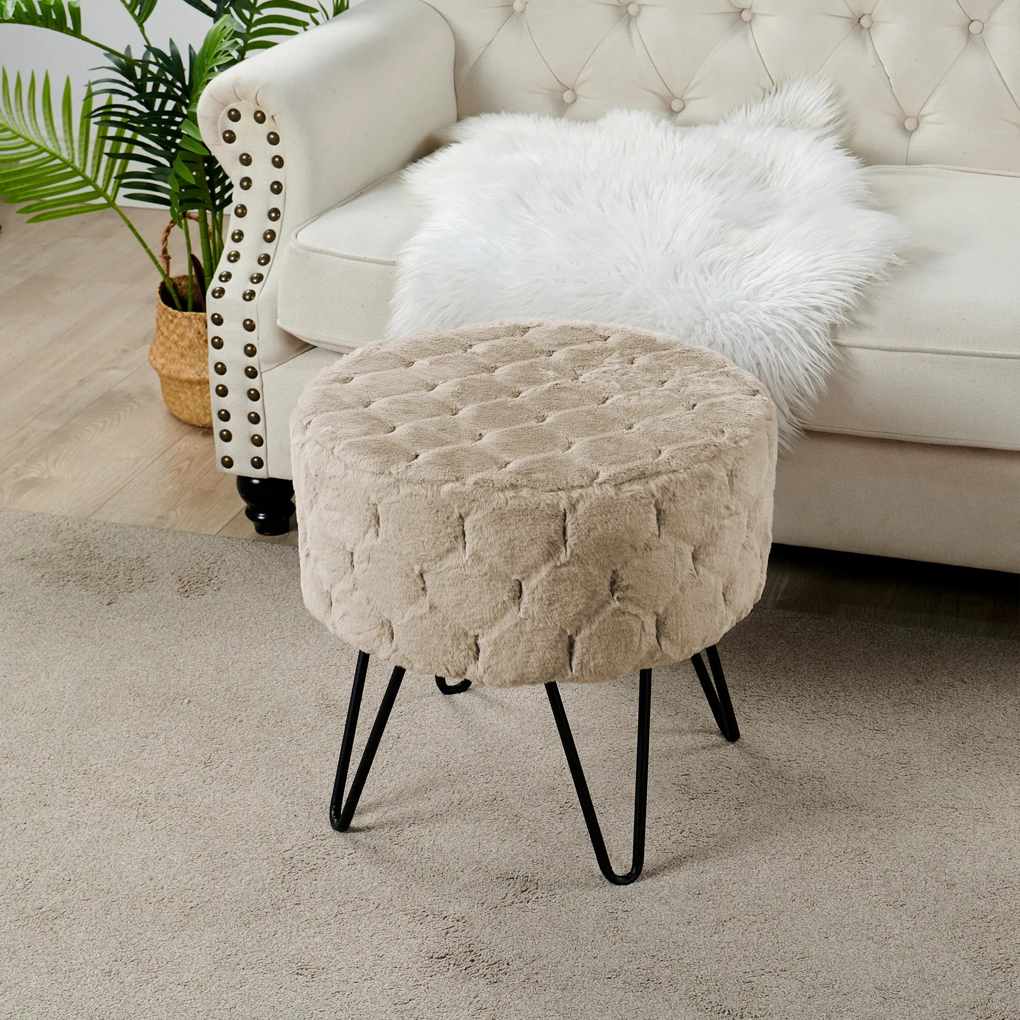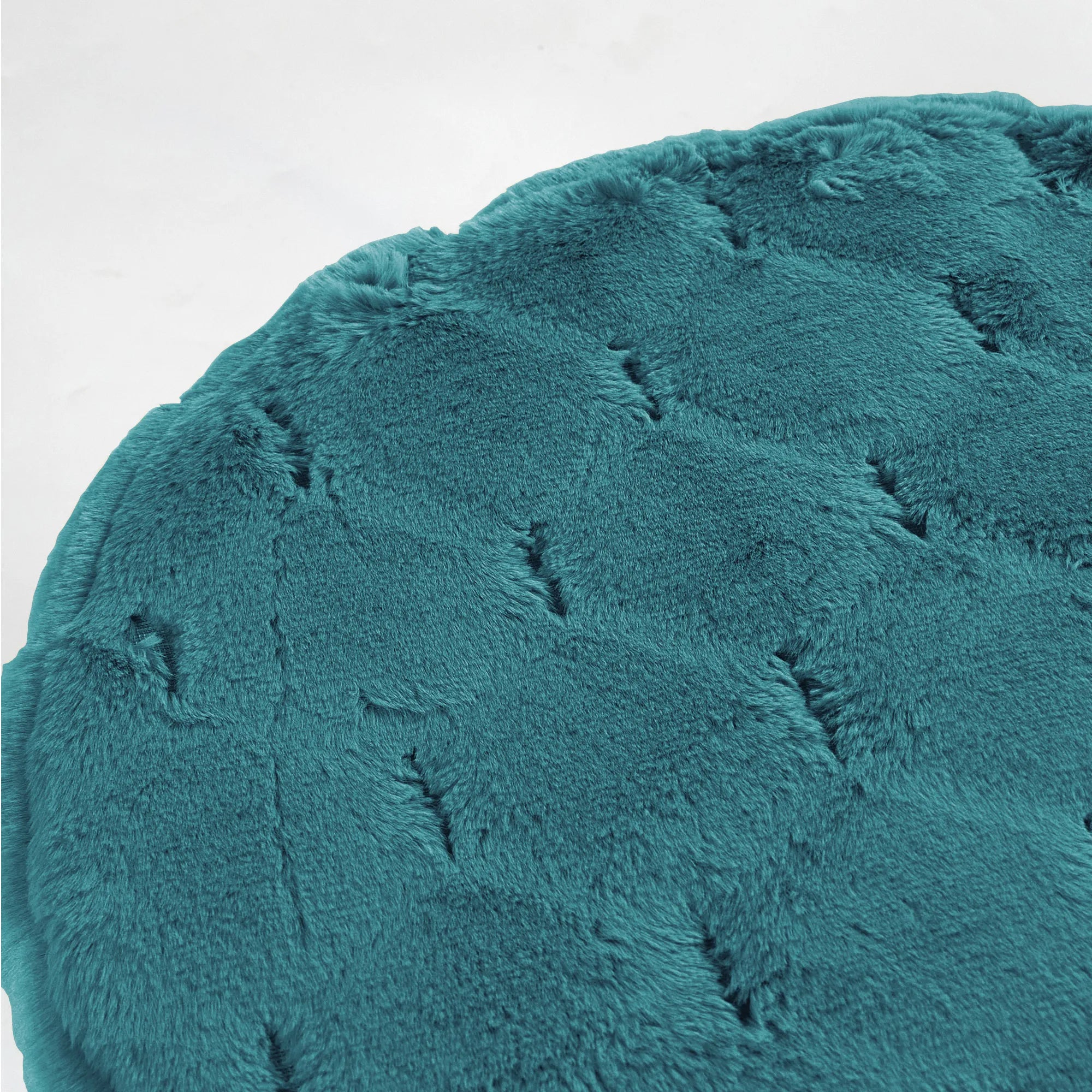 Jacquard Solid Faux Fur Round Ottoman (18" x 18" x 18")