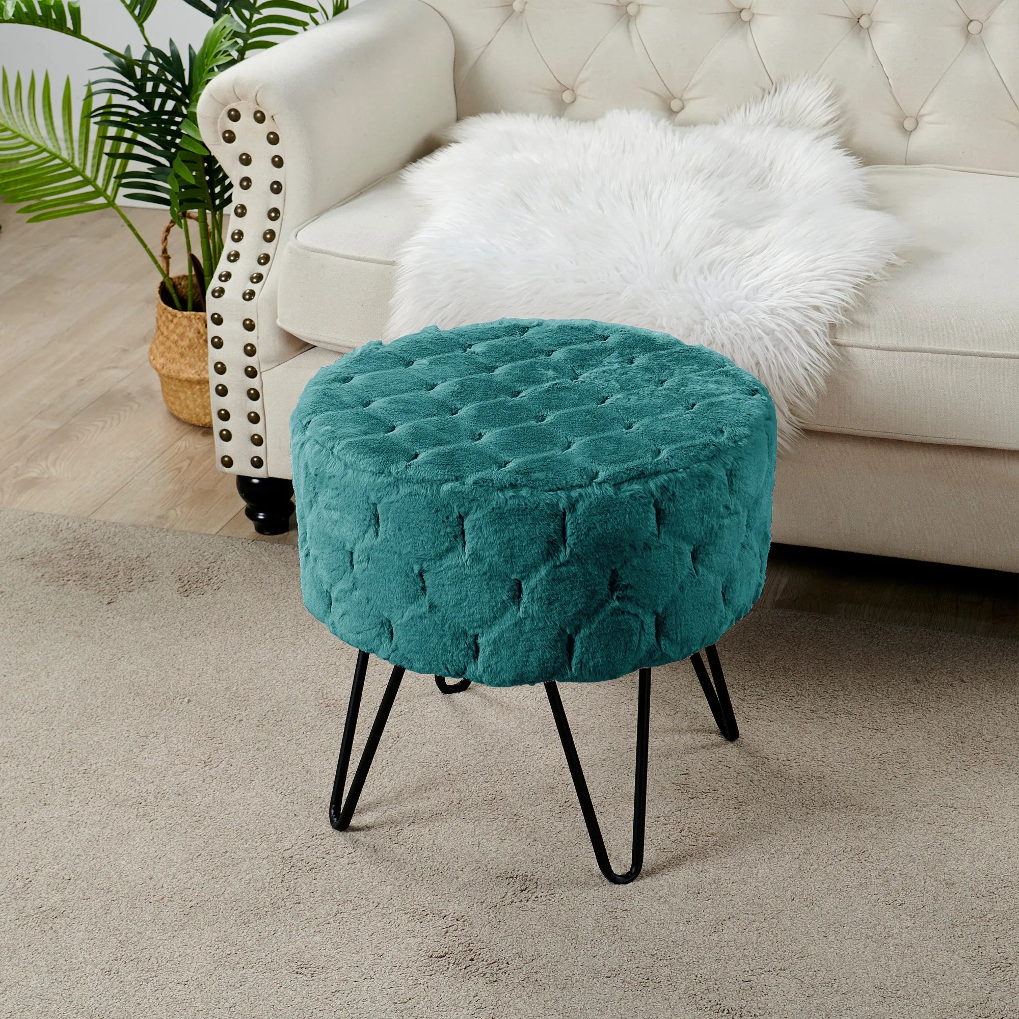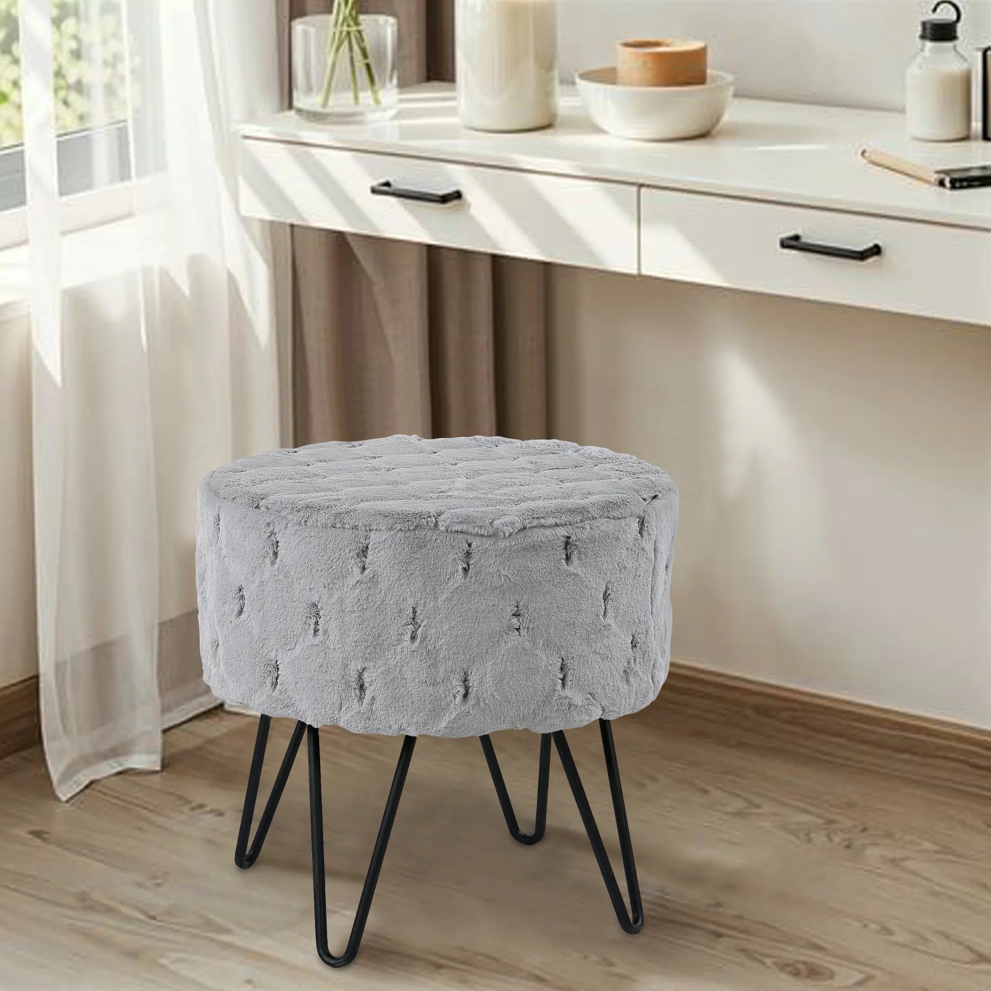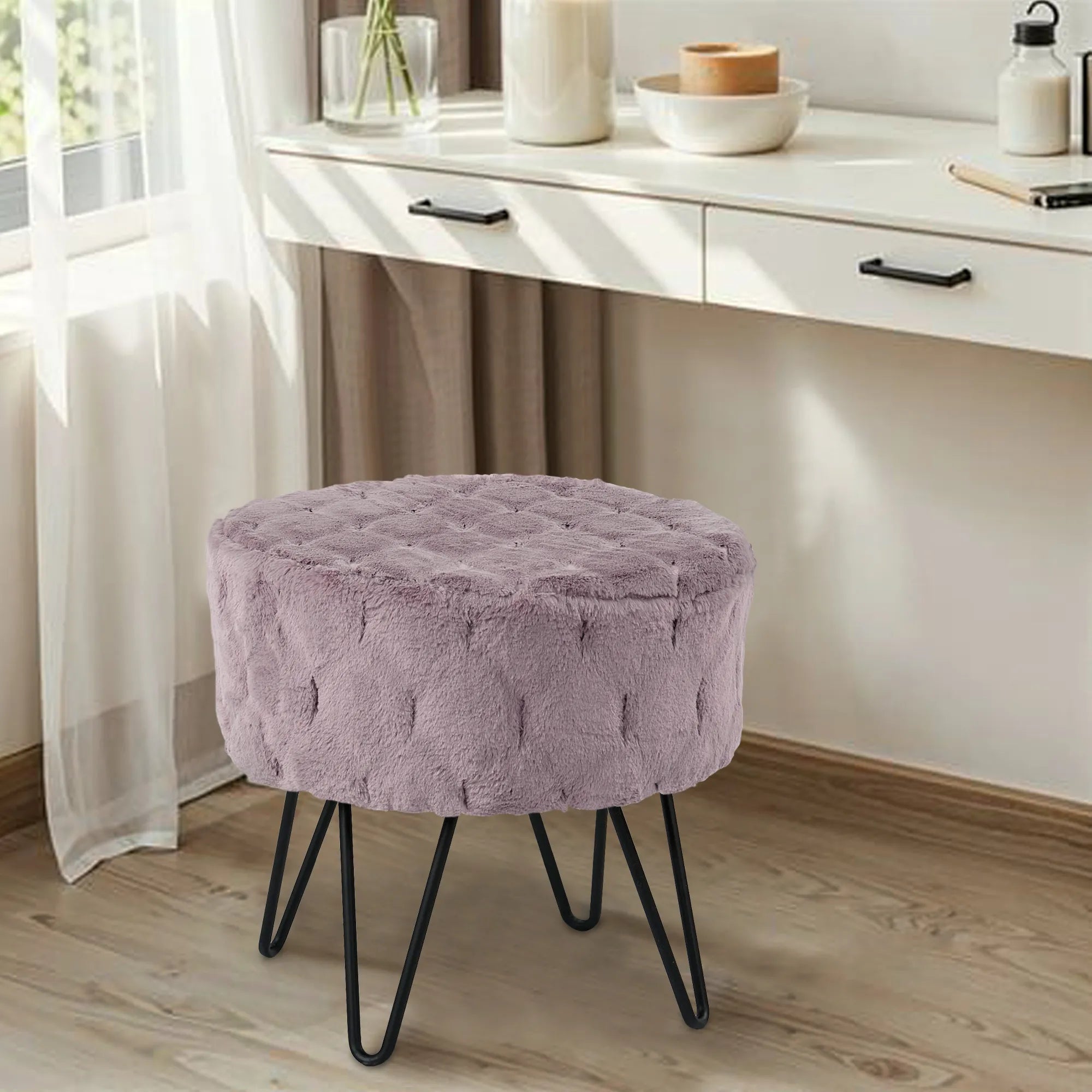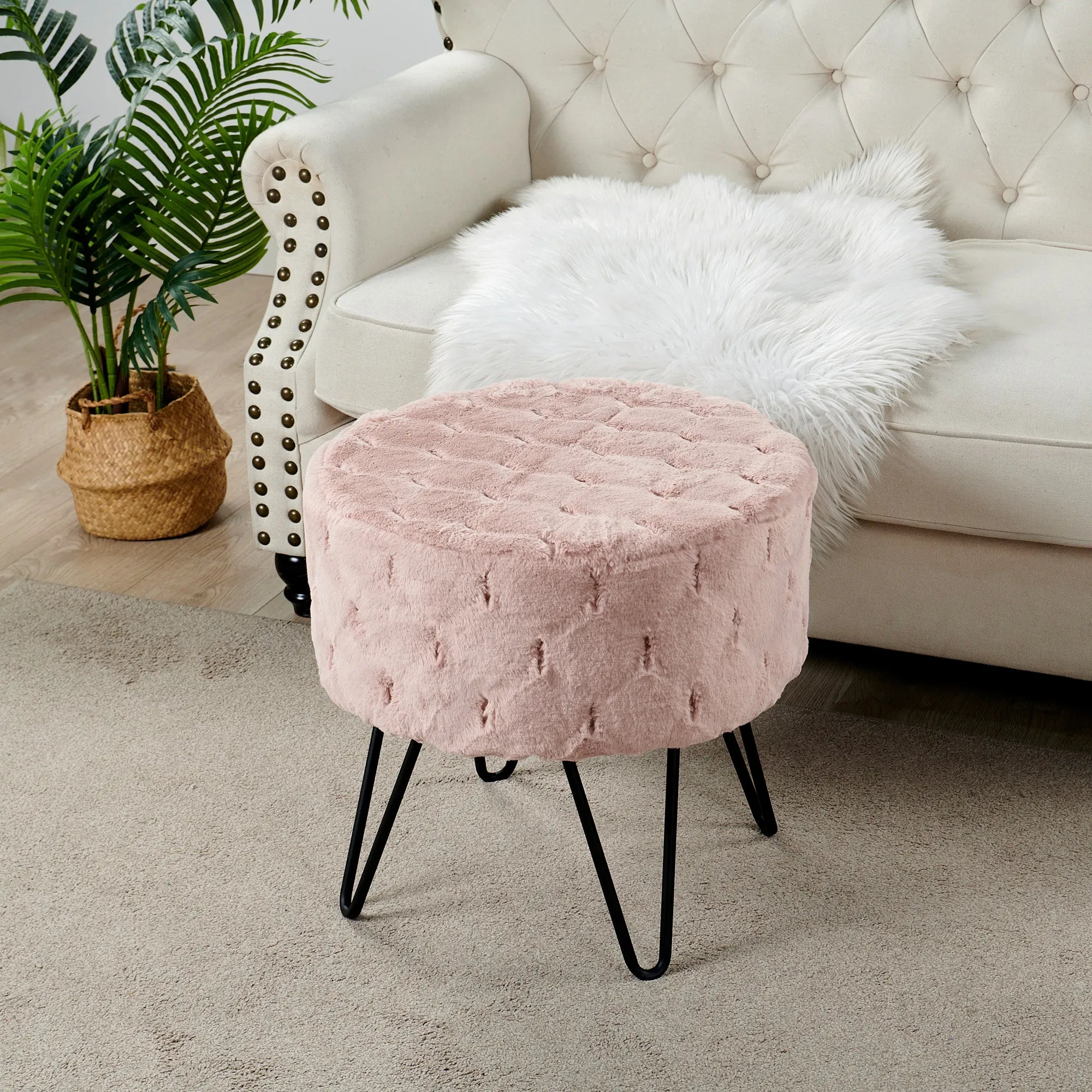 Jacquard Solid Faux Fur Round Ottoman (18" x 18" x 18")