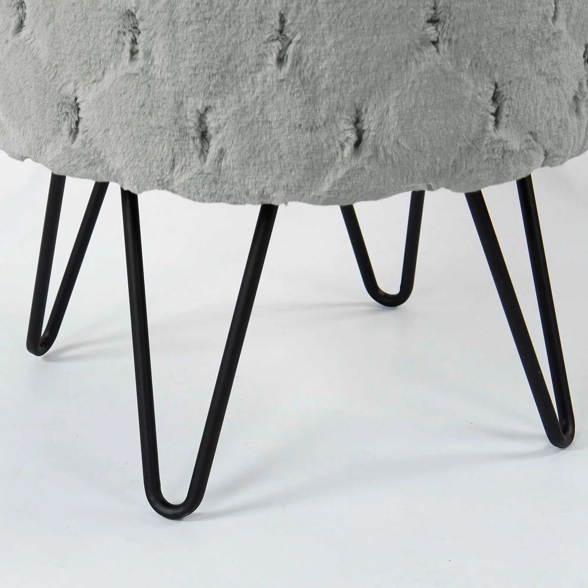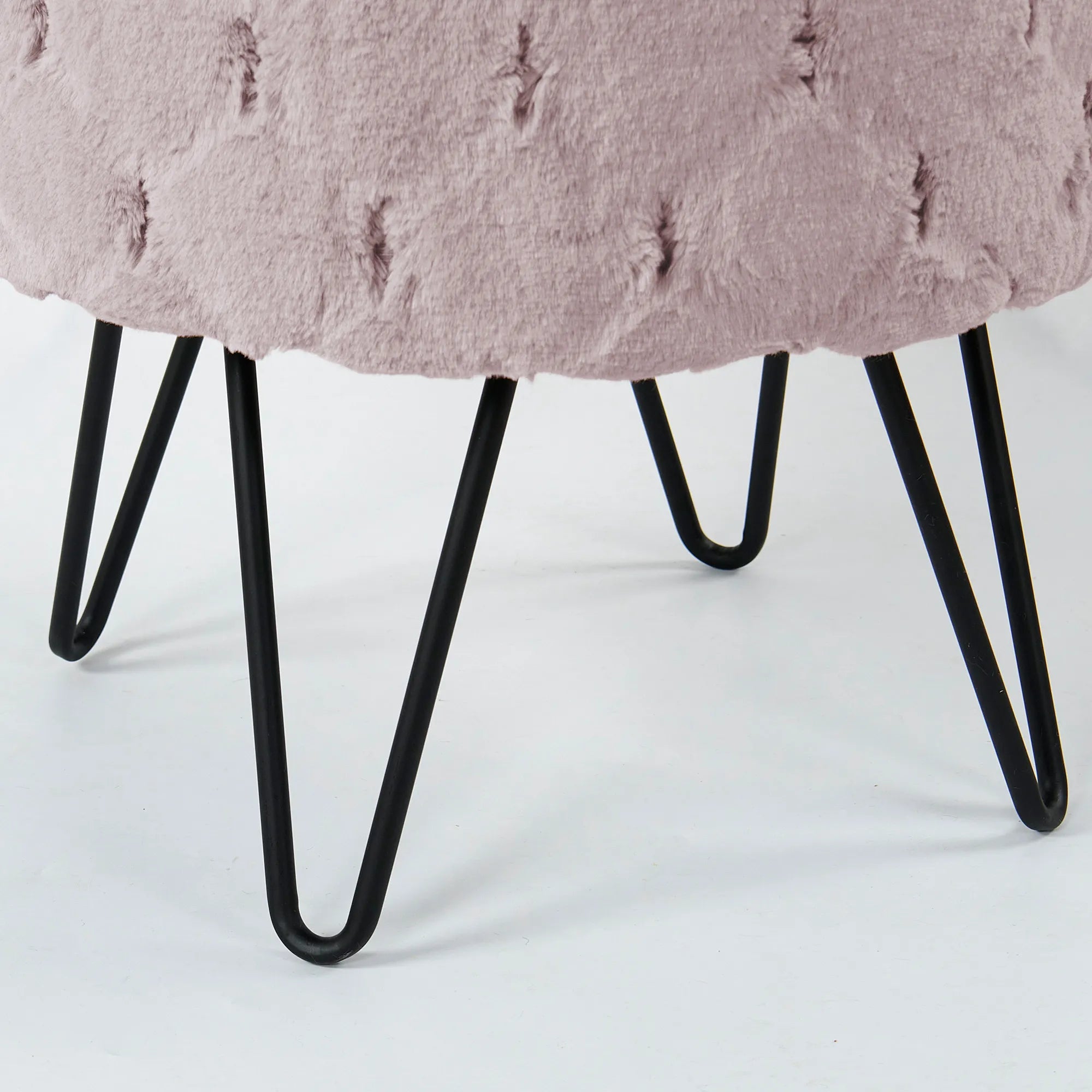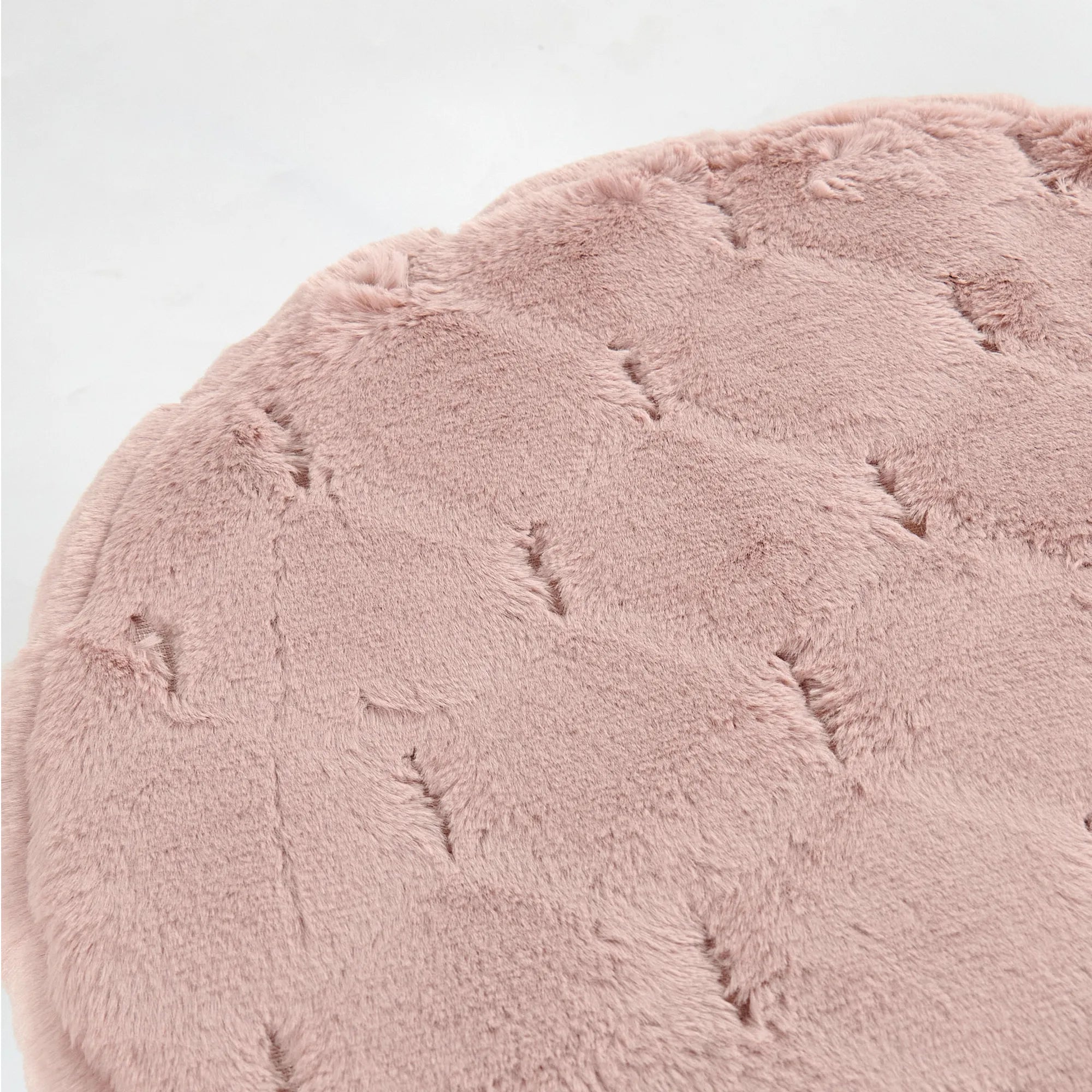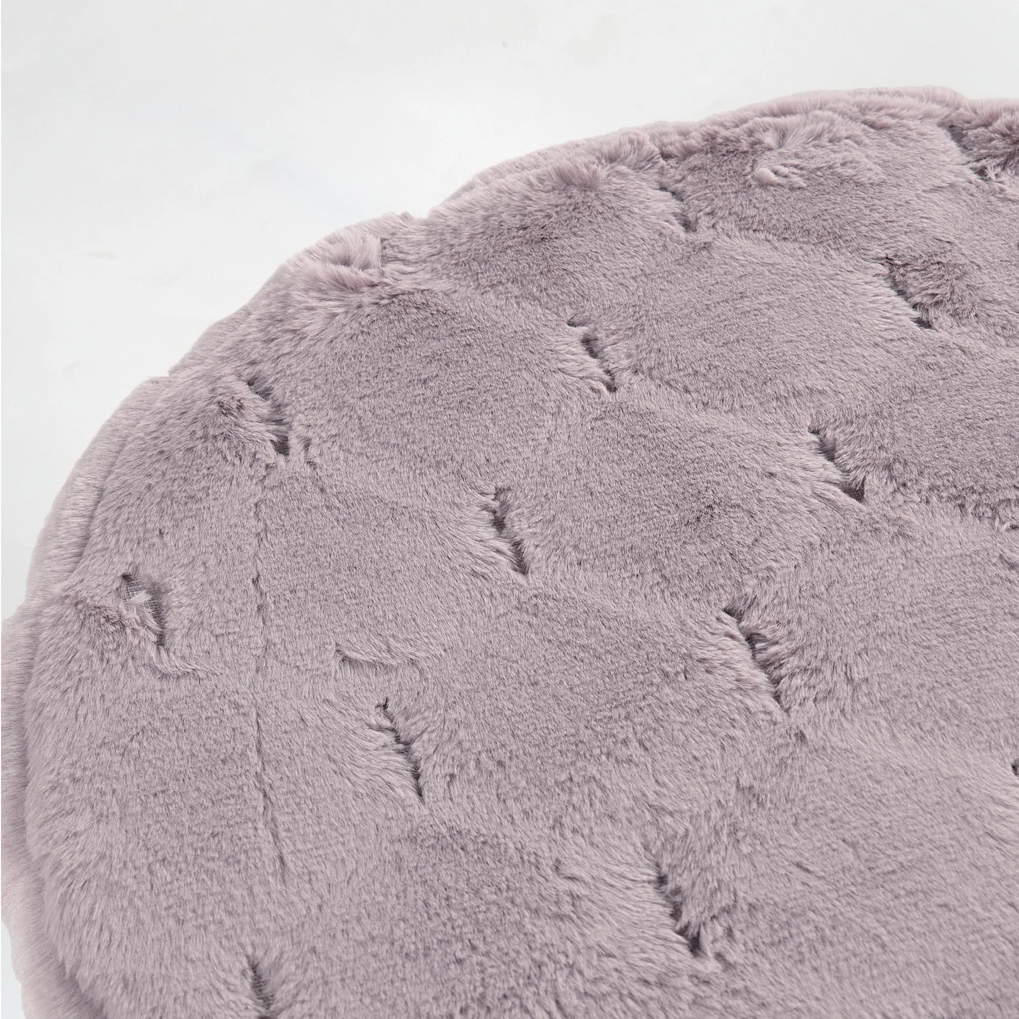Jacquard Solid Faux Fur Round Ottoman (18" x 18" x 18")