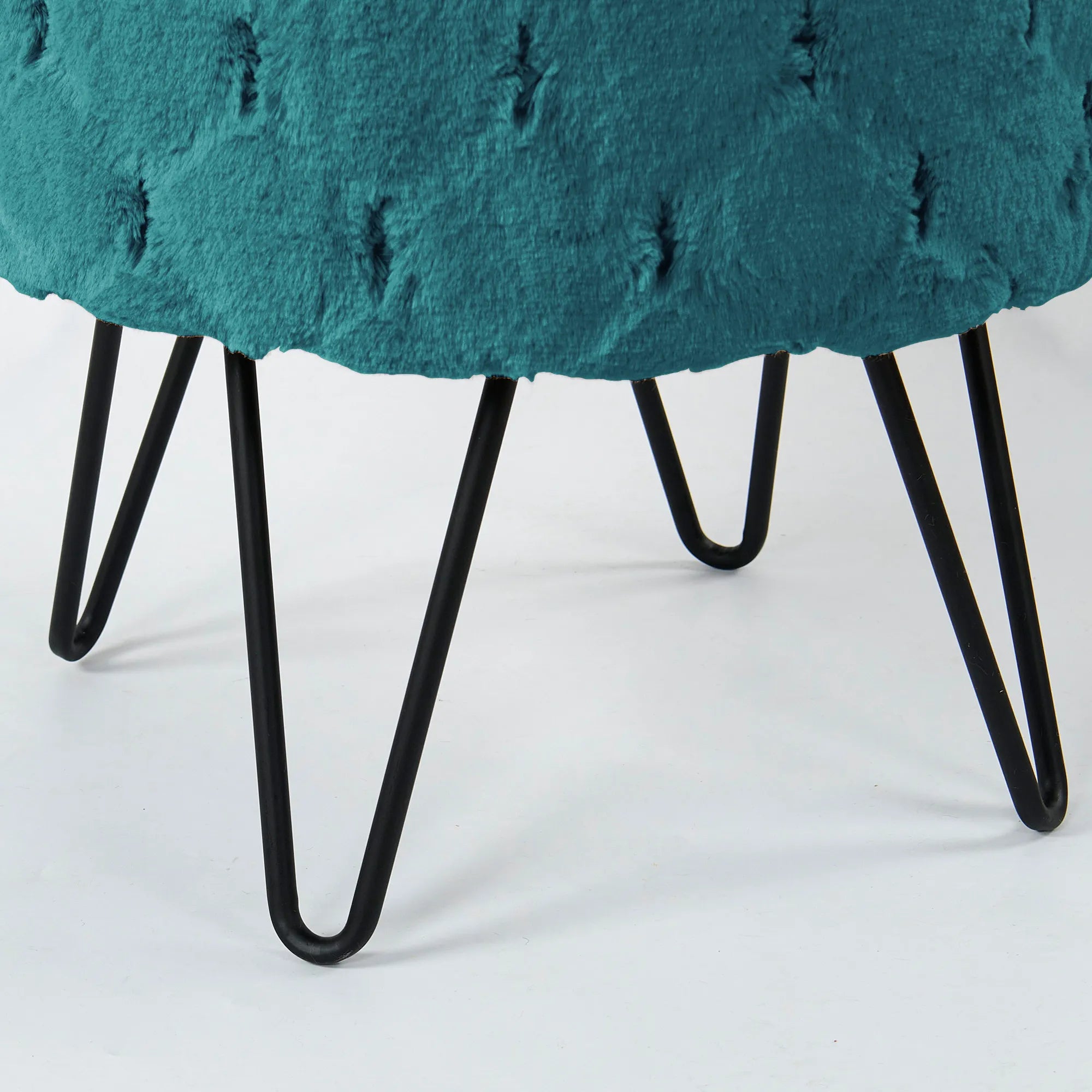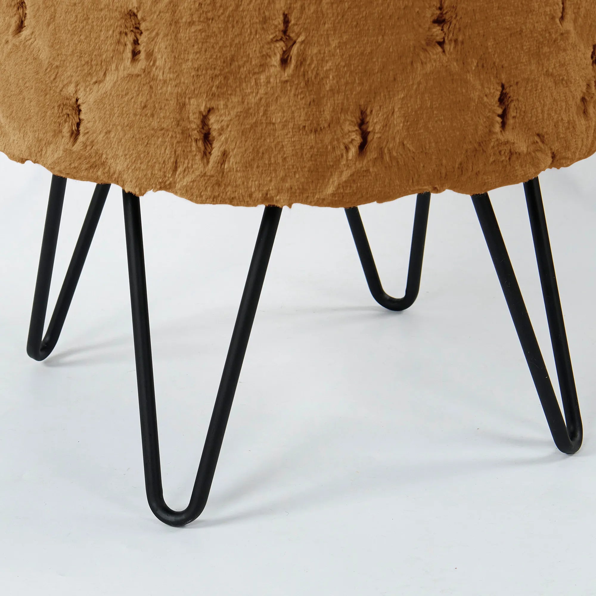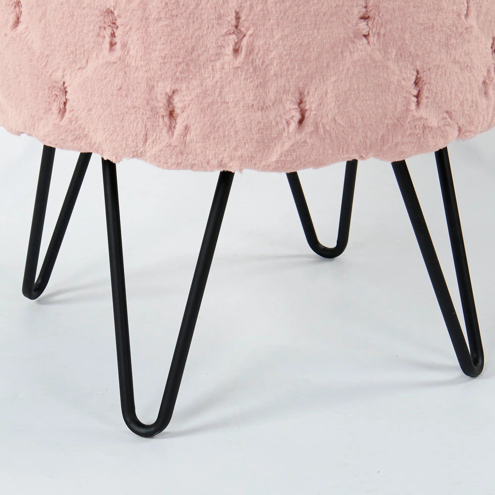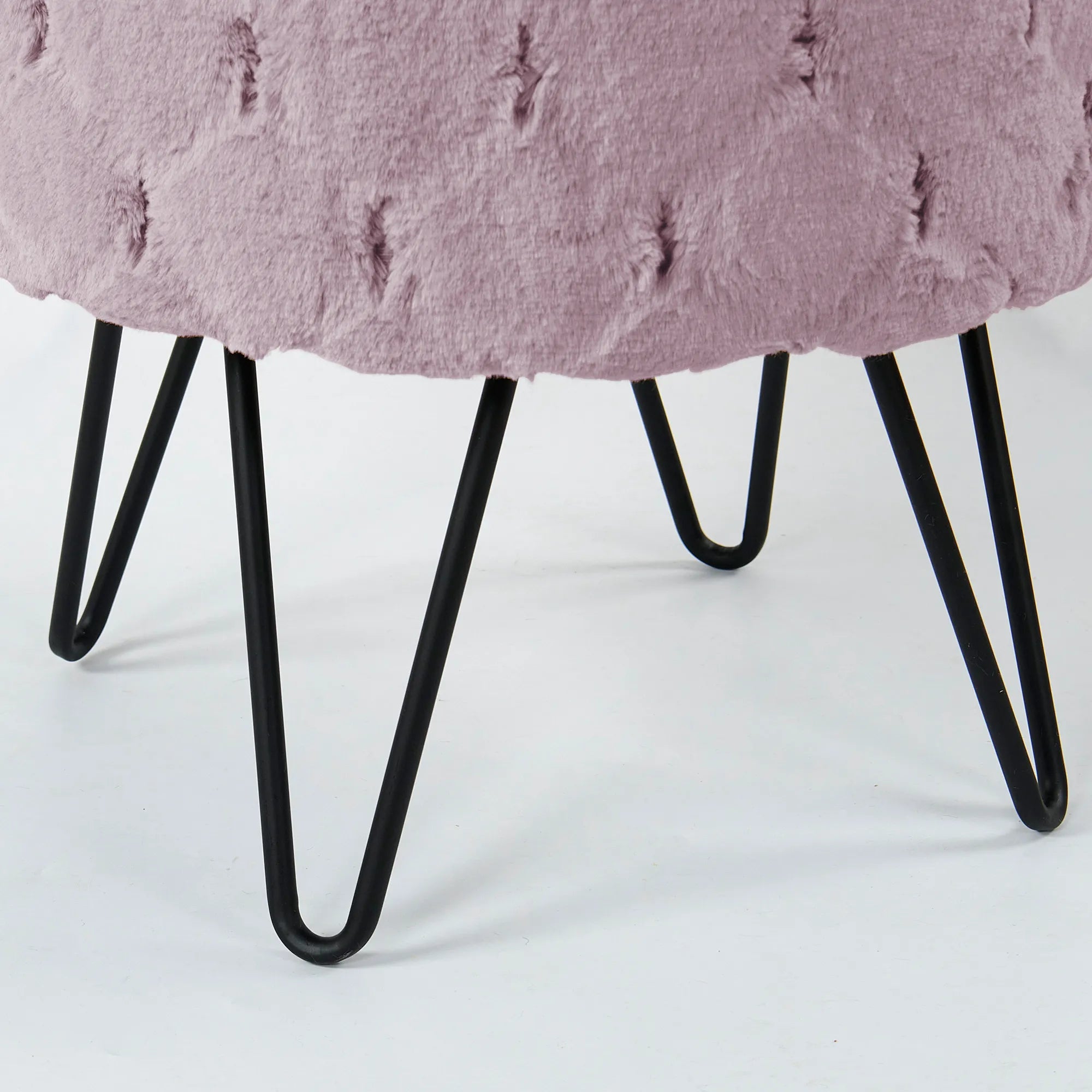 Jacquard Solid Faux Fur Round Ottoman (18" x 18" x 18")