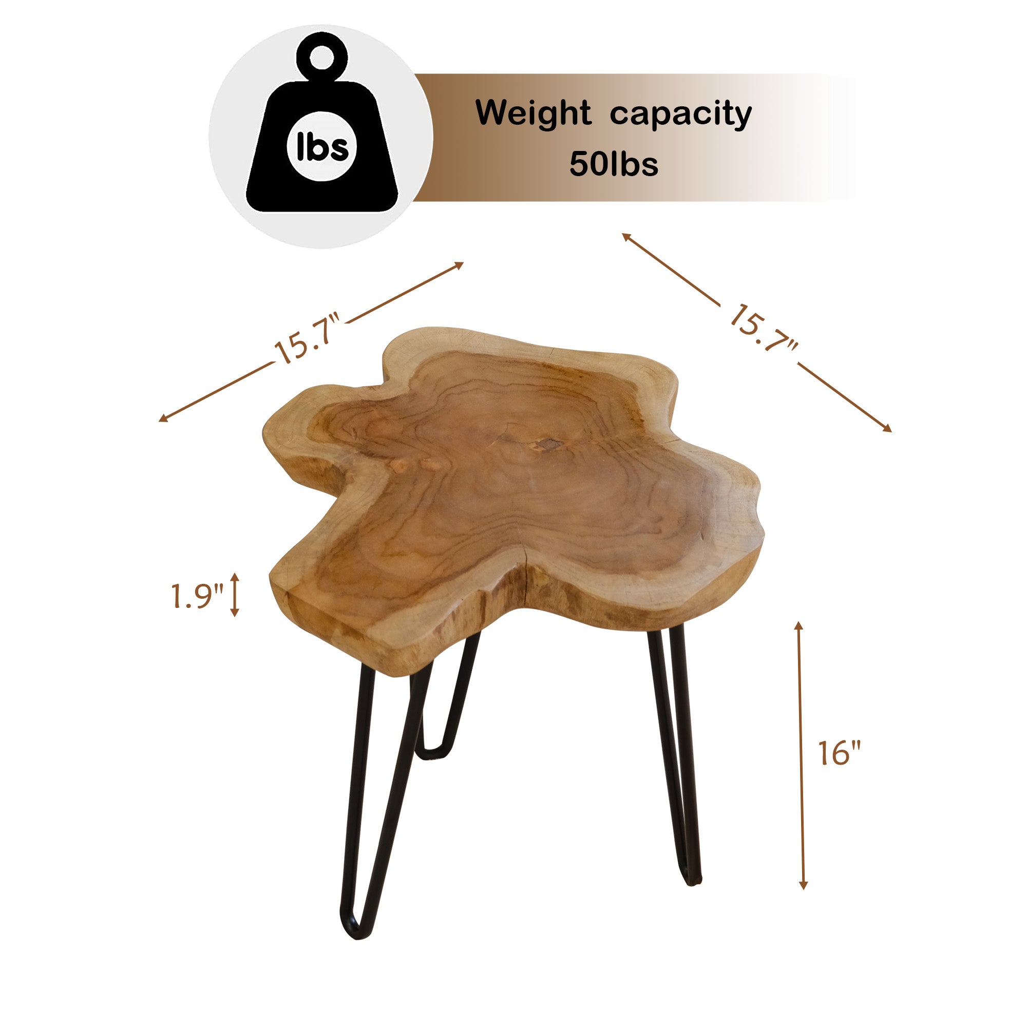 - Please be strongly advised that finished measurements may vary 1-2 inches due to the unique patterns of teak wood . Pre-drilled holes are on the backplate with hardware and assembly instructions included. Screwdriver not included. Skilled partisans hand-pick and sand down each slab of wood preserving the natural shape, wood grain patterns, and color. Each piece of wood undergoes a multi-step process that includes recombination, polishing, painting, and waxing and is finished with a natural lacquer.