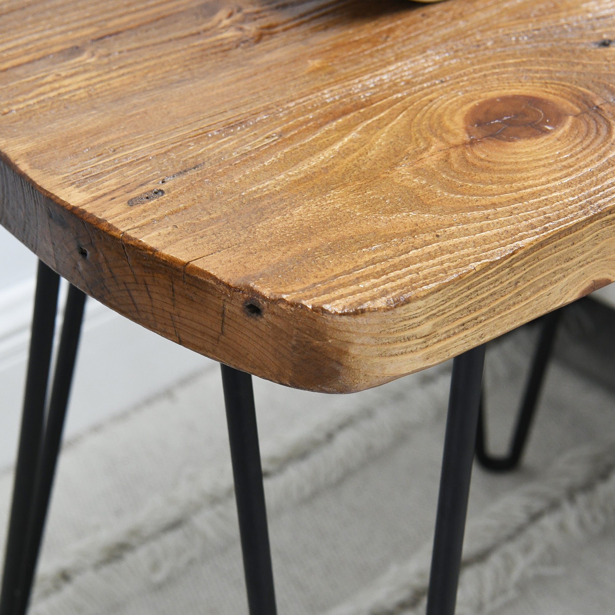 - 100% SOLID OLD PINE WOOD! Skilled partisans hand-pick and sand down each slab of wood preserving the natural shape, wood grain patterns, and color. Built sturdy with heavy-duty, black powder-coated metal legs. Each piece of wood undergoes a multi-step process that includes recombination, polishing, painting, and waxing and is finished with a natural lacquer.