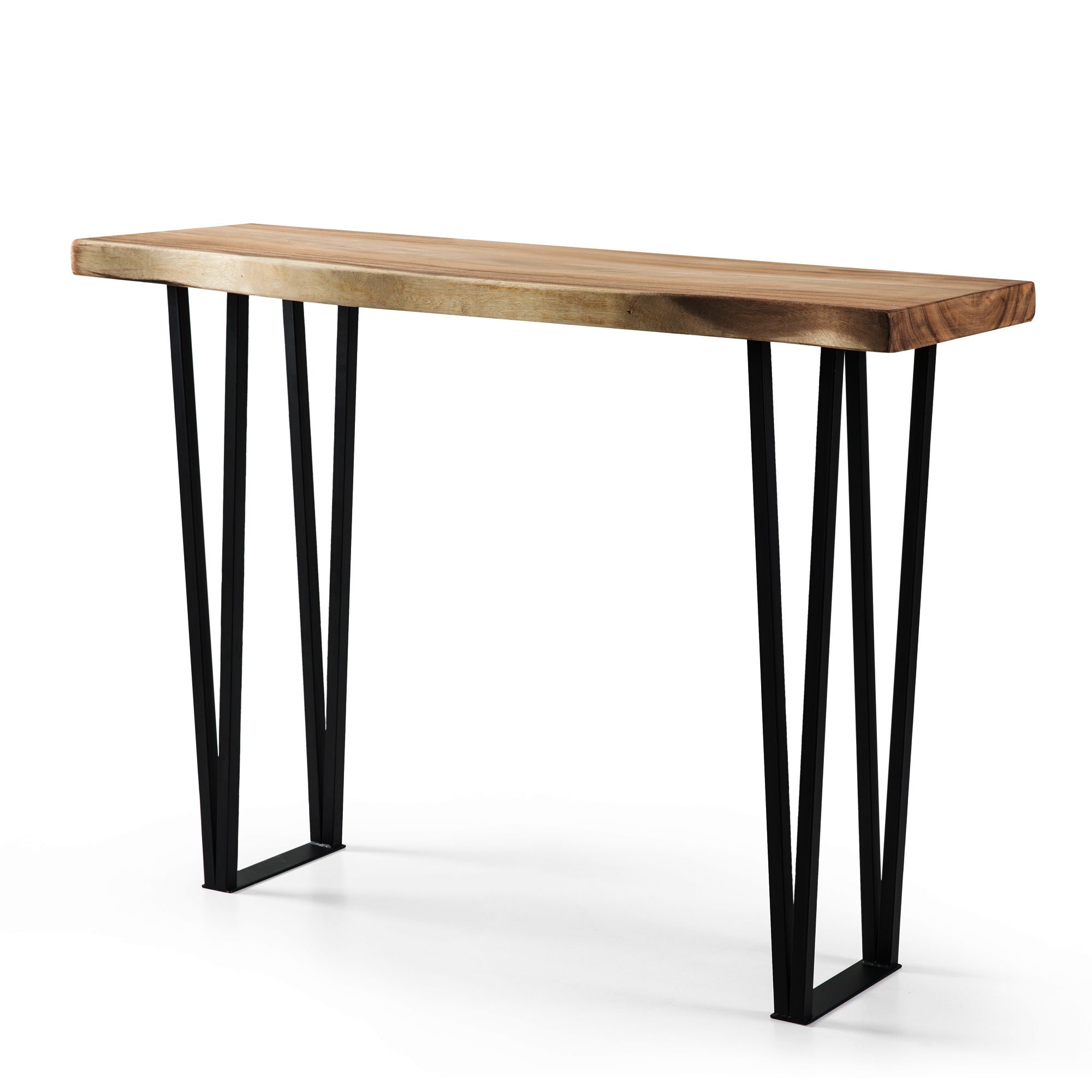 Elevate your living space with the Greenage Suar Wood Console Table, a stunning blend of practicality and art. Crafted from hand-picked suar wood, each piece boasts a unique shape and grain pattern that adds character to your décor. Finished measurements may vary 1-2 inches due to the natural variations of the wood. The flat iron legs provide sturdy support, and all hardware and assembly instructions are included for easy setup. With a multi-step finishing process that includes polishing, painting, and waxing, this table is completed with a natural lacquer that preserves its color and stability. To maintain its beauty, simply dust the surface with an ultra-soft rag, and occasionally apply a sealer. With proper care and weight capacity, this console table will last you a lifetime.