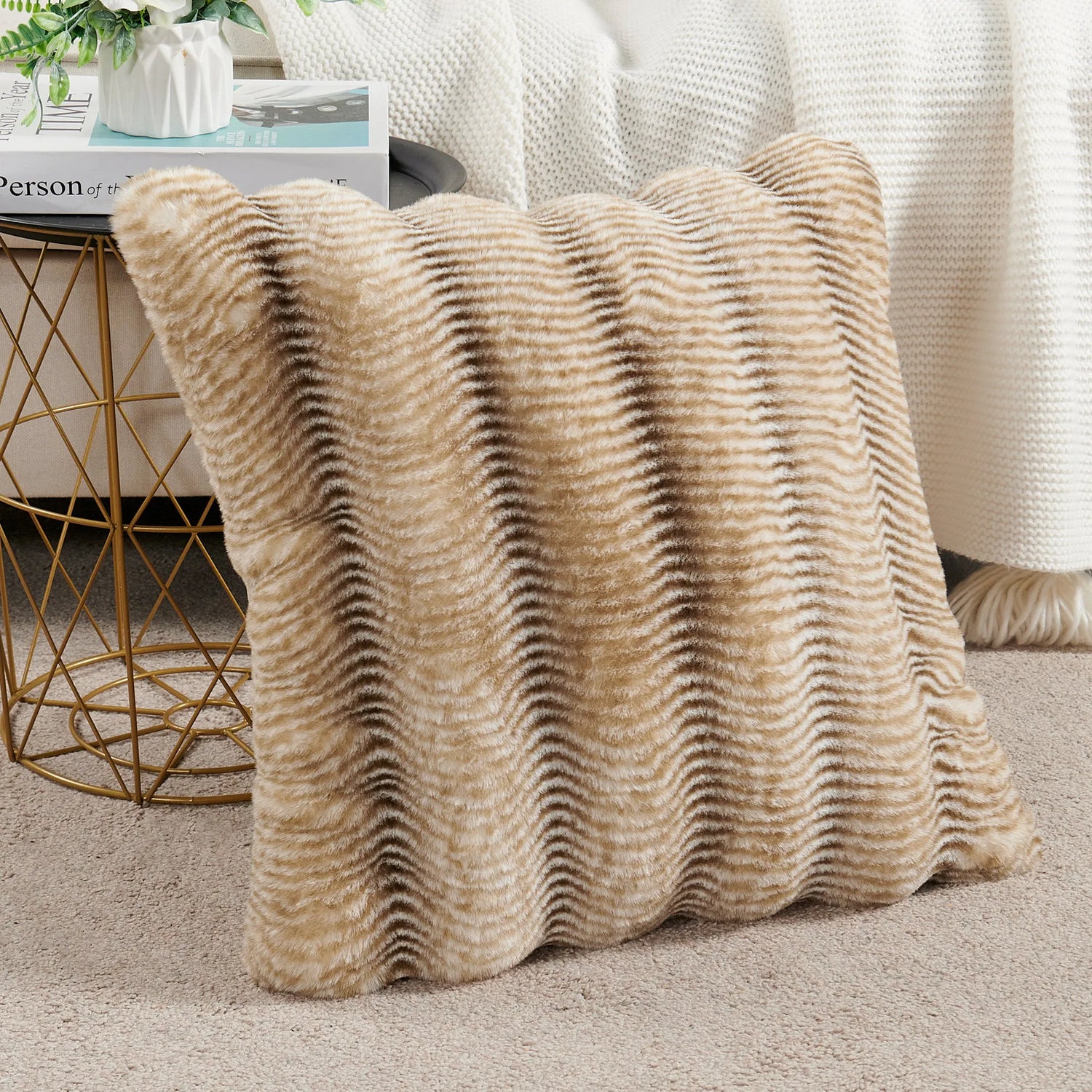 The front showcases a wavy striped pattern, adding dimension and a cozy, inviting aesthetic to your sofa, bed, or favorite chair. The back is made from smooth micromink fabric, providing a contrasting texture that's equally soft and comfortable.