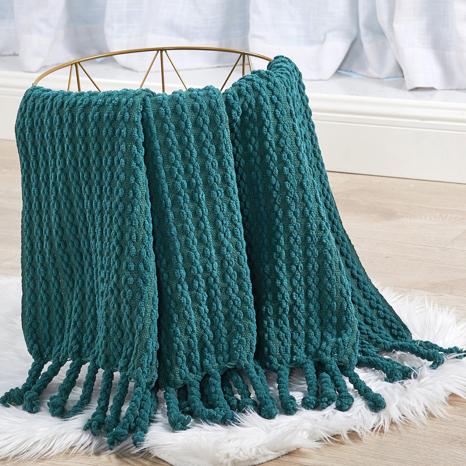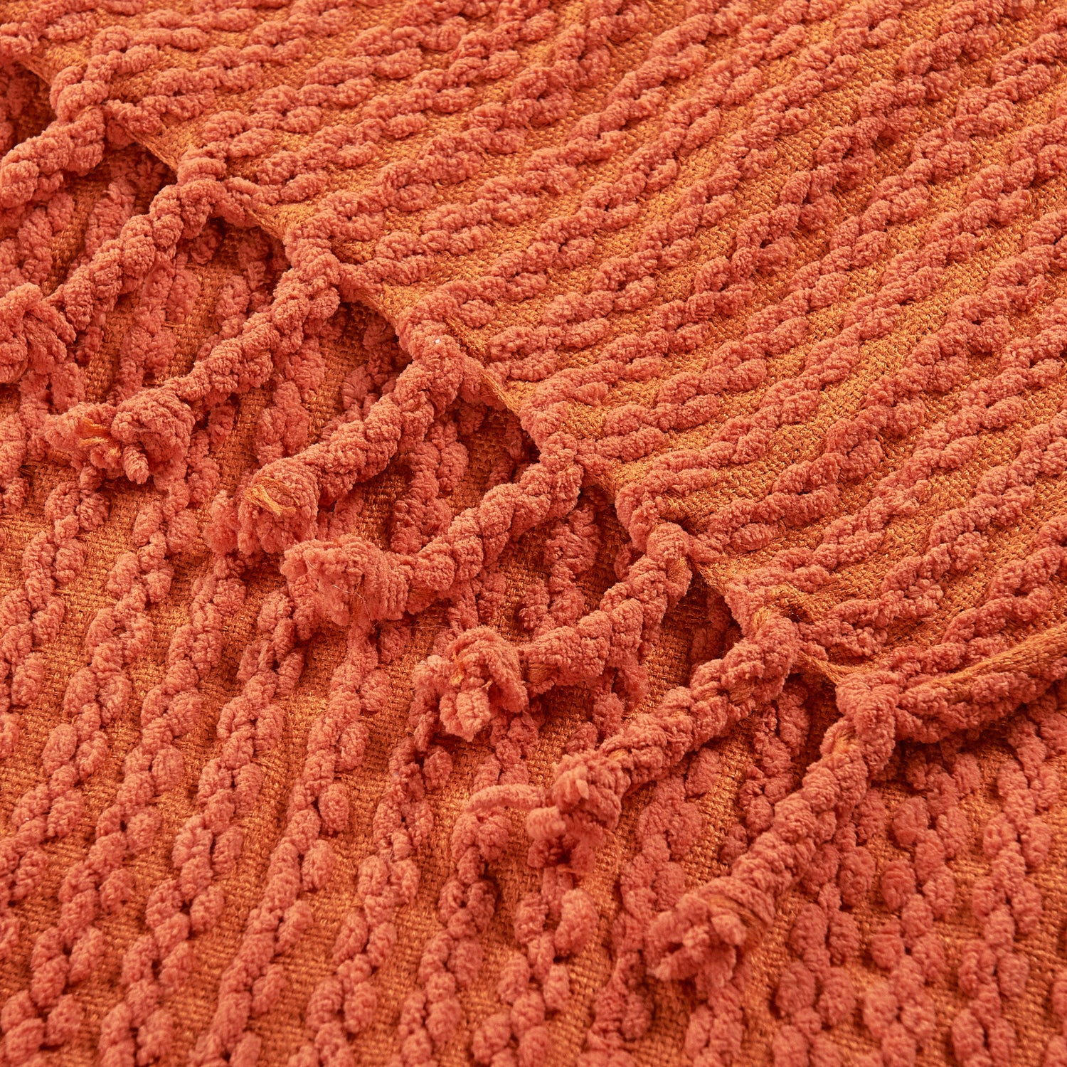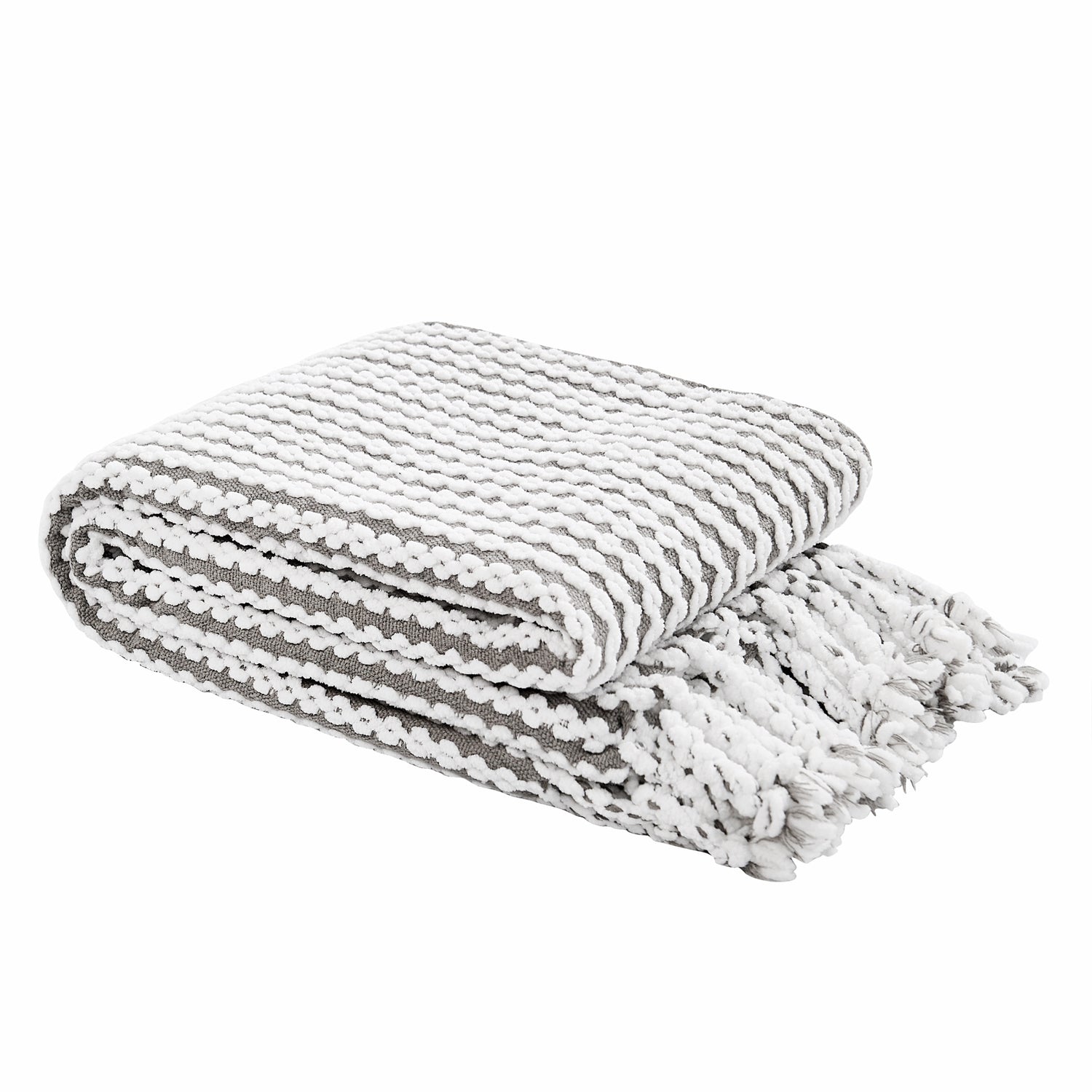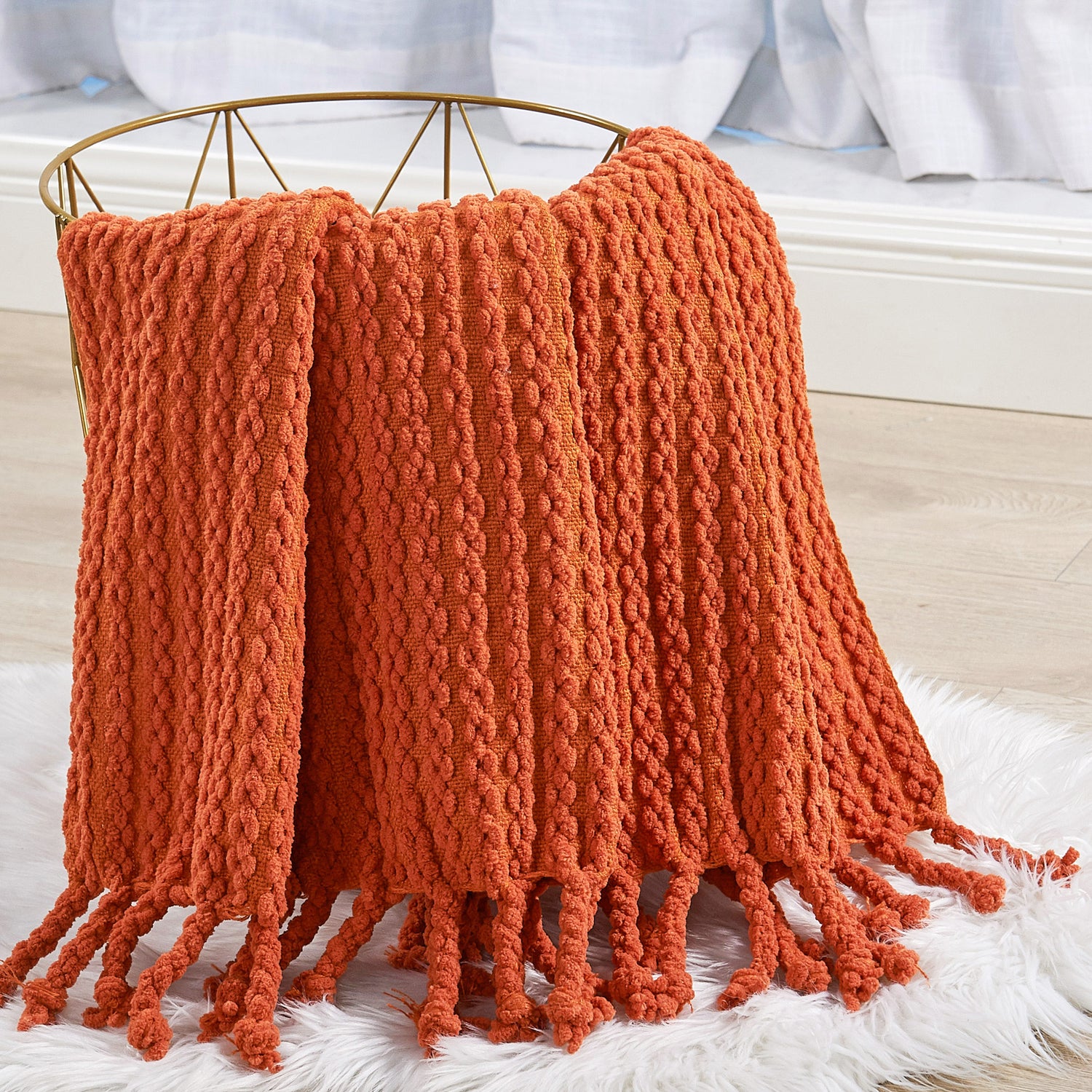 • Construction: This woven knitted chain tweed throw is made of 100% high quality microfiber polyester. The design is finished off with adorable knotted braid tassels along each side of the widths.