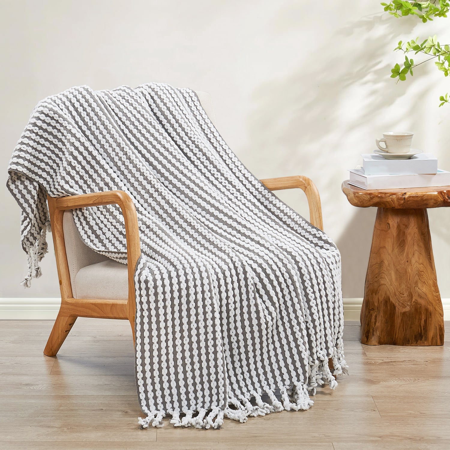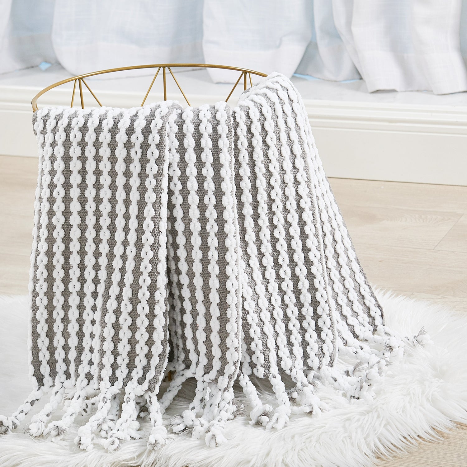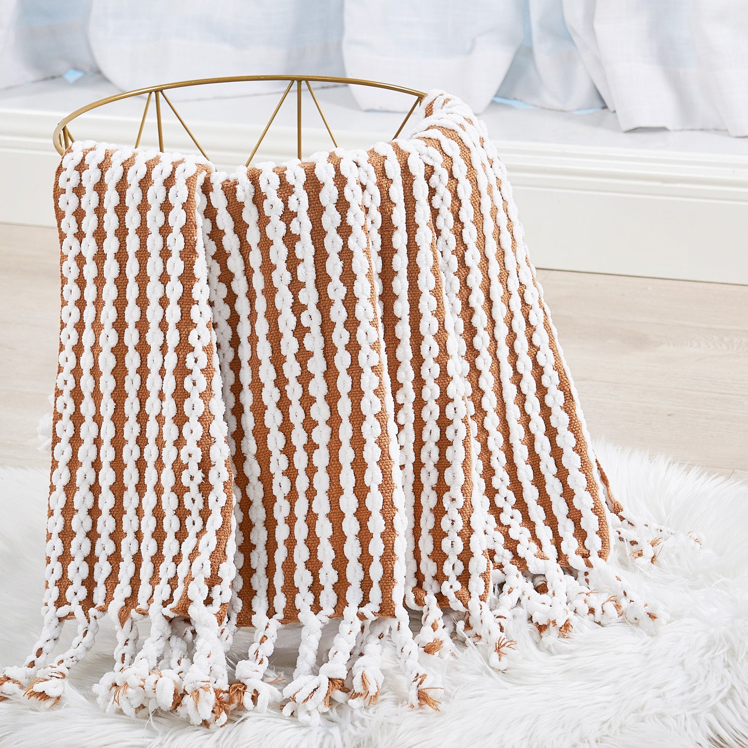 • Construction: This woven knitted chain tweed throw is made of 100% high quality microfiber polyester. The design is finished off with adorable knotted braid tassels along each side of the widths.