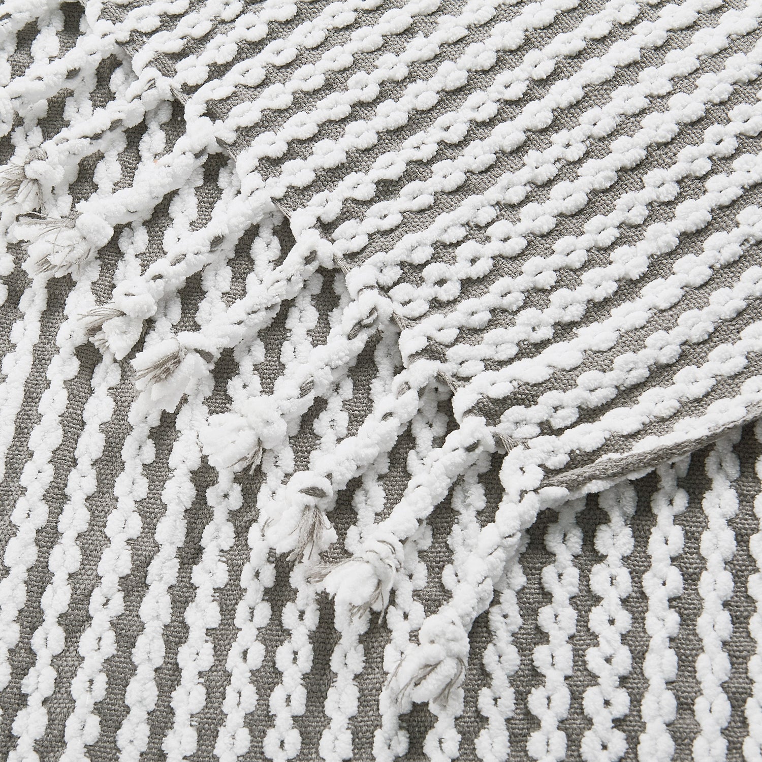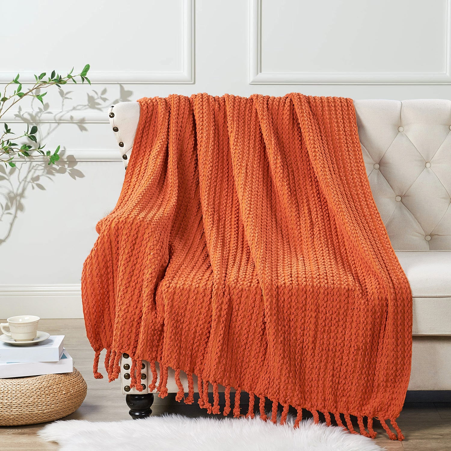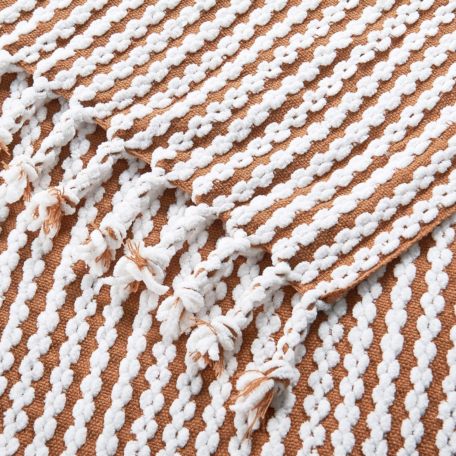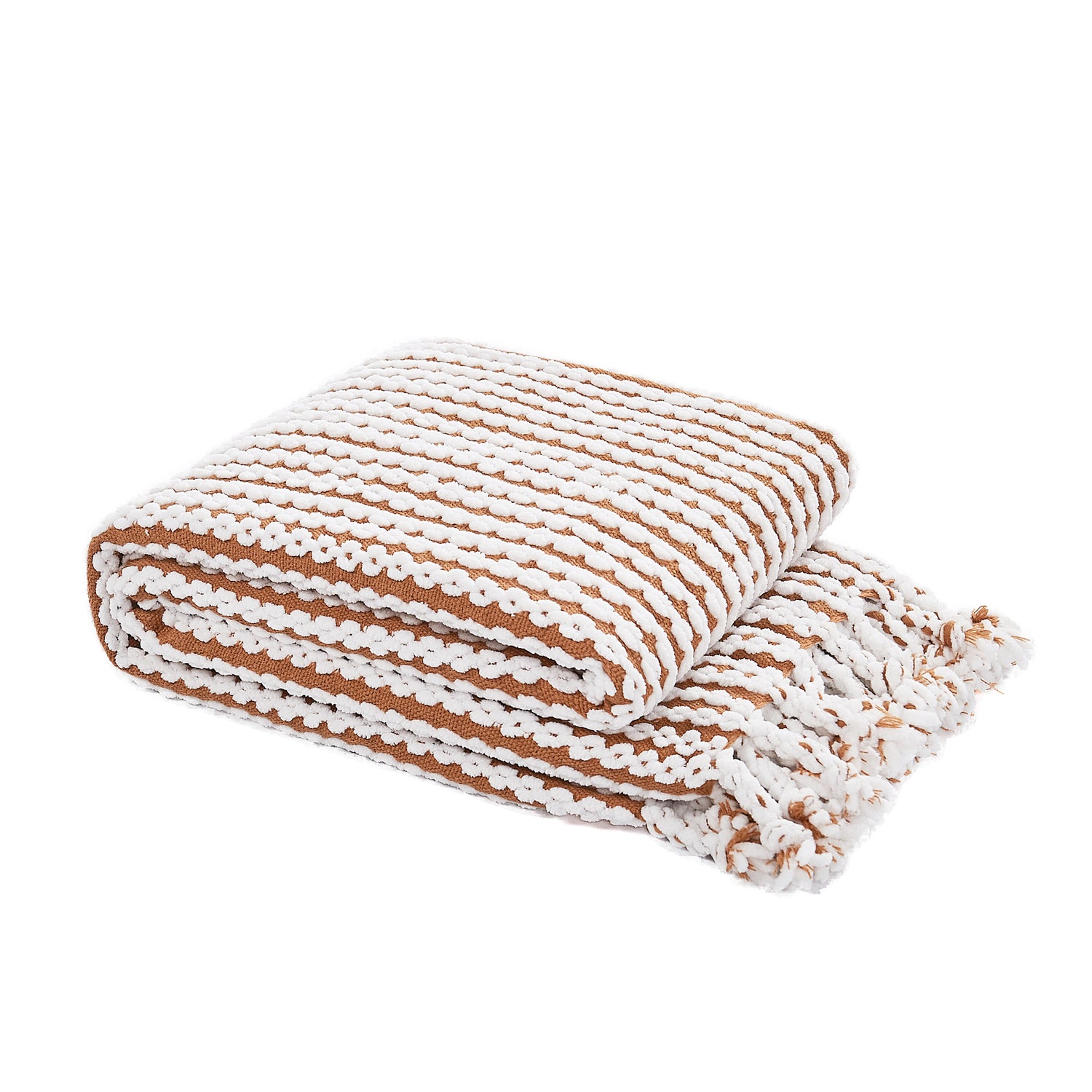 • Construction: This woven knitted chain tweed throw is made of 100% high quality microfiber polyester. The design is finished off with adorable knotted braid tassels along each side of the widths.