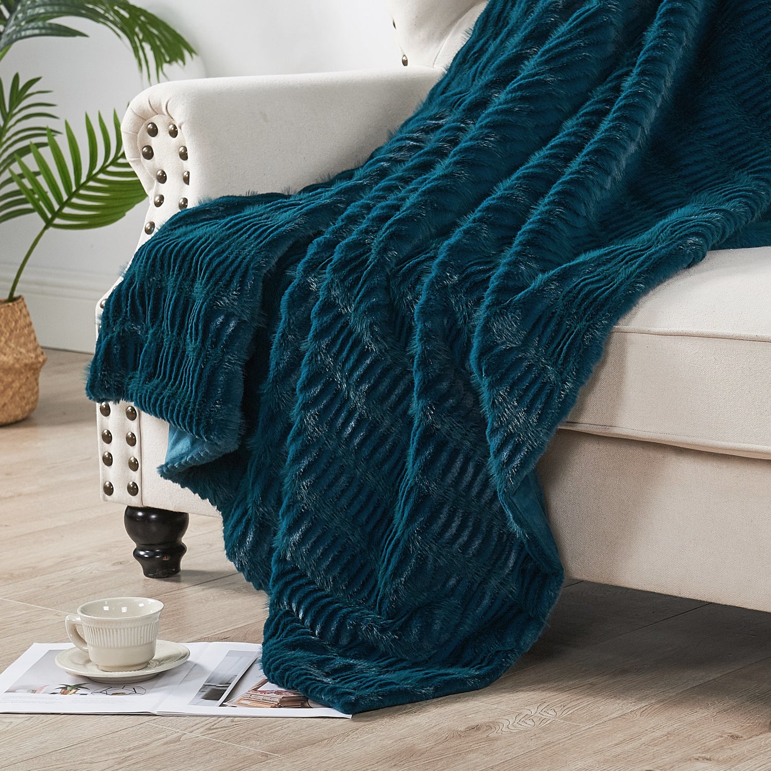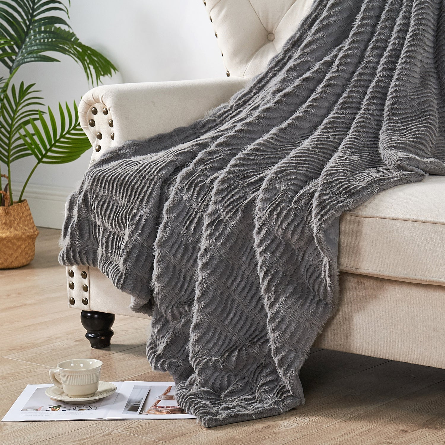 Shaggy Wavy Faux Fur Throw Blanket (50" x 60")