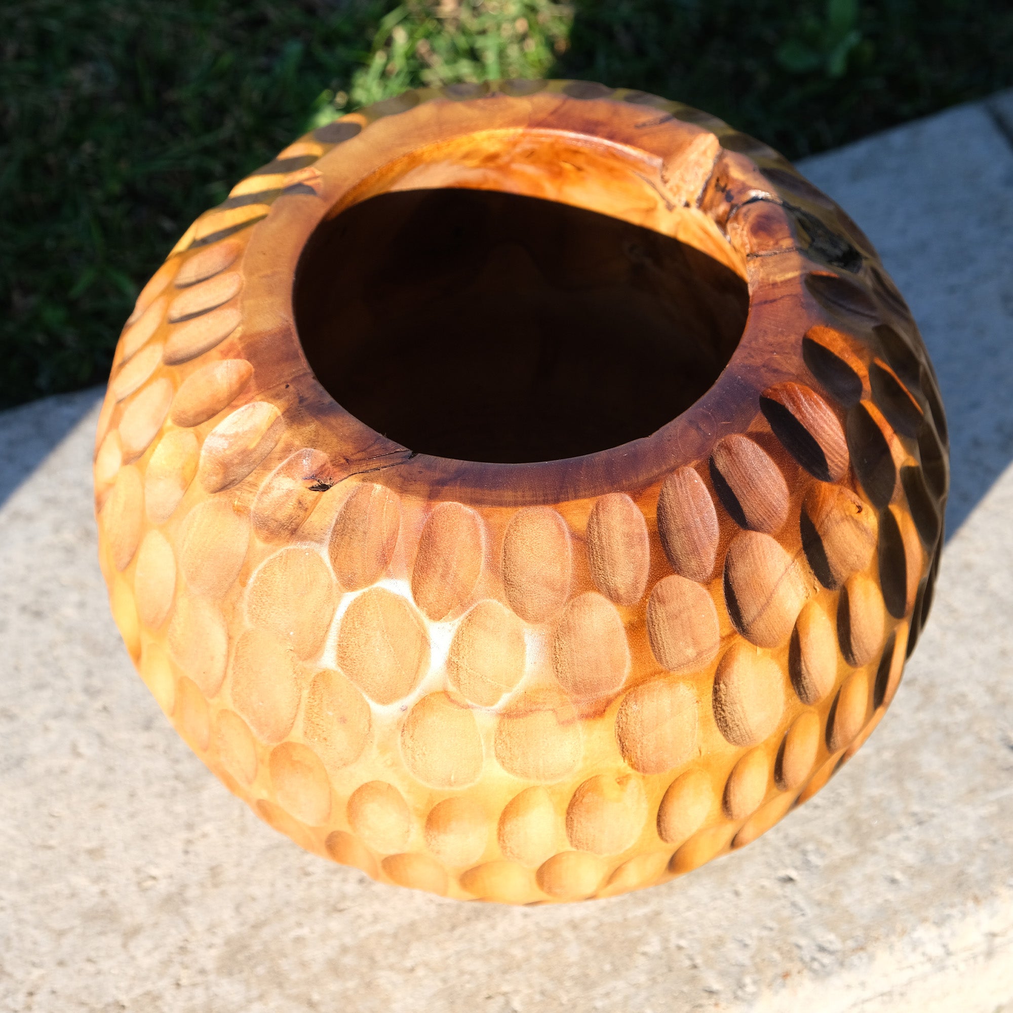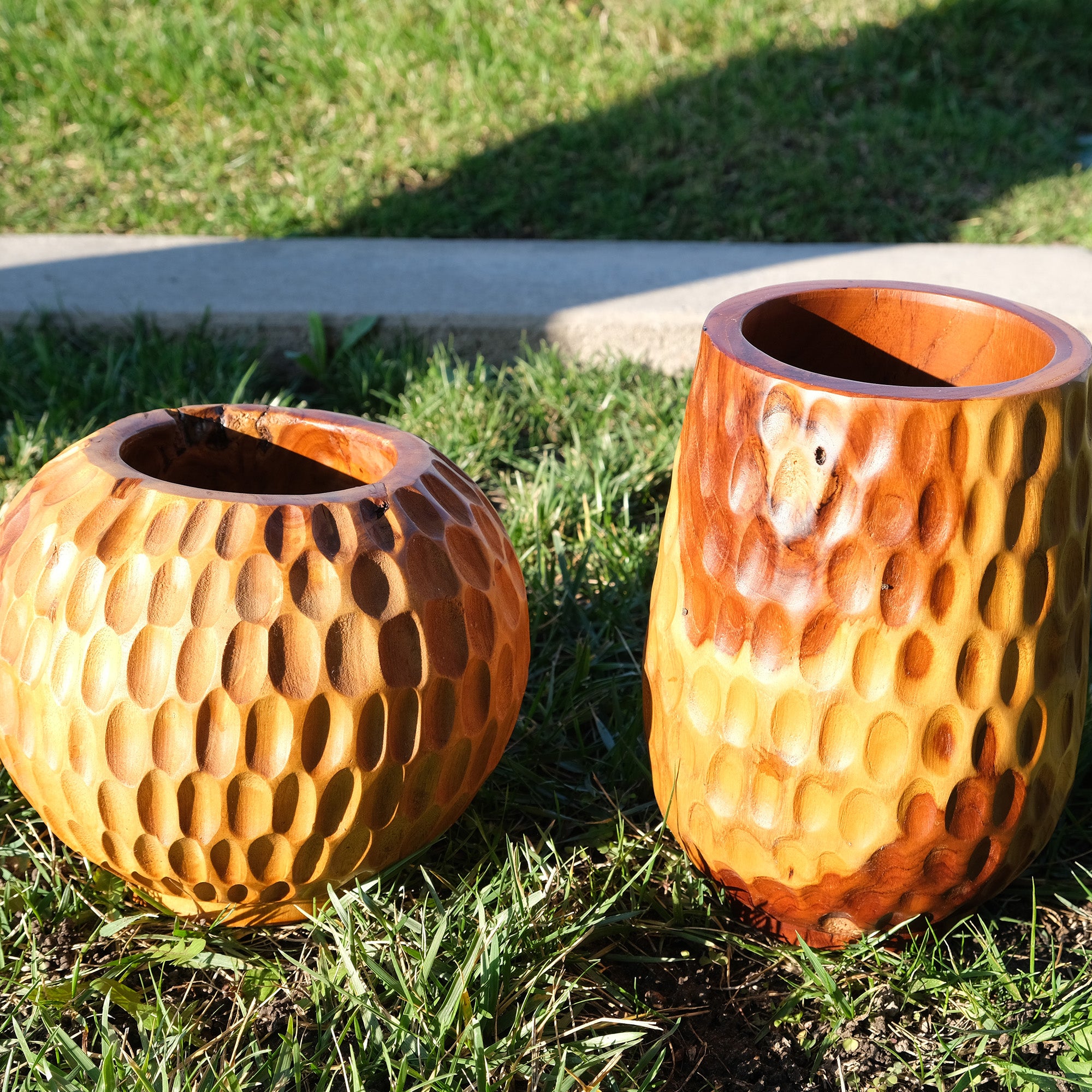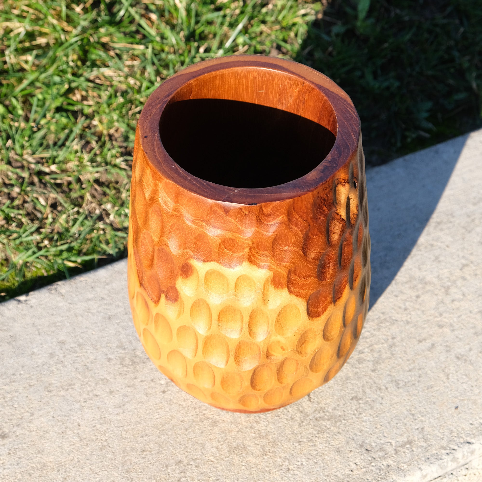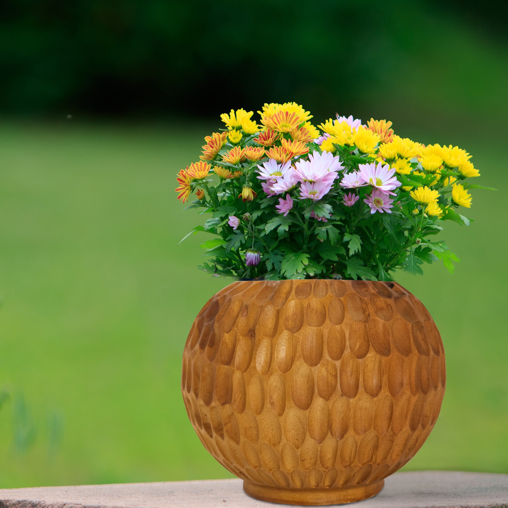 This vase is crafted from teak. It is a practical wood with beautiful grain patterns. It is meticulously handcrafted by skilled artisans.