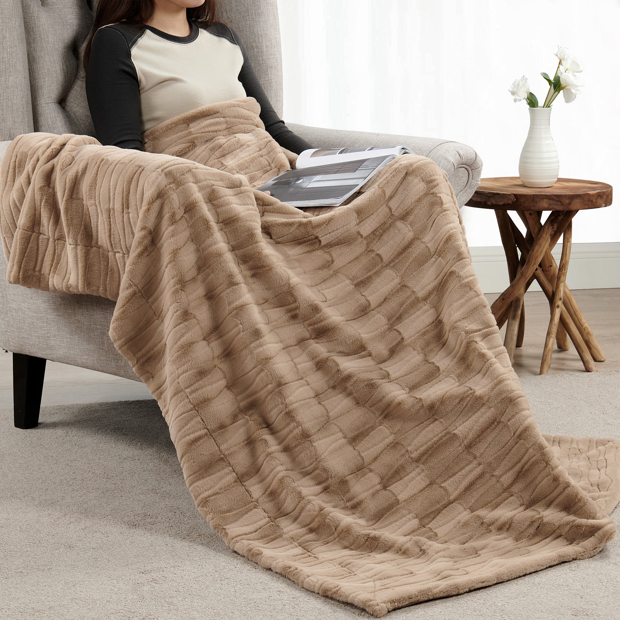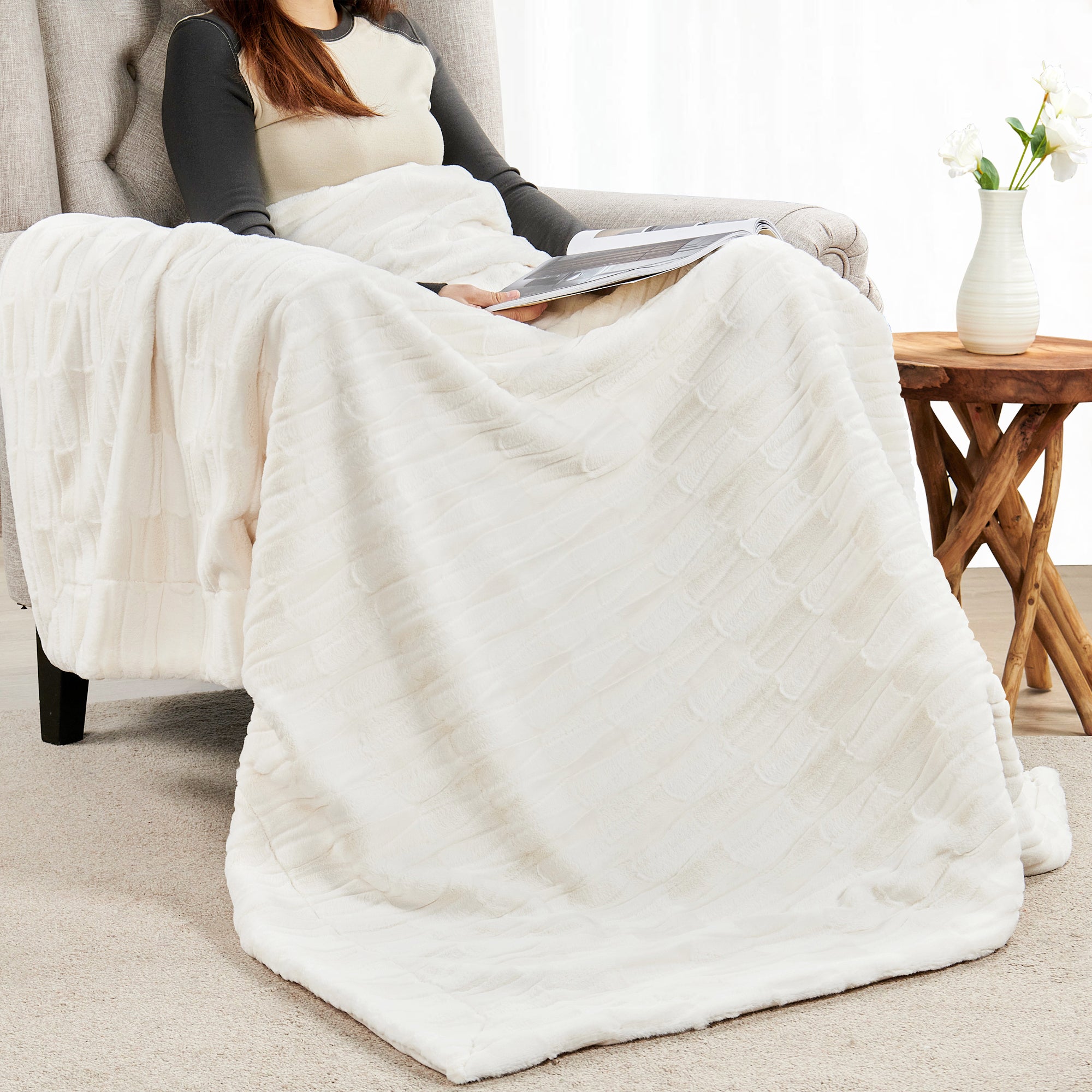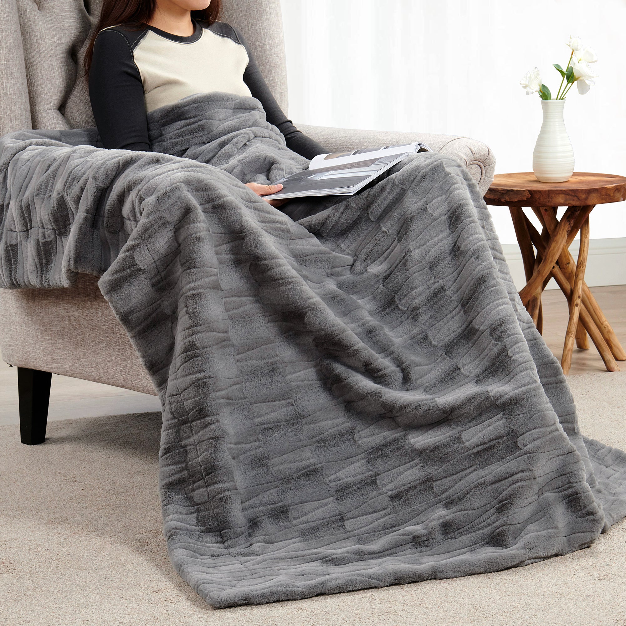 - Construction: Made from premium faux fur on the front and soft micromink on the reverse, this blanket offers a cozy and breathable experience.