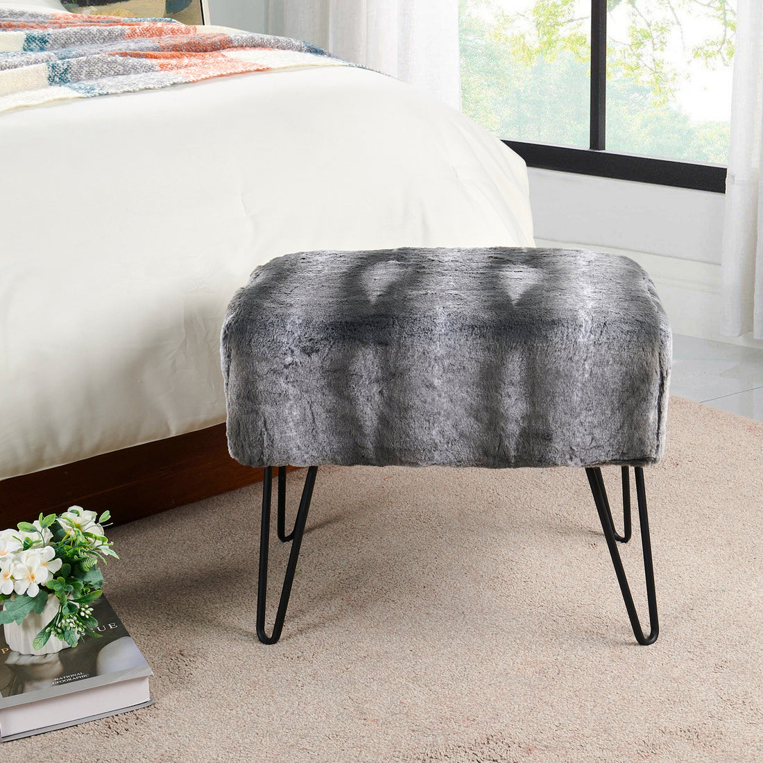 Feathery Faux Fur Ottoman (19" x 13" x 17")Feathery Faux Fur Ottoman (19" x 13" x 17")- Regular price