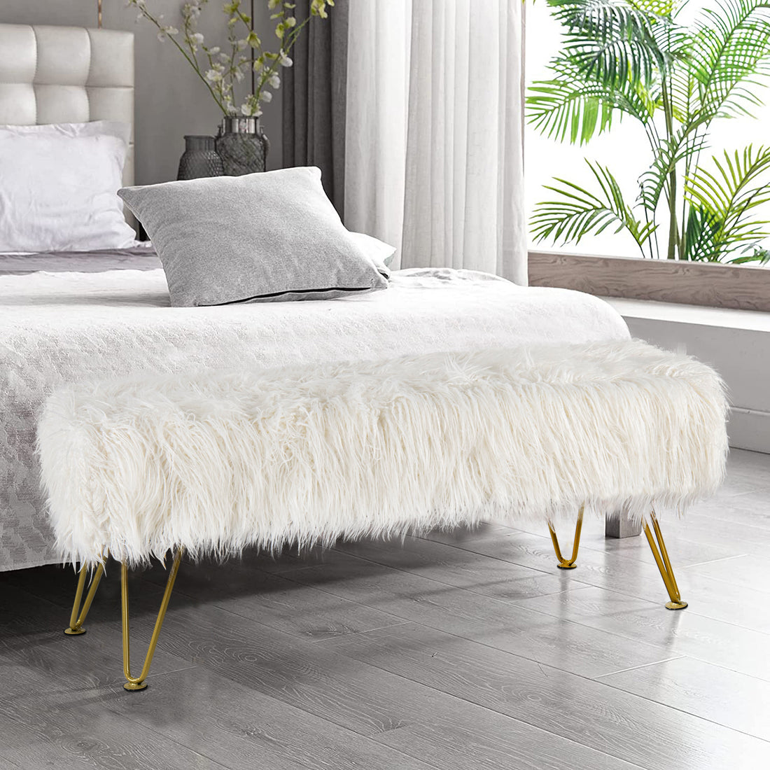 Super Mink Faux Fur Ottoman with Gold Legs (46" x 16" x 17")Super Mink Faux Fur Ottoman with Gold Legs (46" x 16" x 17")- Regular price