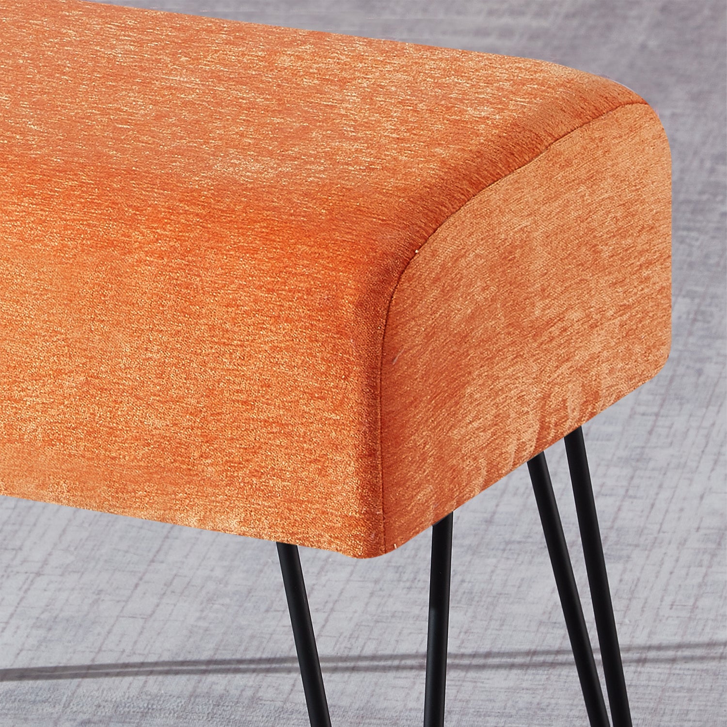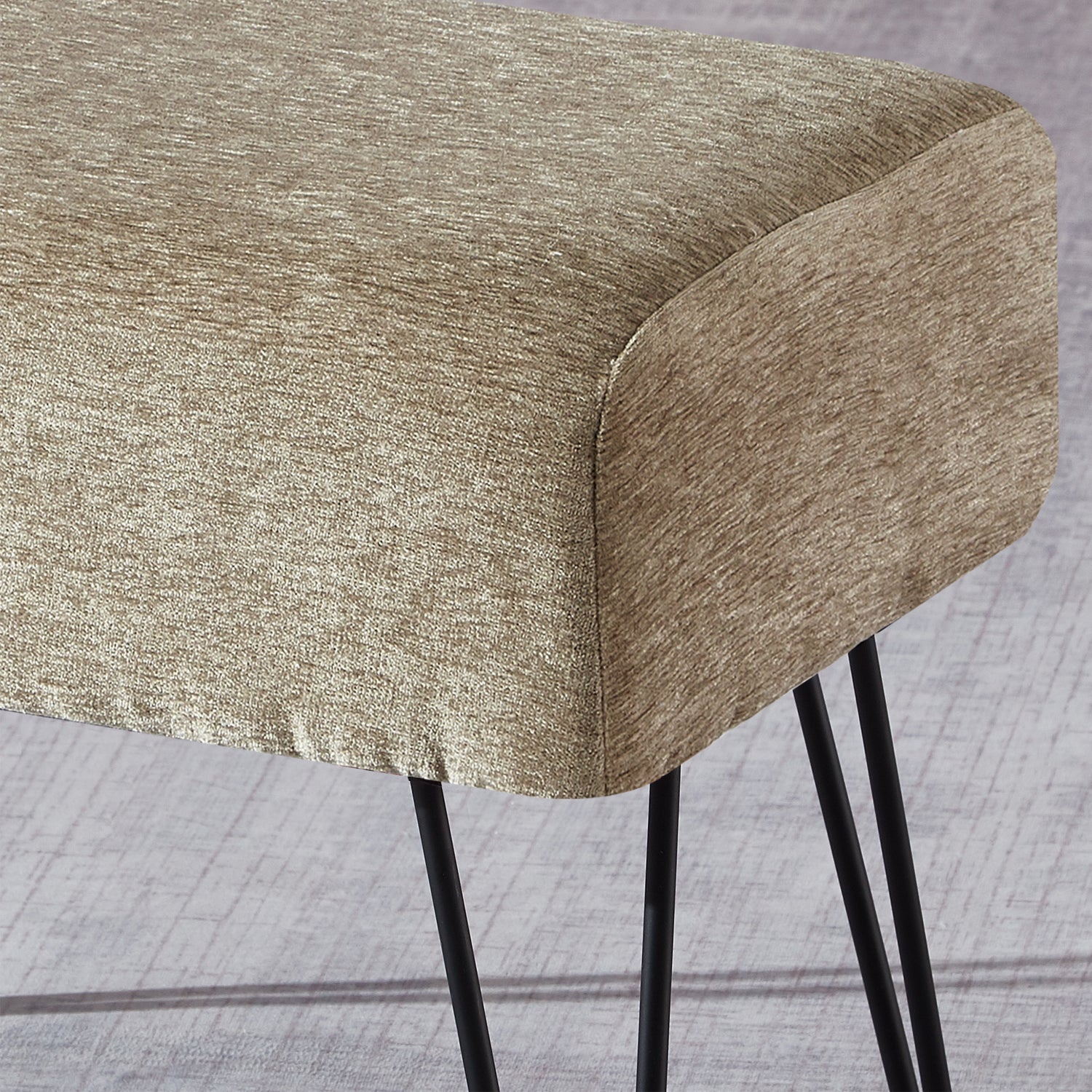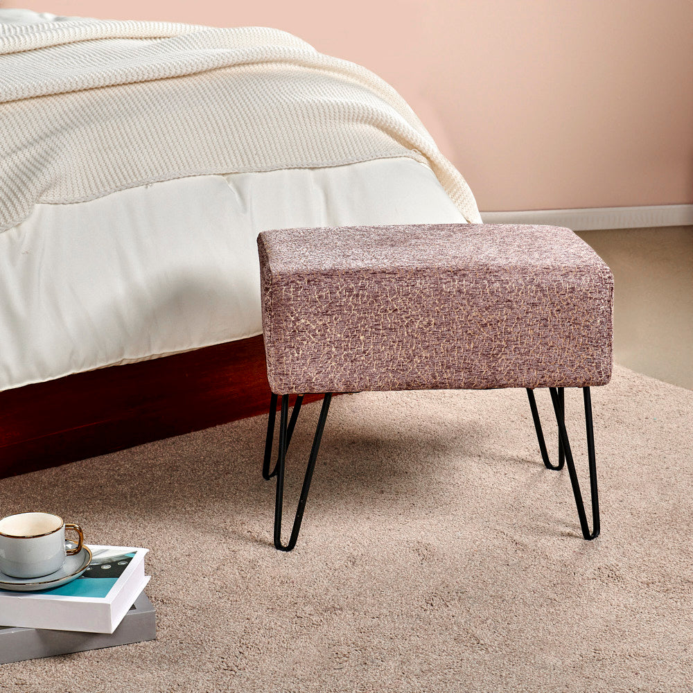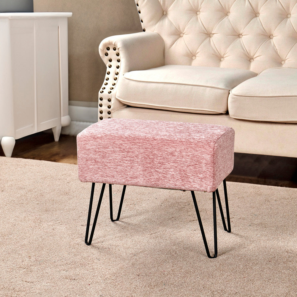• Easy Assembly: Simply screw the metal hairpin legs into each corner of the ottoman using the provided screws. The hairpin legs and screws are conveniently stored in a hidden zipper compartment under the seat.
