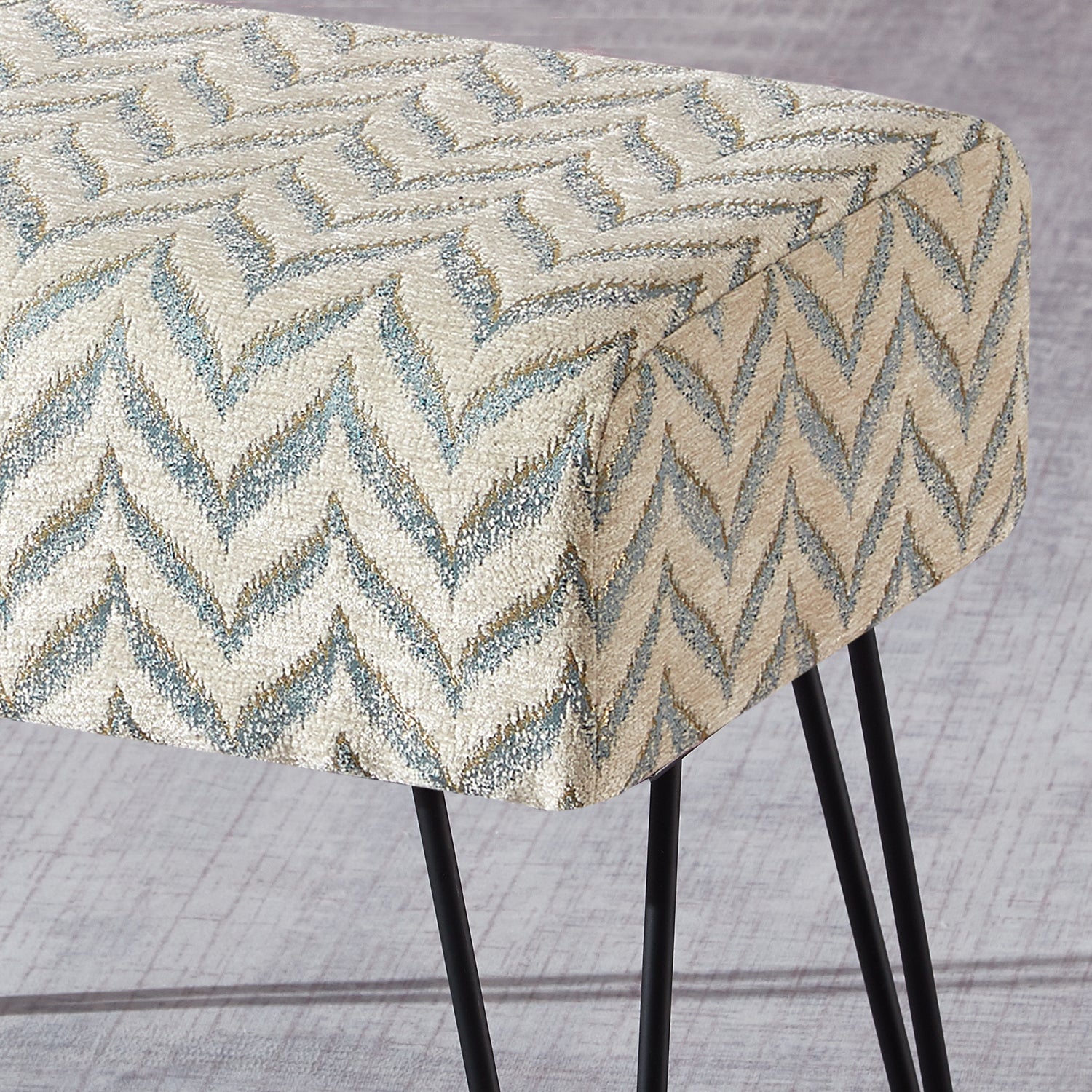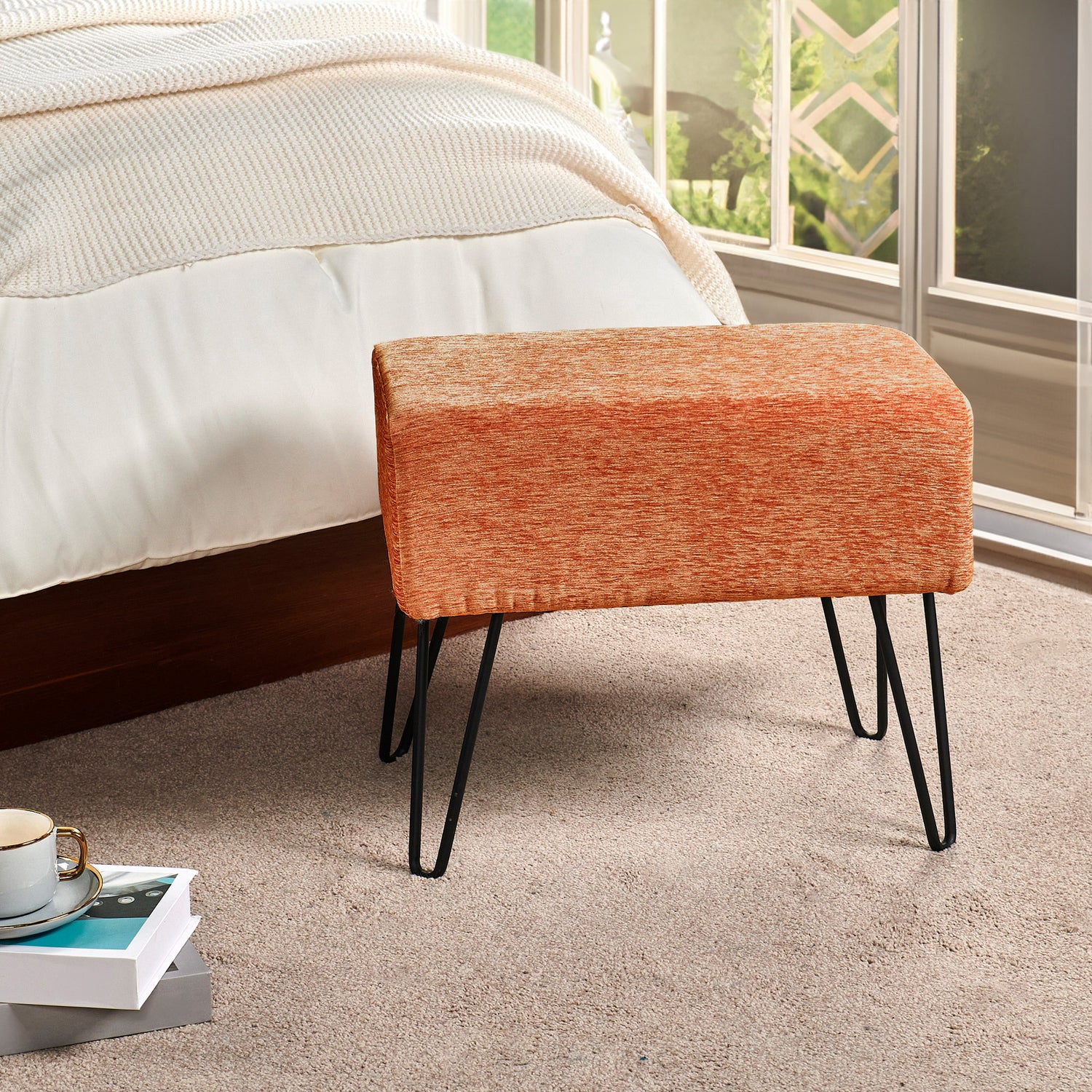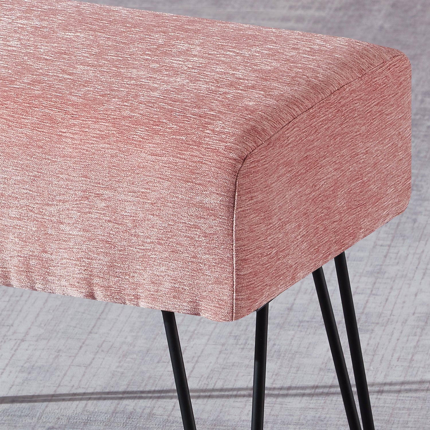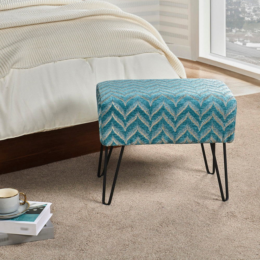 • Easy Assembly: Simply screw the metal hairpin legs into each corner of the ottoman using the provided screws. The hairpin legs and screws are conveniently stored in a hidden zipper compartment under the seat.
