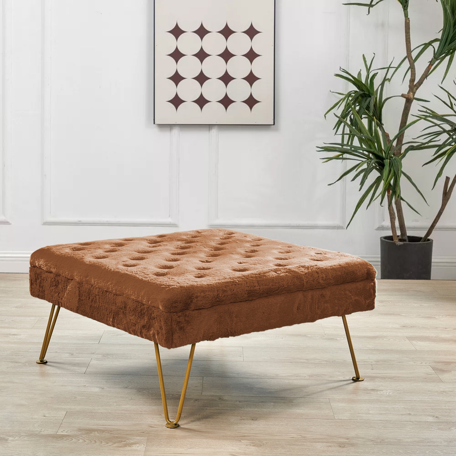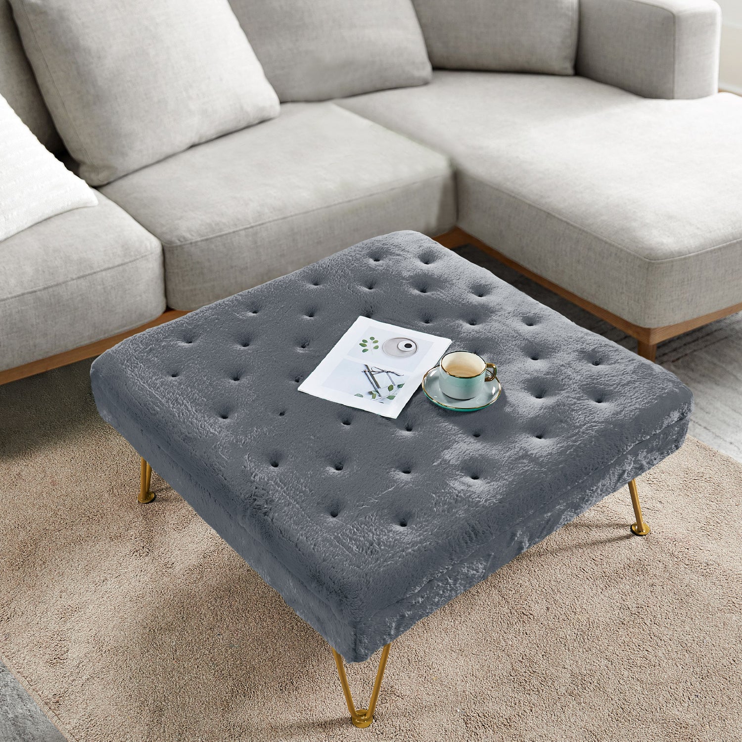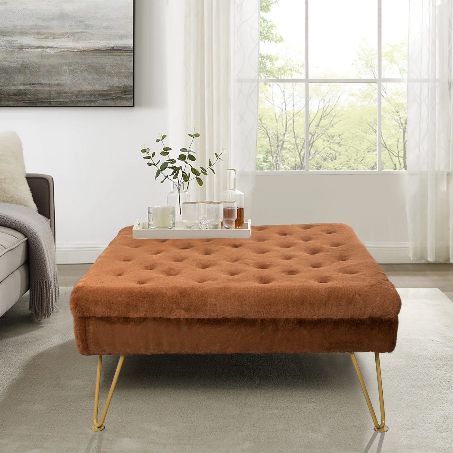 - TIMELESSLY ELEGANT! Supersoft Tufted Coffee Table Ottoman’s elegant and functional design offers a versatility that virtually suits any interior decor. Use your ottoman as a seat, tabletop, or footrest. Add large trays, books, or other accents to add style and extra class. With button tufting and polished brass nailhead accents, your new furniture piece will create the wow factor you’re looking for.