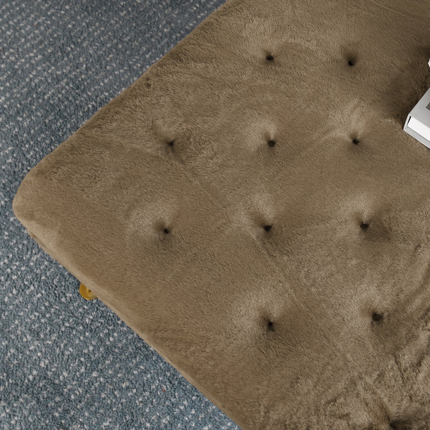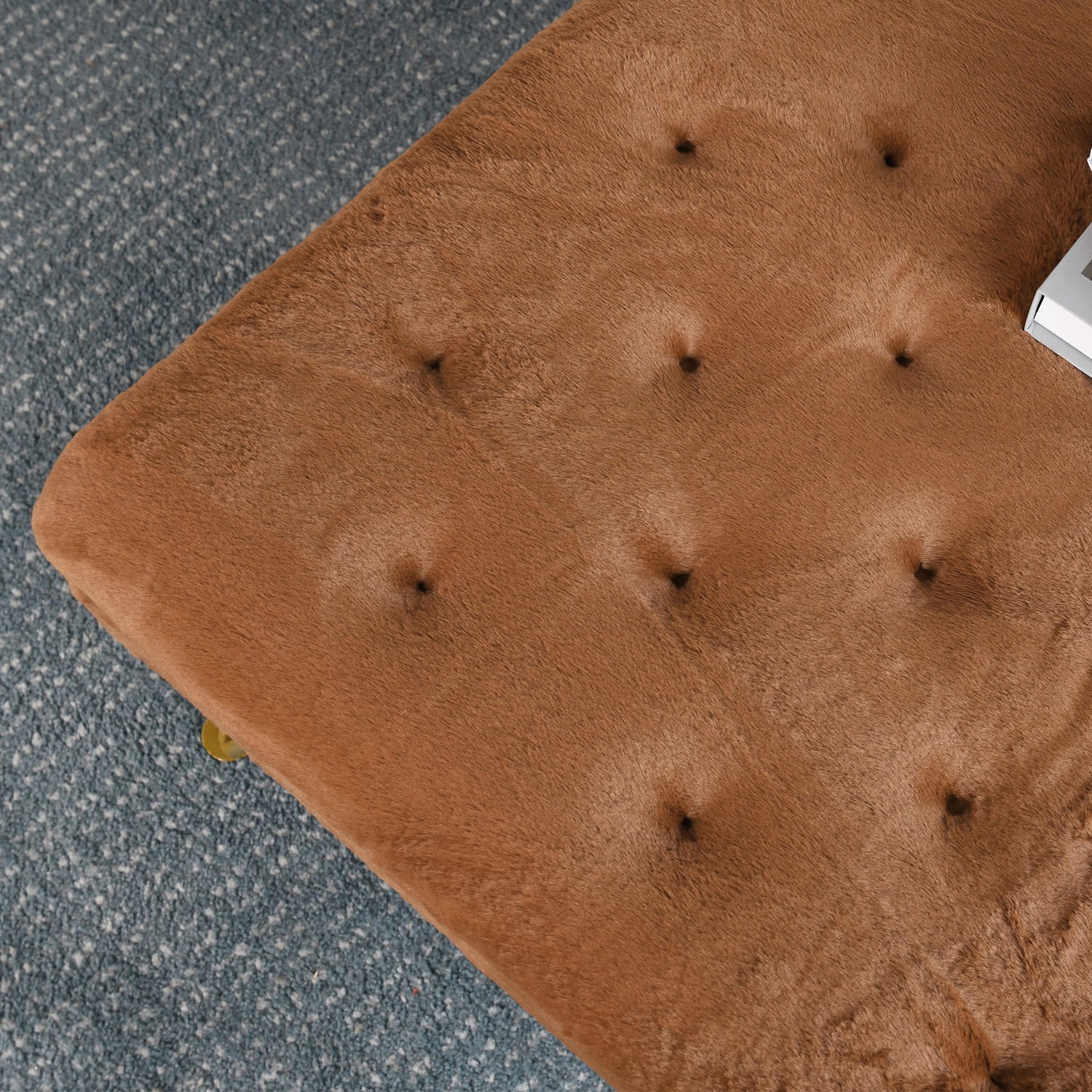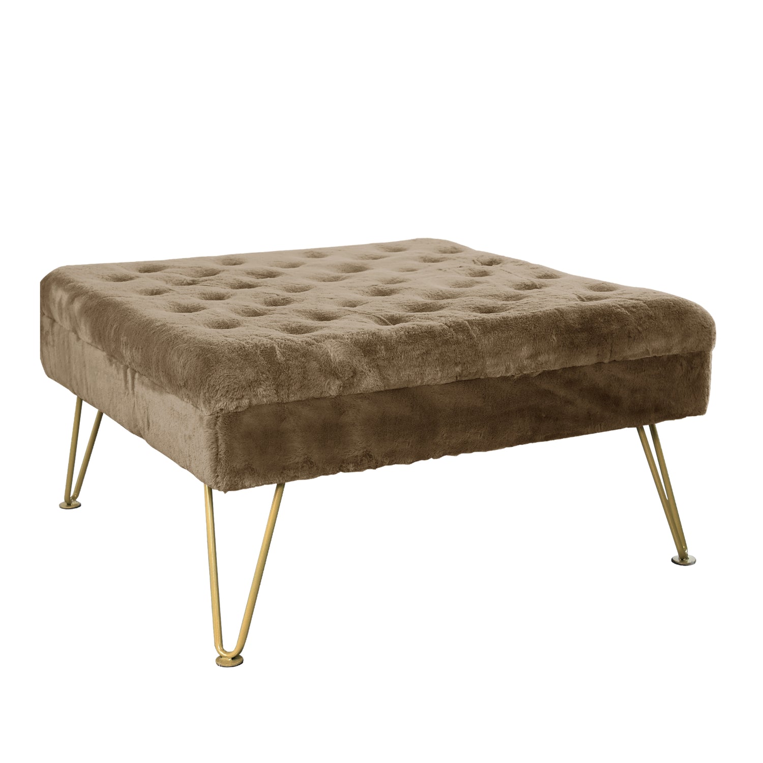 - EXPERTLY UPHOLSTERED! 100% Polyester Fabric. We engineered your ottoman to perfection under strict quality control standards to provide you with a lasting piece of furniture for your home. Constructed with a wood frame, foam cushion, and expertly upholstered in velvety, super soft fabric. Finished with double rows of polished brass nailhead accents, button tufting, and wooden carved legs.