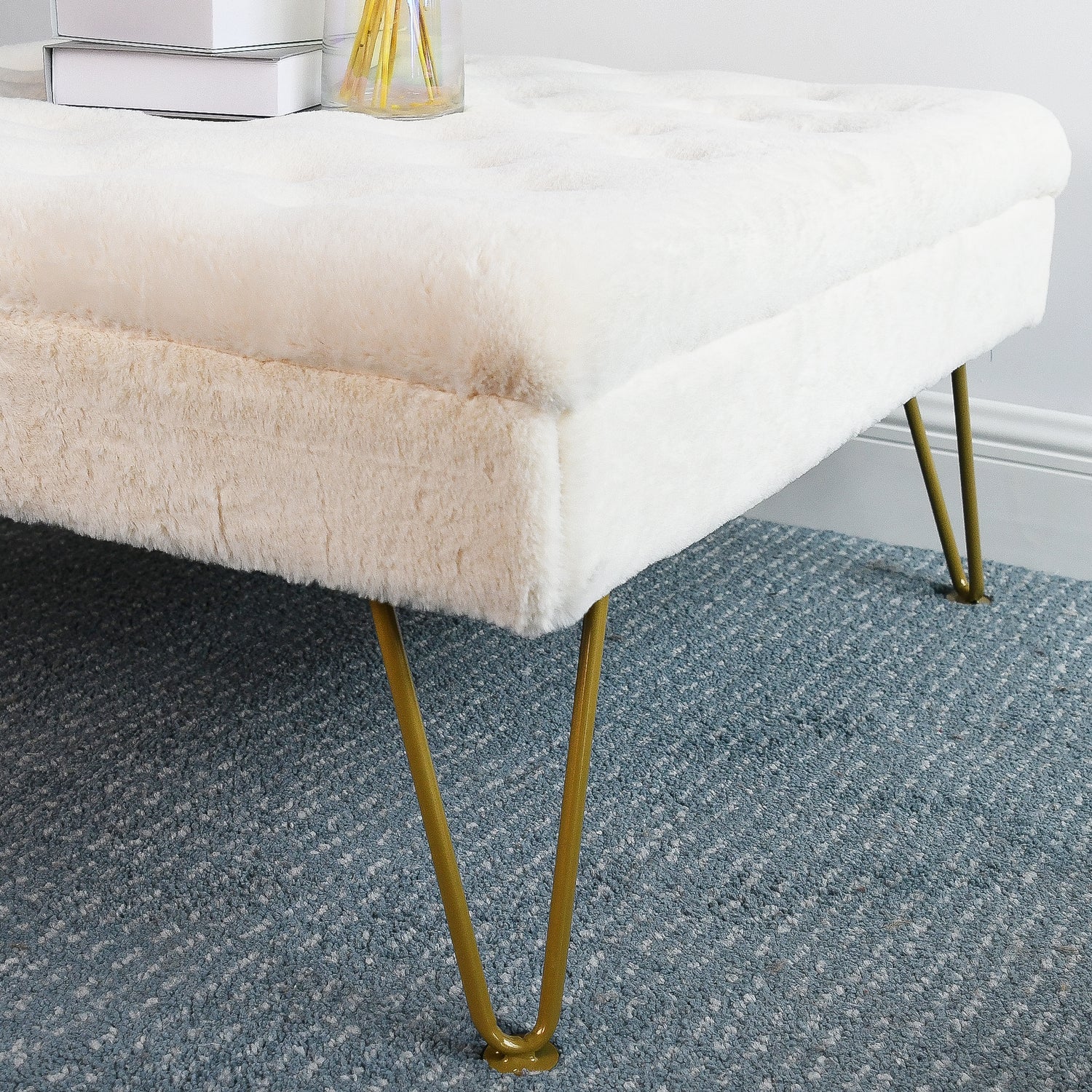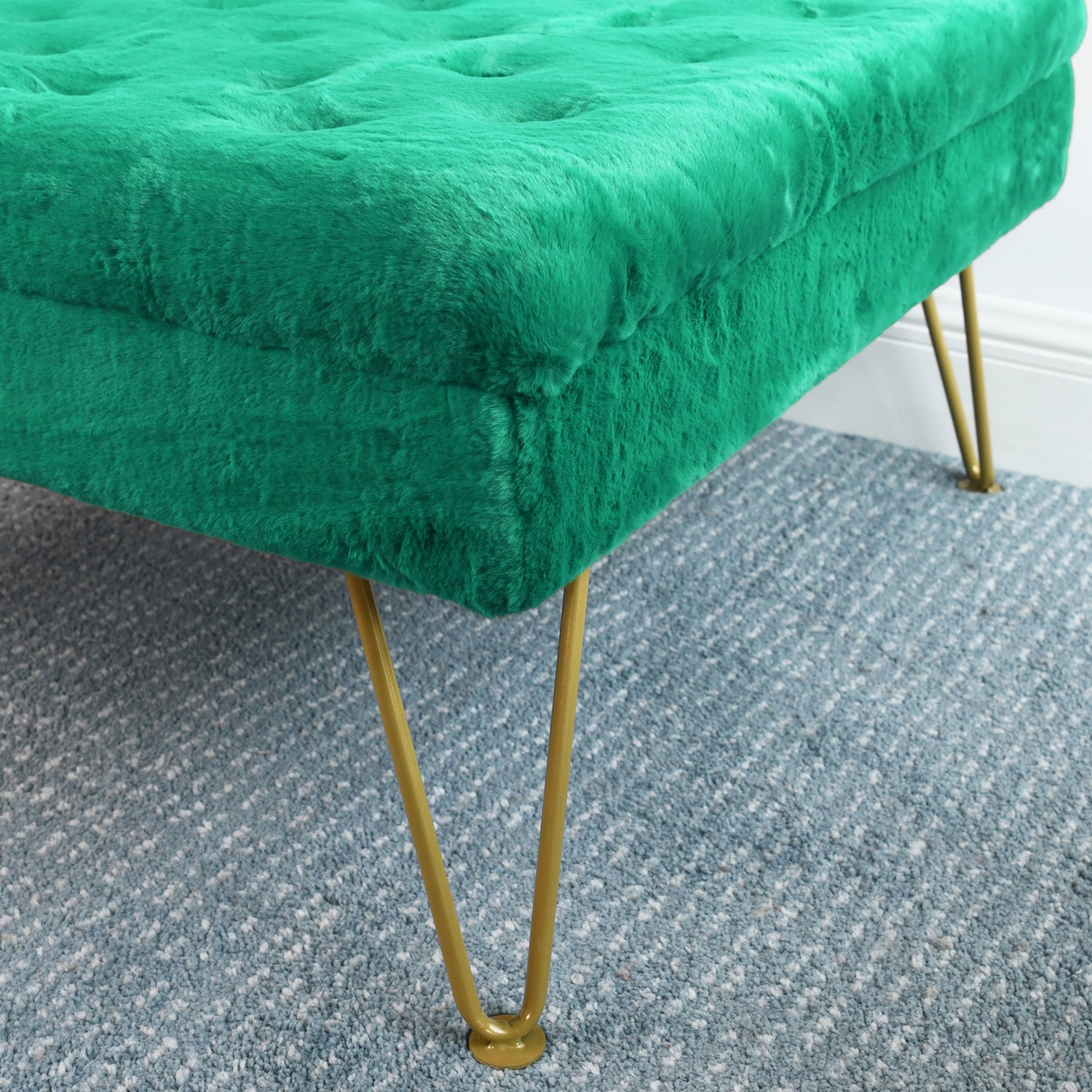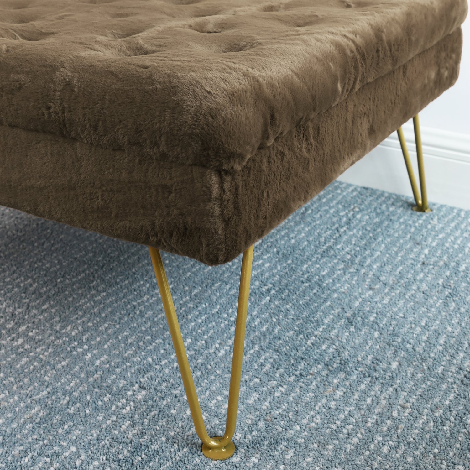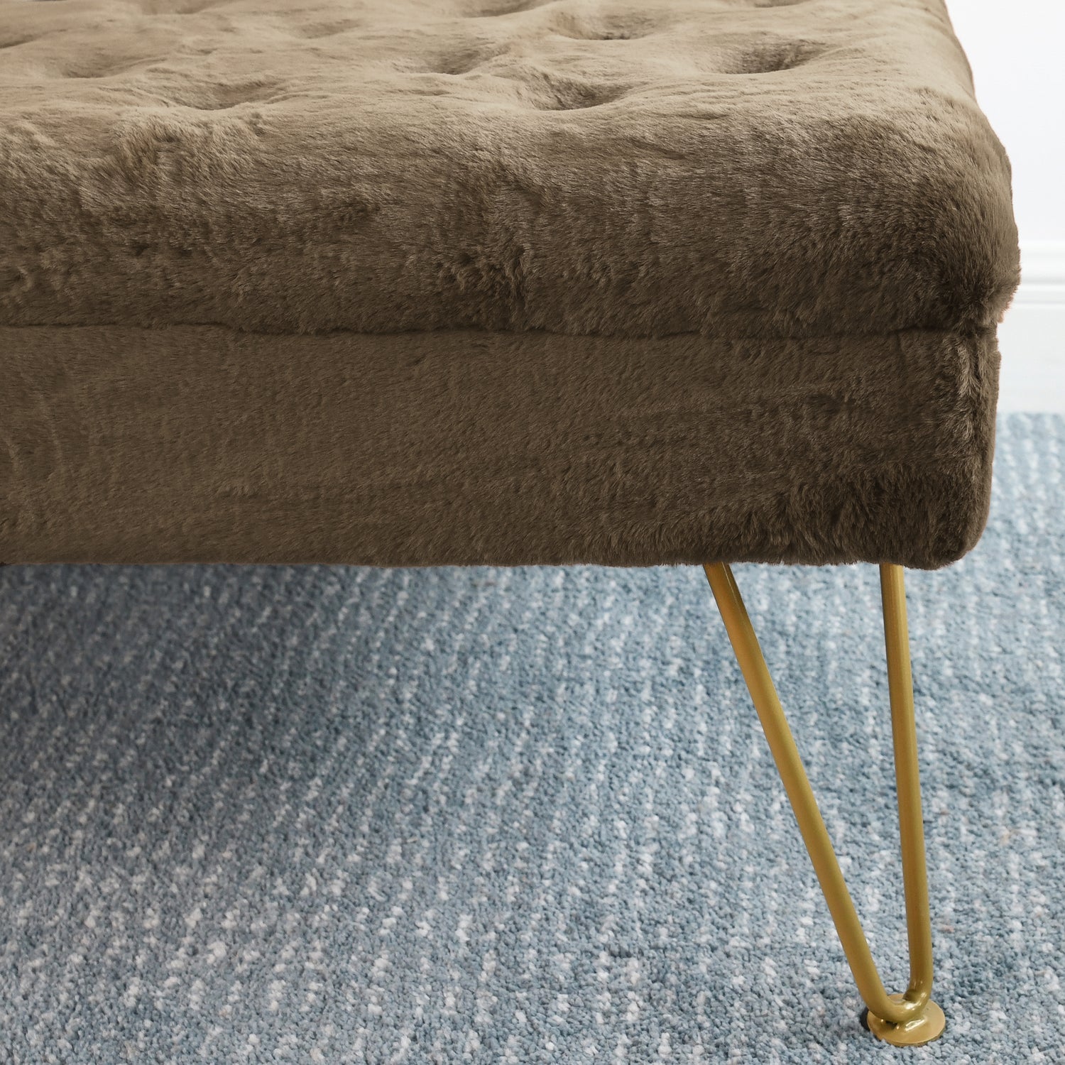- EXPERTLY UPHOLSTERED! 100% Polyester Fabric. We engineered your ottoman to perfection under strict quality control standards to provide you with a lasting piece of furniture for your home. Constructed with a wood frame, foam cushion, and expertly upholstered in velvety, super soft fabric. Finished with double rows of polished brass nailhead accents, button tufting, and wooden carved legs.