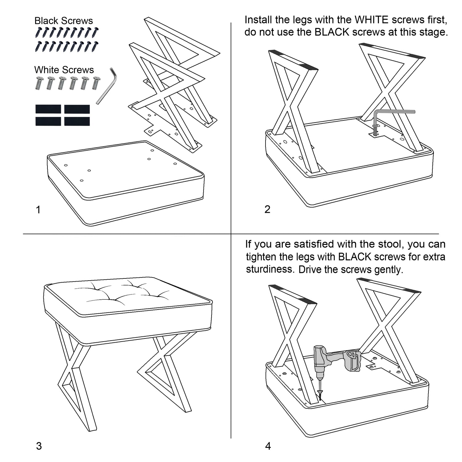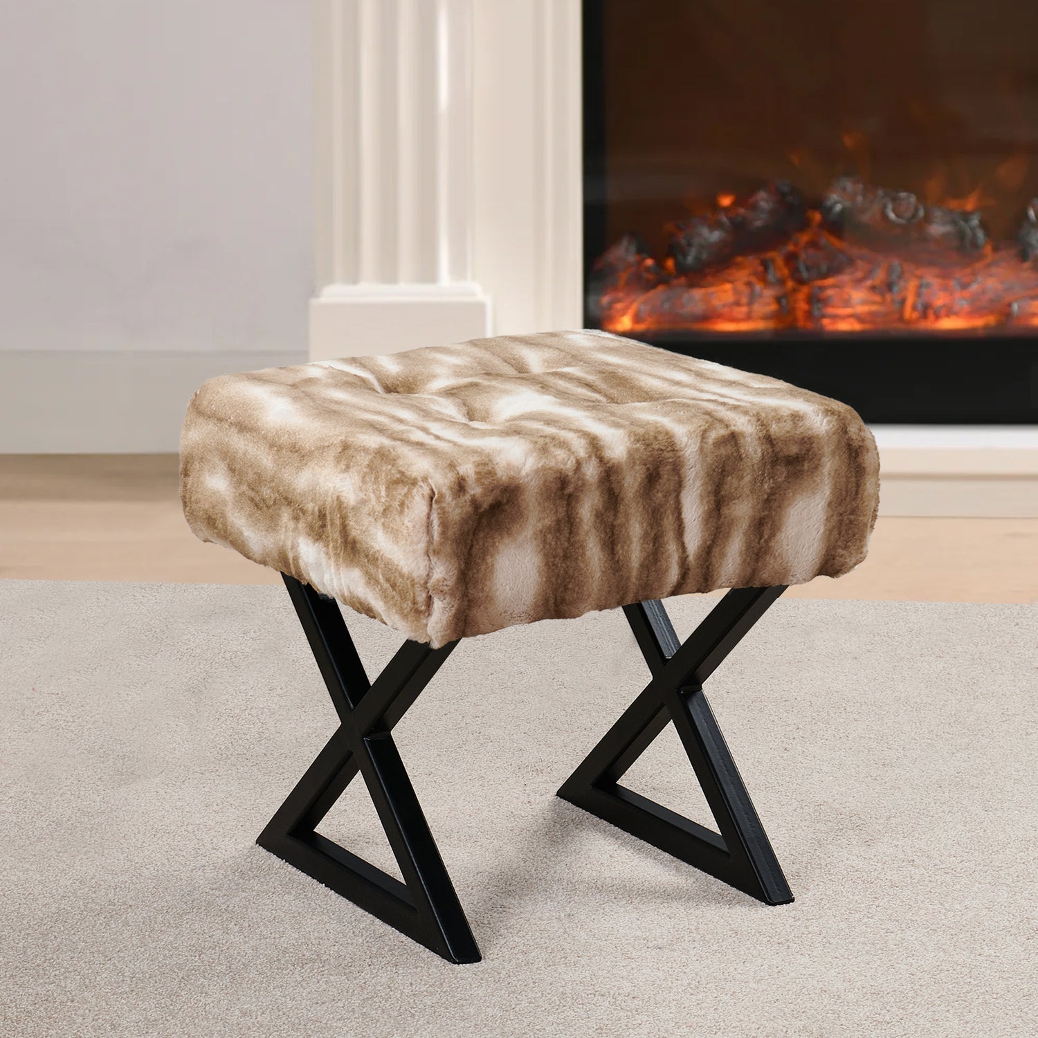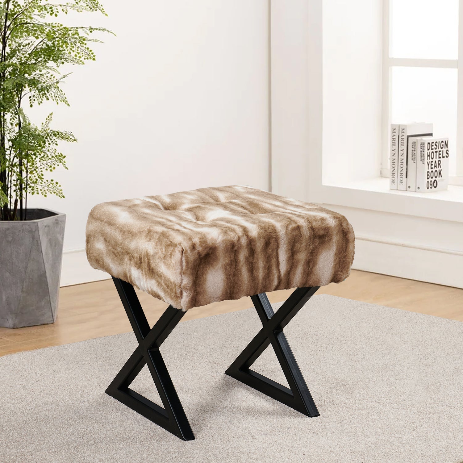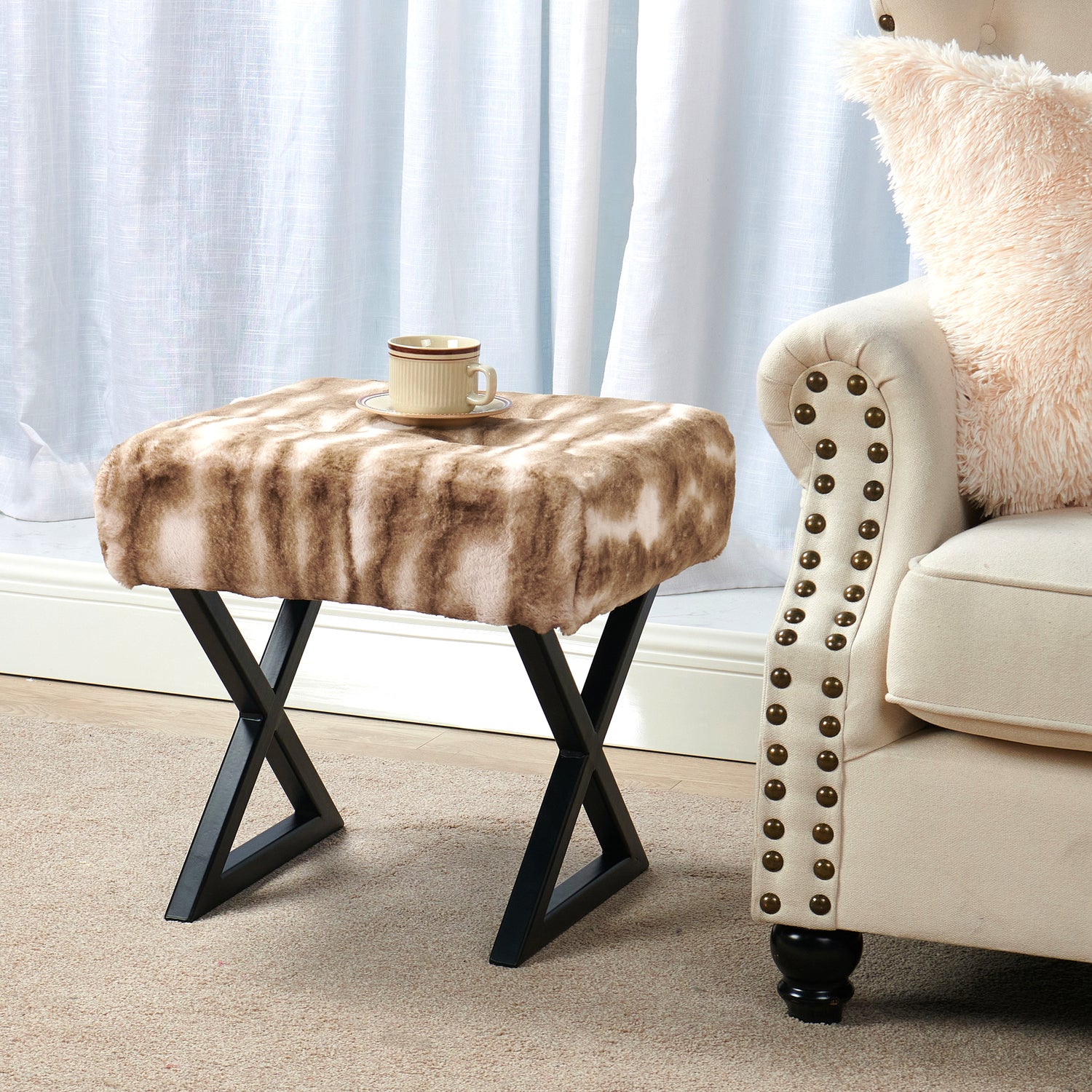 Indulge in ultimate comfort and relaxation with our FauxFur Ottoman Vanity Stool. The super soft fauxfur cushion invites you to put your feet up and unwind. This ottoman is not only comfortable but also practical and affordable. Elevate your home decor with this upscale ottoman, perfect for adding a touch of class to any room. With a weight capacity of 300 pounds, the metal hairpin legs are sturdy and durable. Use it as an accent piece in your living room, office, kids' room, bedroom, or even as a vanity chair or shoe bench. Complete the look with matching throw blankets, sold separately. Assembly is a breeze with just a few screws to attach the legs. The foam cushion comes with a 100% Polyester cover that can be spot cleaned for easy maintenance. The ottoman is wrapped in plastic and boxed for ultimate protection during shipping.