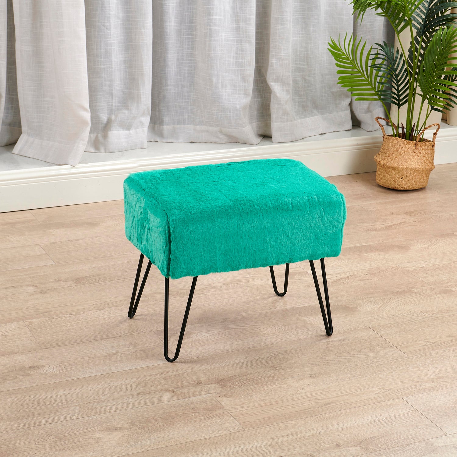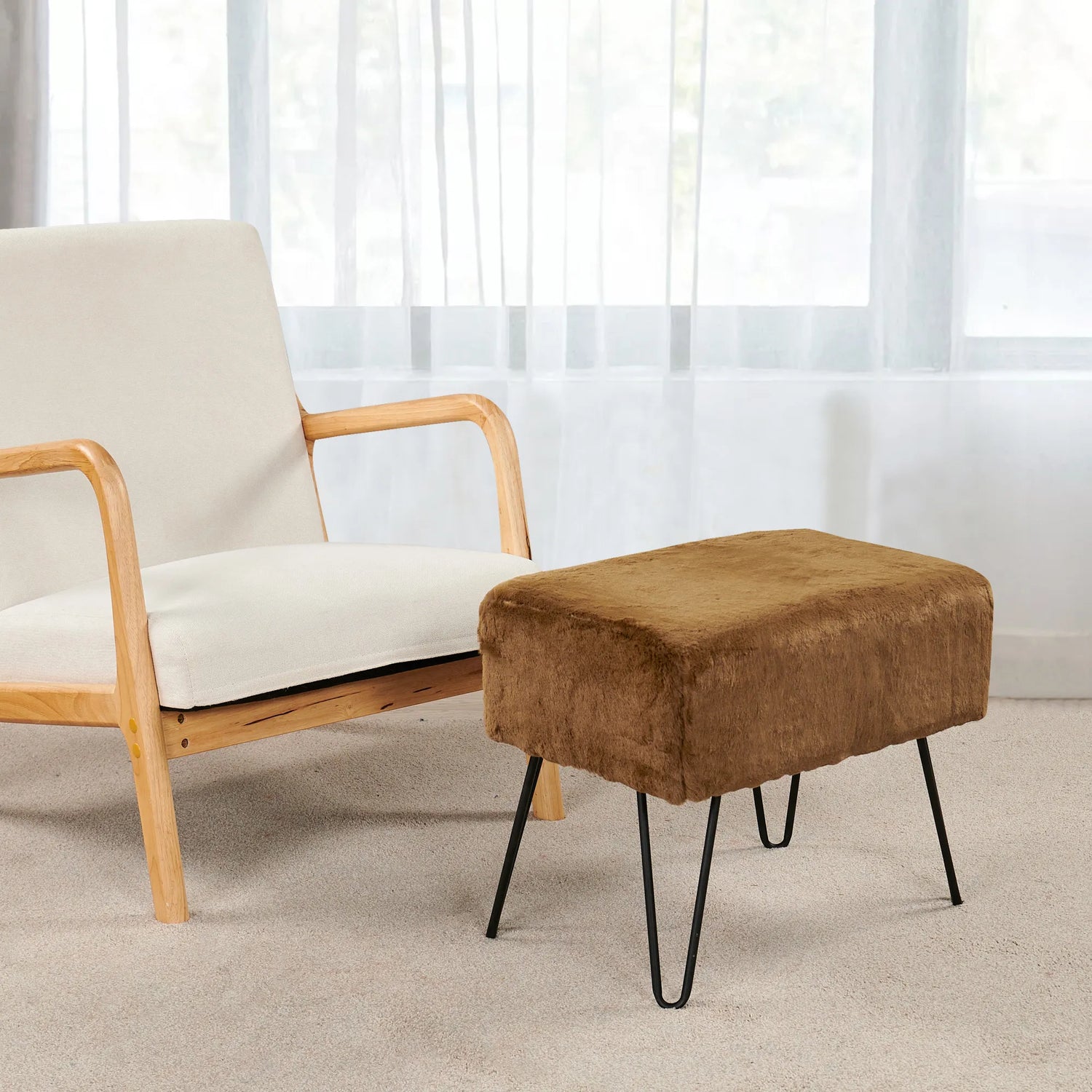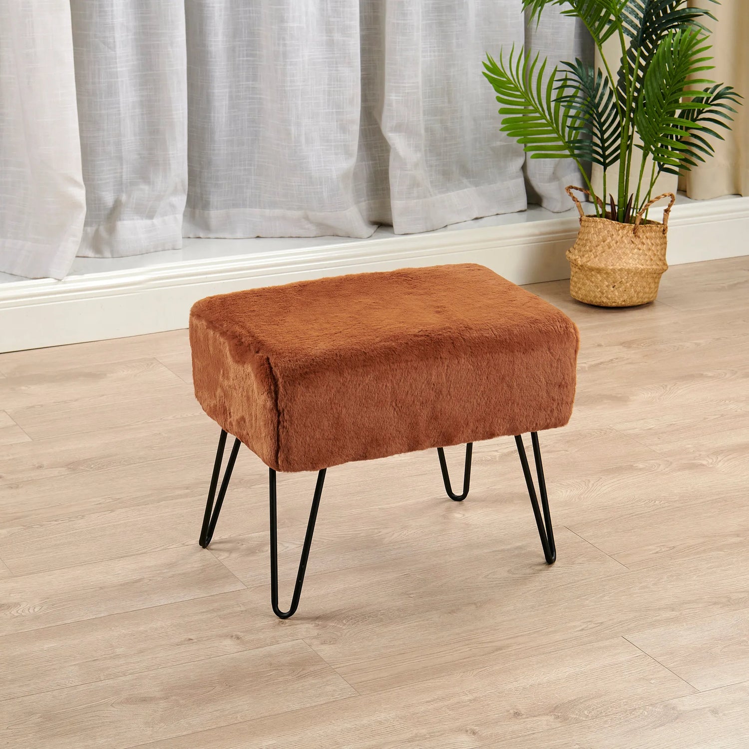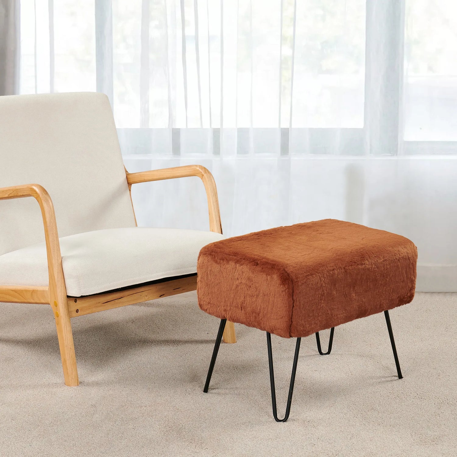 Solid Faux Fur Ottoman (19" x 13" x 17")