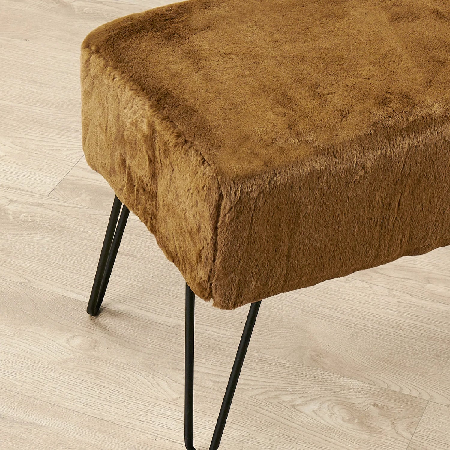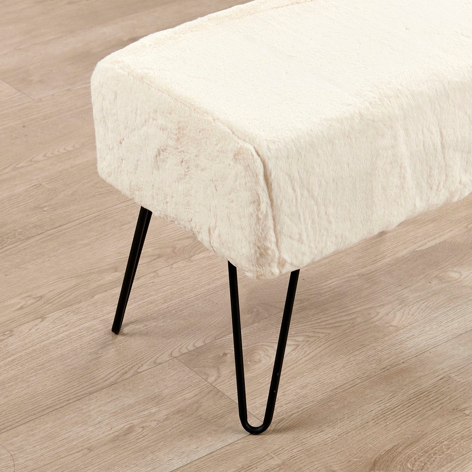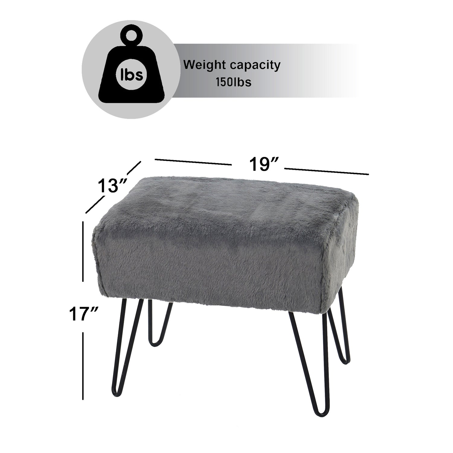- PROTECT AND CARE FOR YOUR BENCH! Spot clean seat cushion cover only on visible stains and spots using mild soap and a clean, soft towel. Metal hairpin legs may be wiped with a clean, damp towel. All products are built to last a lifetime when proper care and weight capacity is followed. Faux fur fabric is heat-treated for ultimate fade and wear resistance.