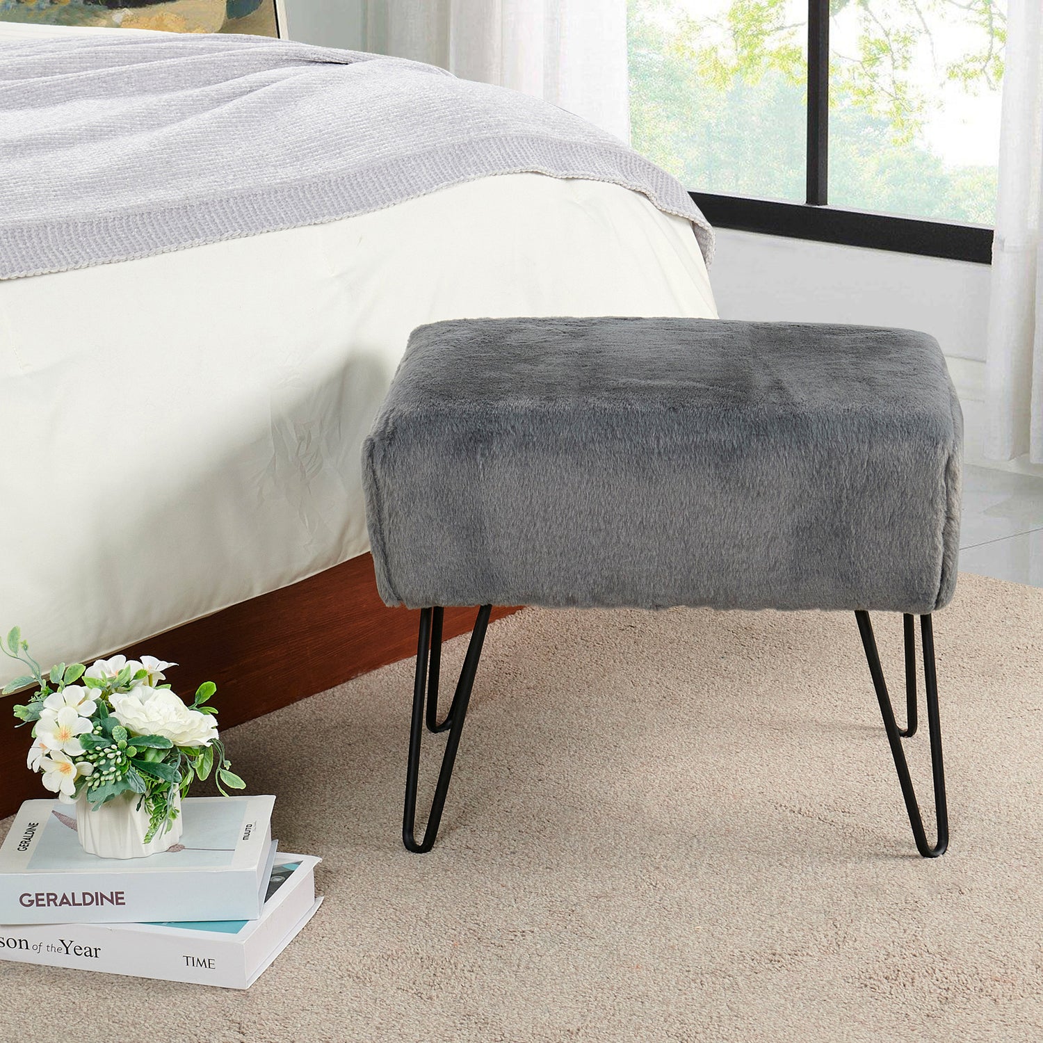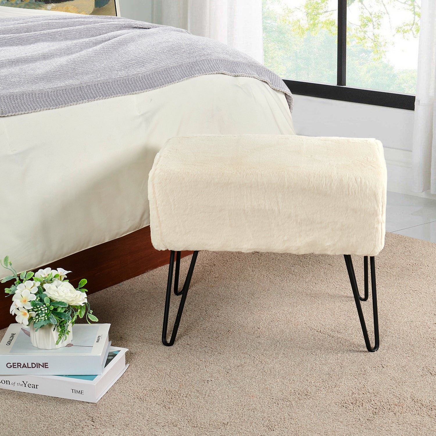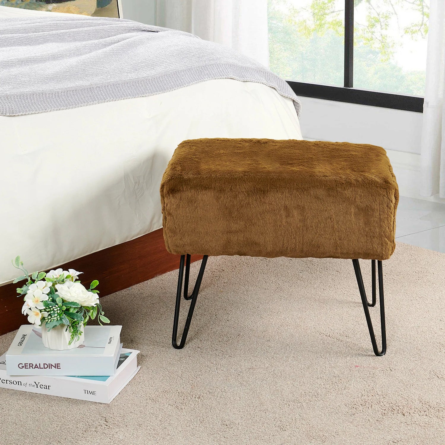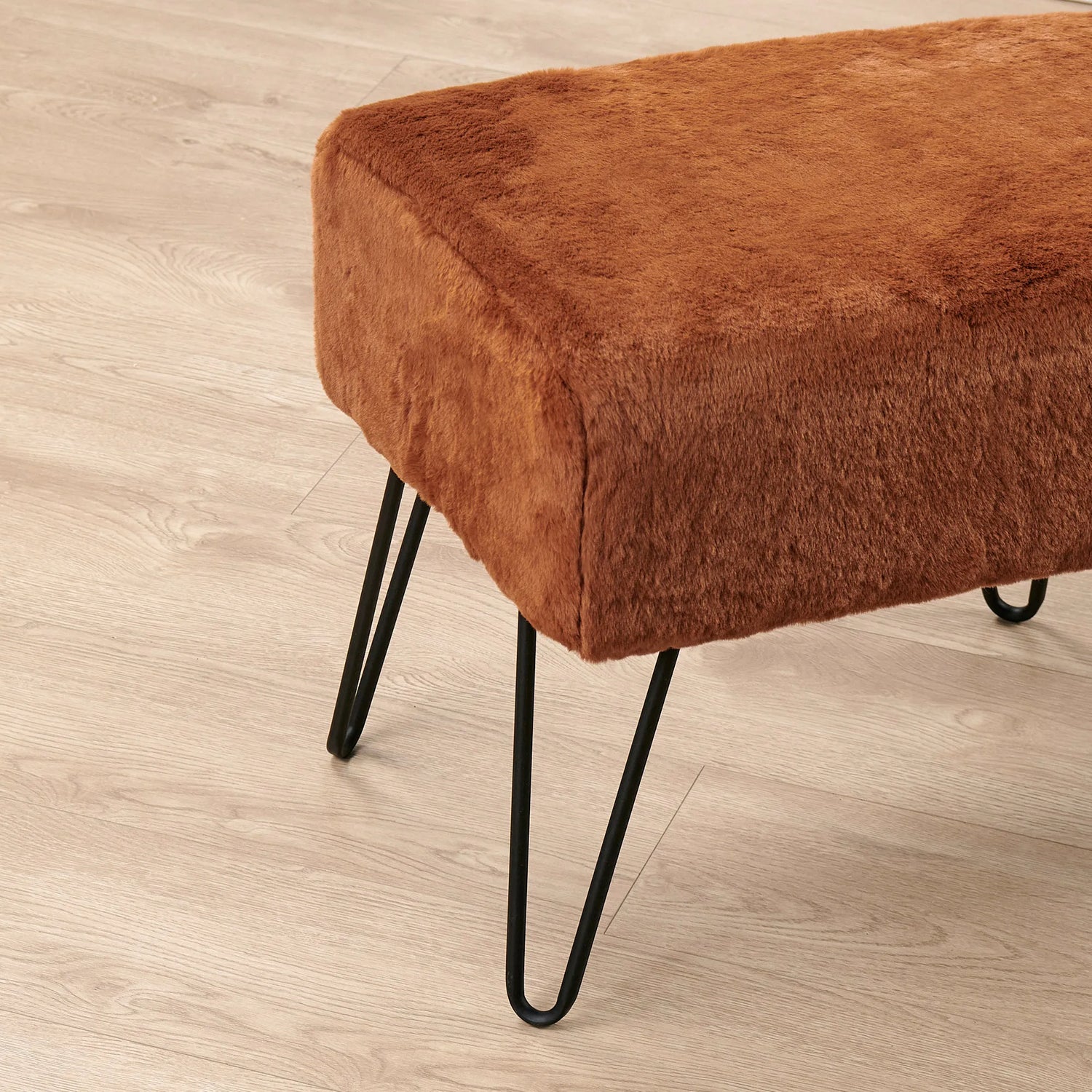 - PROTECT AND CARE FOR YOUR BENCH! Spot clean seat cushion cover only on visible stains and spots using mild soap and a clean, soft towel. Metal hairpin legs may be wiped with a clean, damp towel. All products are built to last a lifetime when proper care and weight capacity is followed. Faux fur fabric is heat-treated for ultimate fade and wear resistance.