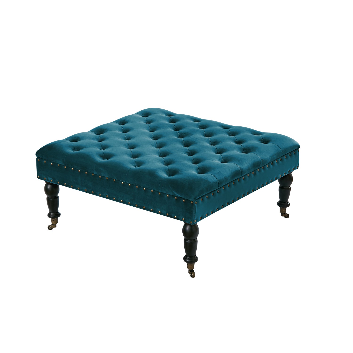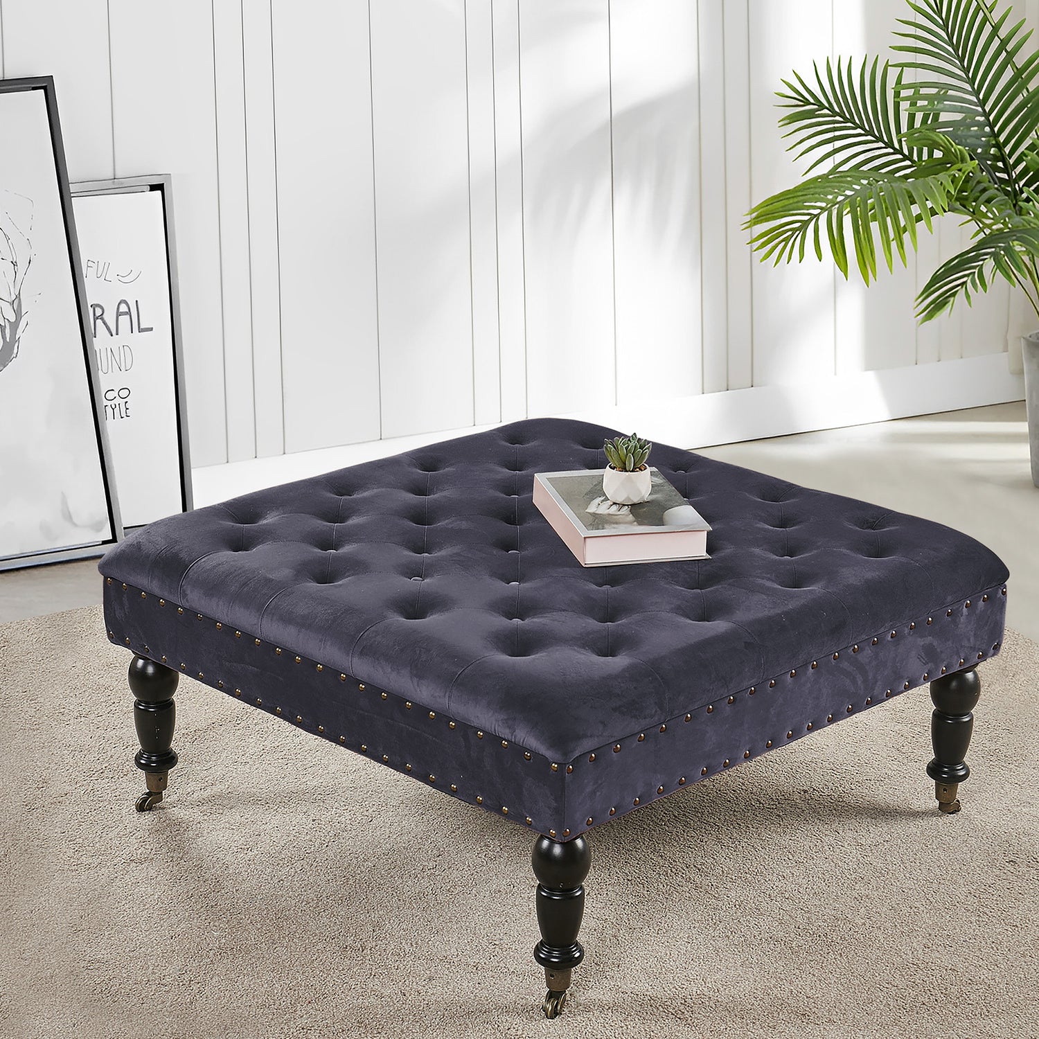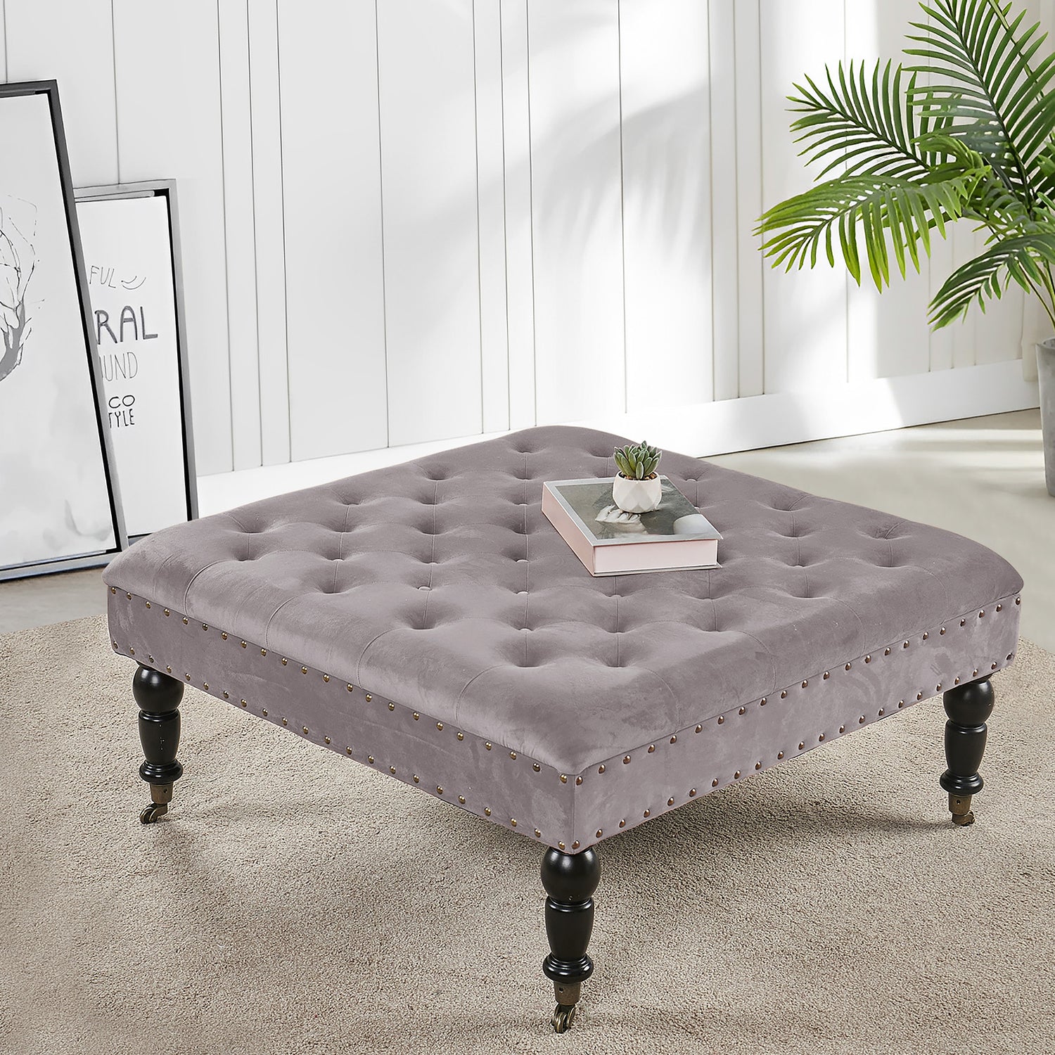 • TIMELESSLY ELEGANT! Supersoft Tufted Coffee Table Ottoman’s elegant and functional design offers a versatility that virtually suits any interior decor. Use your ottoman as a seat, tabletop, or footrest. Add large trays, books, or other accents to add style and extra class. With button tufting and polished brass nailhead accents, your new furniture piece will create the wow factor you’re looking for.