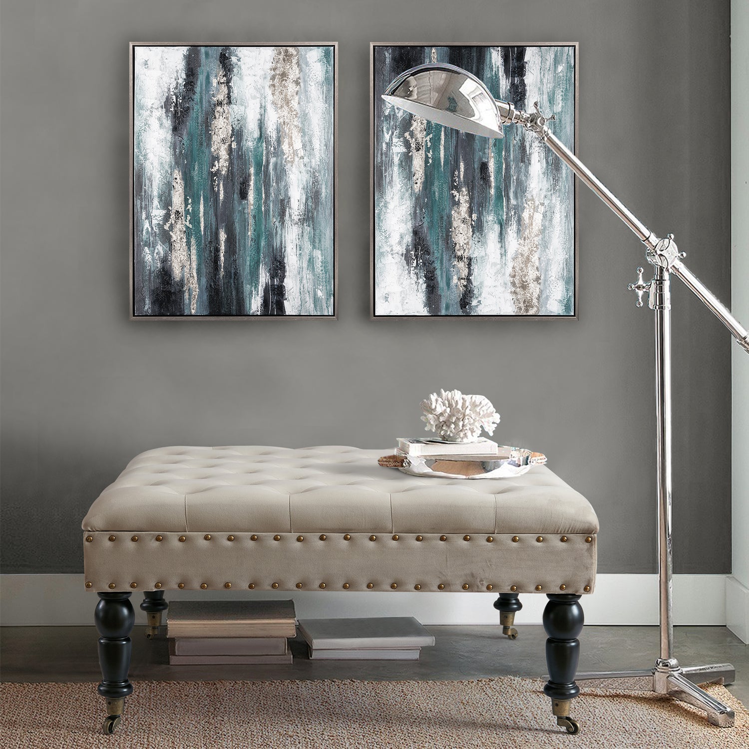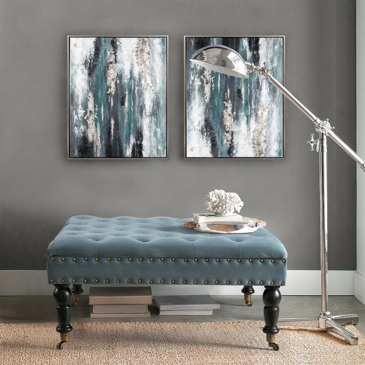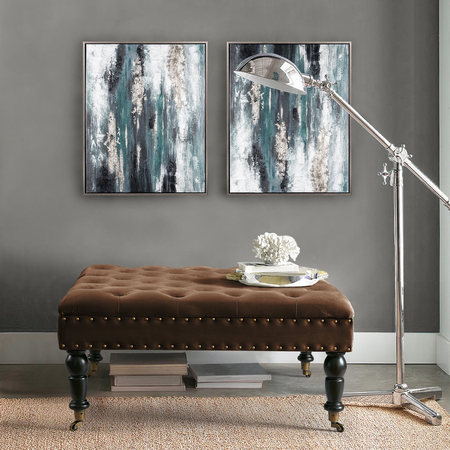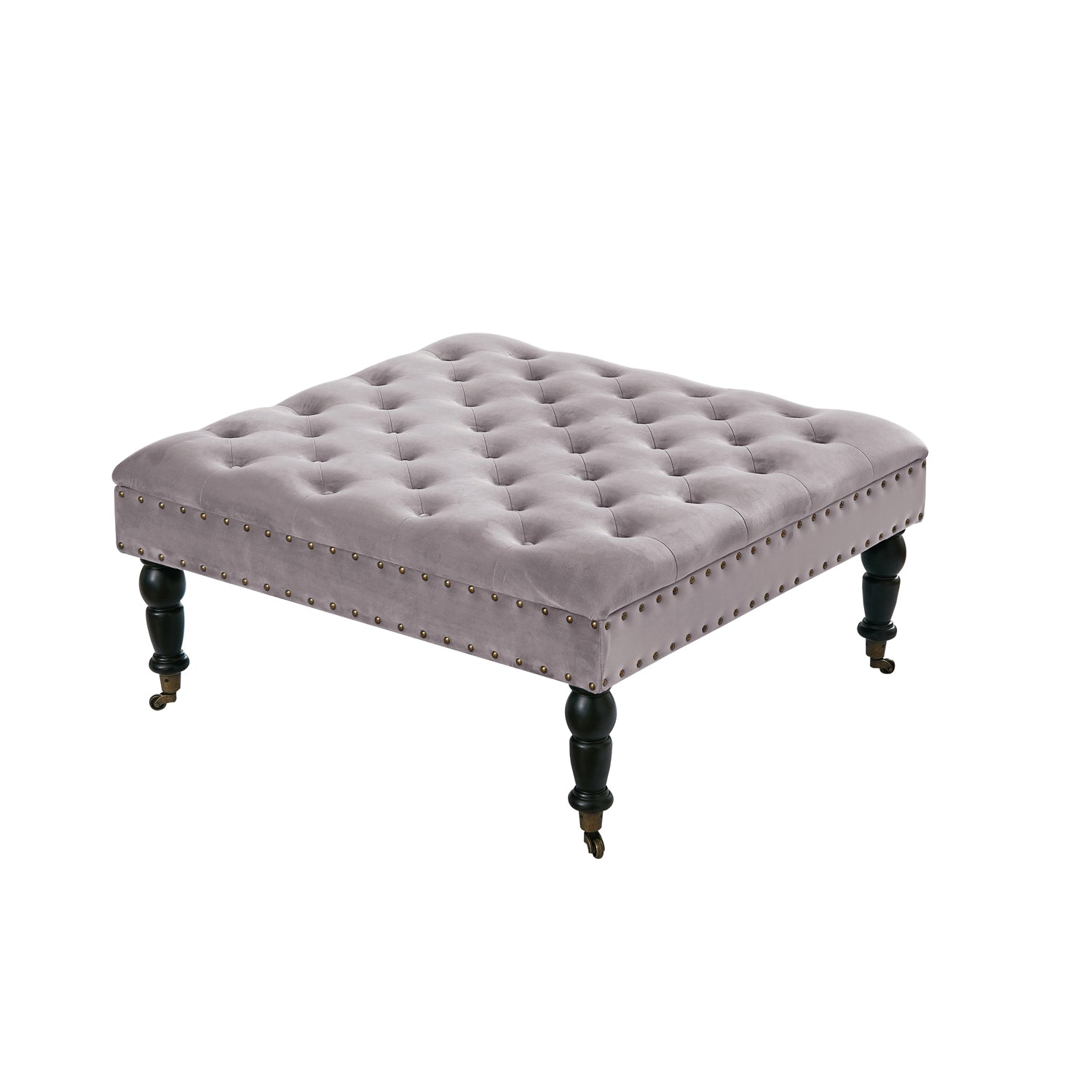 • EXPERTLY UPHOLSTERED! 100% Polyester Fabric. We engineered your ottoman to perfection under strict quality control standards to provide you with a lasting piece of furniture for your home. Constructed with a wood frame, foam cushion, and expertly upholstered in velvety, super soft fabric. Finished with double rows of polished brass nailhead accents, button tufting, and wooden carved legs.