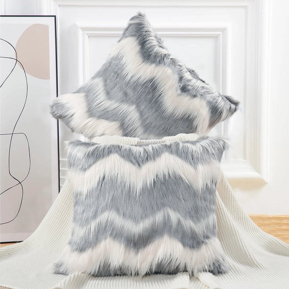 Wavy Pattern Faux Fur 2 Piece Decorative Pillow Covers (20" x 20")Wavy Pattern Faux Fur 2 Piece Decorative Pillow Covers (20" x 20")- Regular price