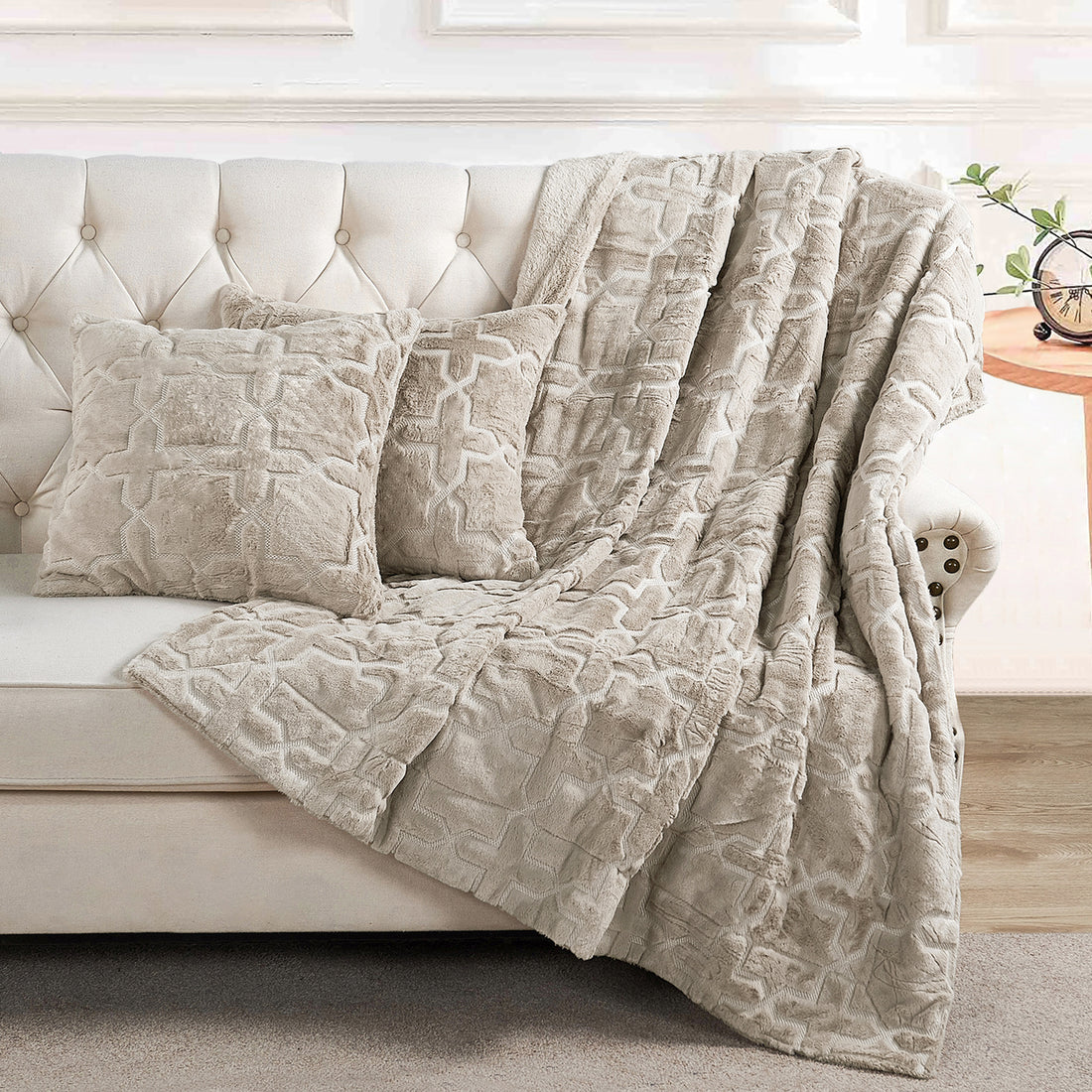 Tip Printing Light Faux Fur Throw/Pillow Cover/Ottoman 4 Piece SetTip Printing Light Faux Fur Throw/Pillow Cover/Ottoman 4 Piece Set- Regular price