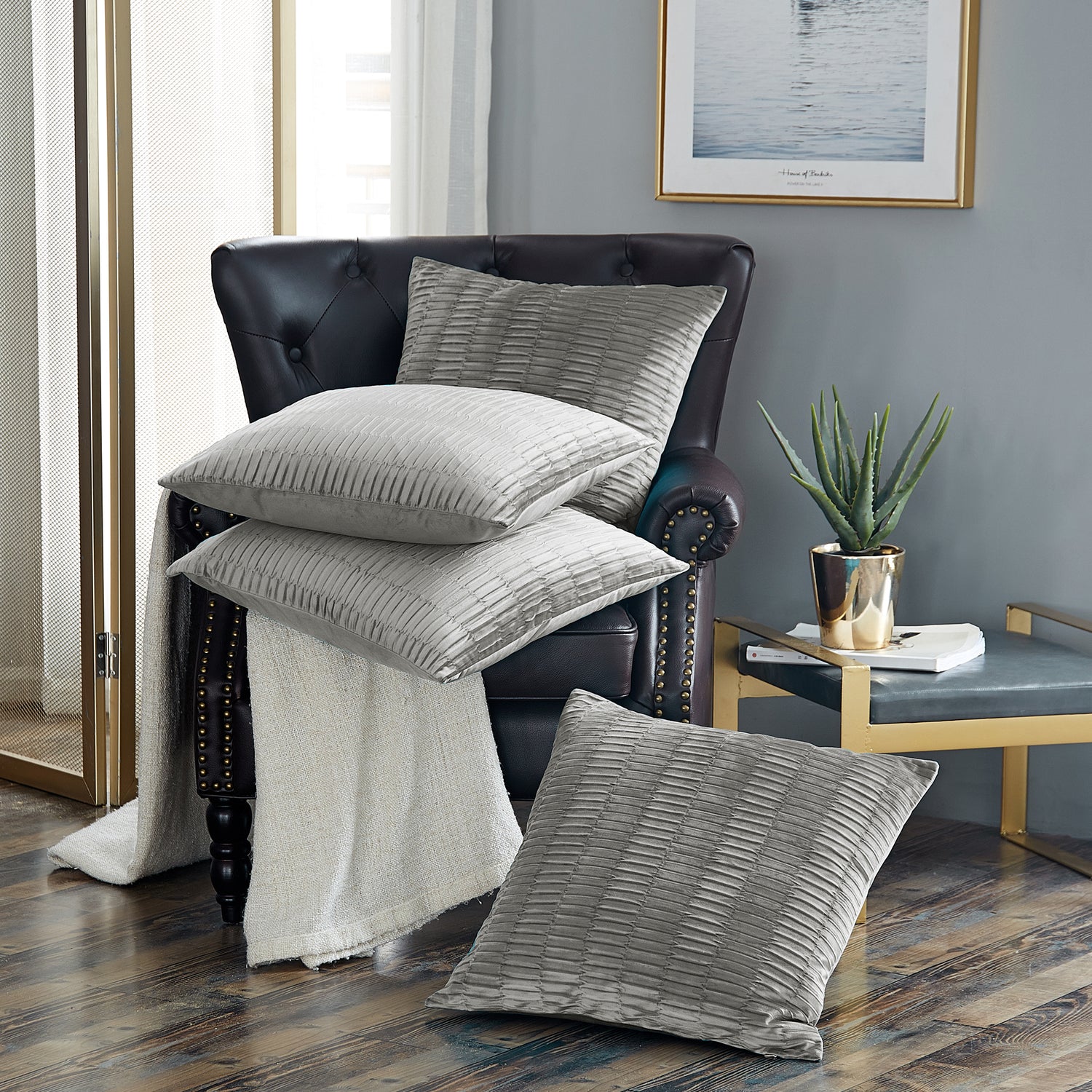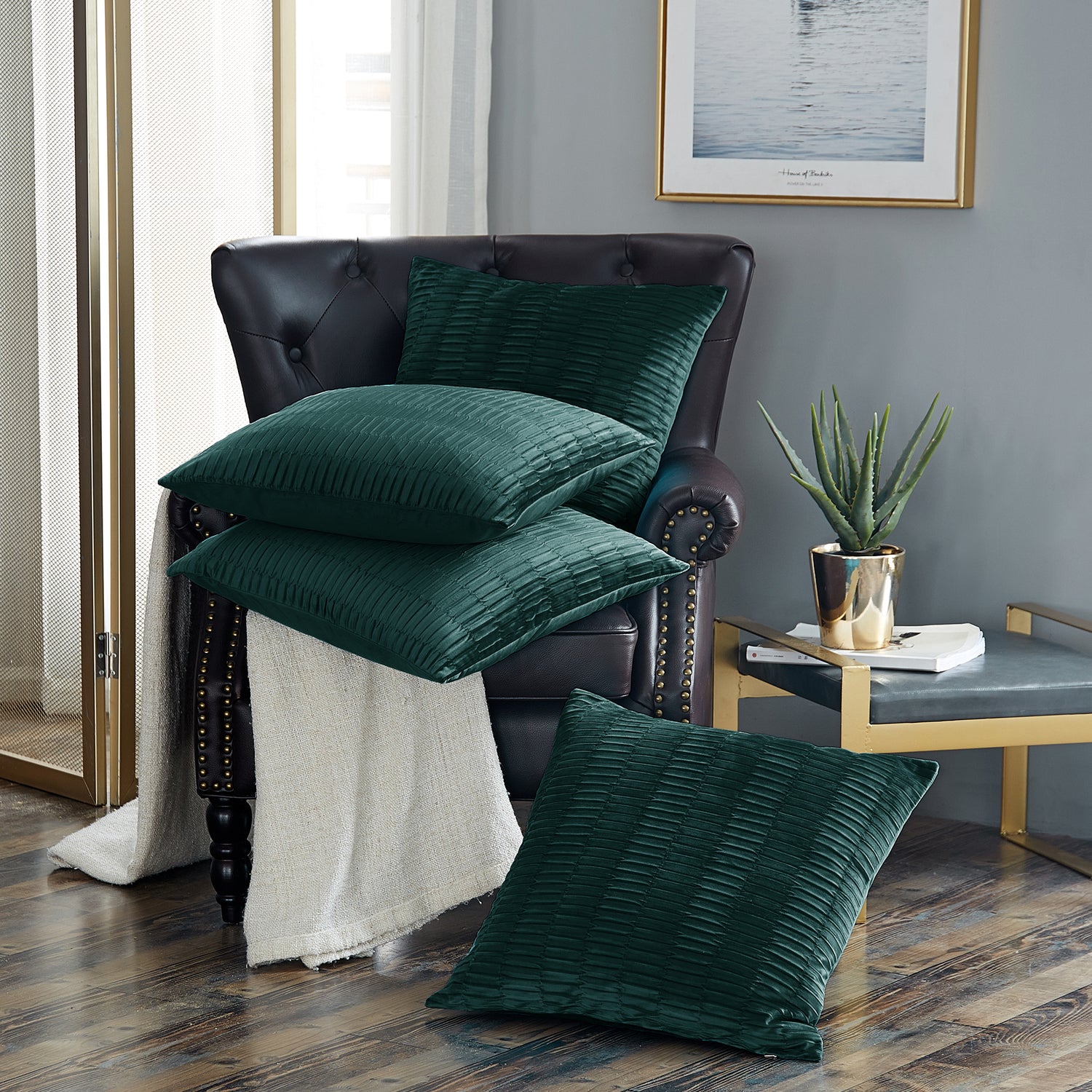 - ELEGANT PLEATED VELVET! Transform your old pillows into something exciting and fresh! Pleated Velvet Pillow Shells quickly and effortlessly pull your room together, creating a polished yet inviting decor. The front of each shell boasts a crisp pleated design offering a modern quality that adds a layer of subtle texture to your couch, bed or armchair.
