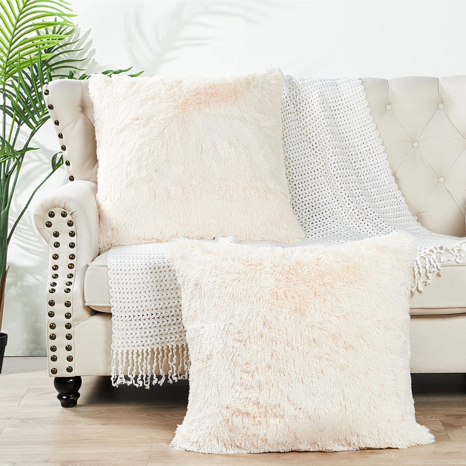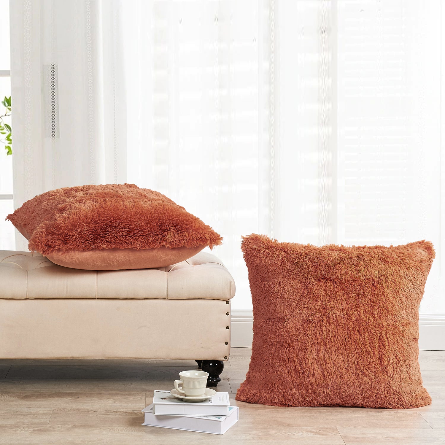 Shaggy Faux Fur 2 Piece Decorative Throw Pillow Covers