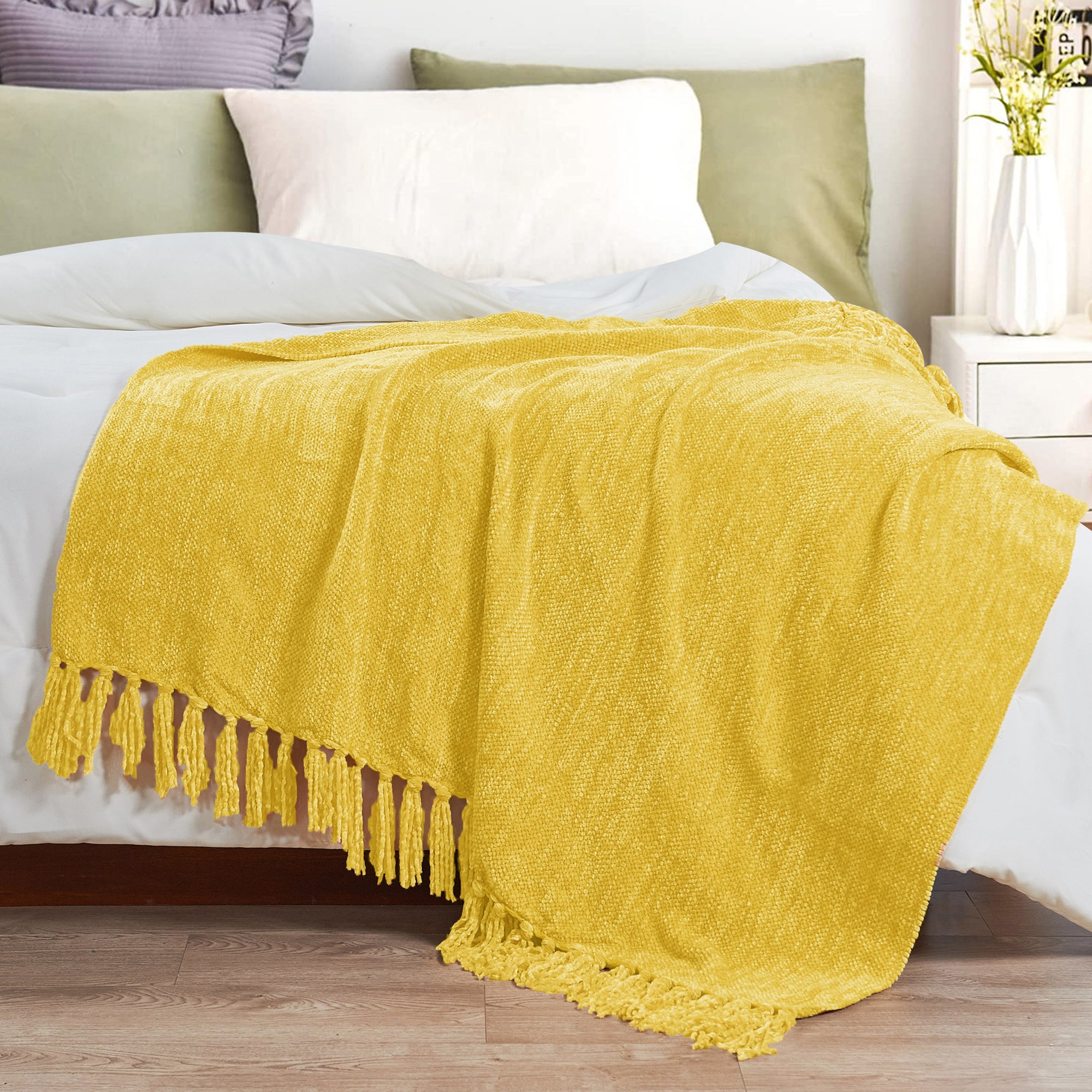 - LIGHT WEIGHT, Soft Spun Crystal Chenille Throw Features Fringe Ends For Casual Everyday Use. Offered in multiple radiant color variations making is easy to find the perfect blanket for any room. Heat treated to lock in color to avoid color fading.