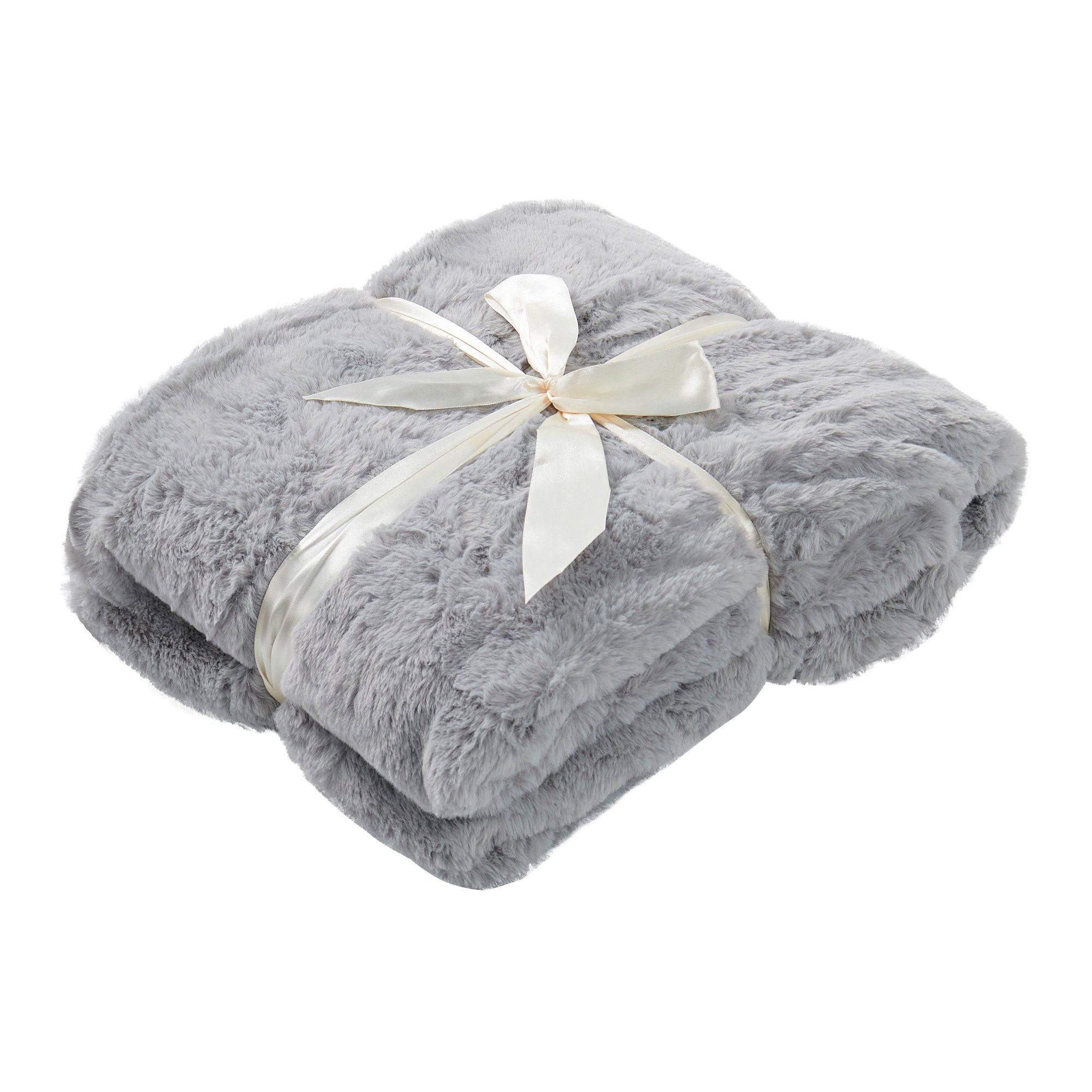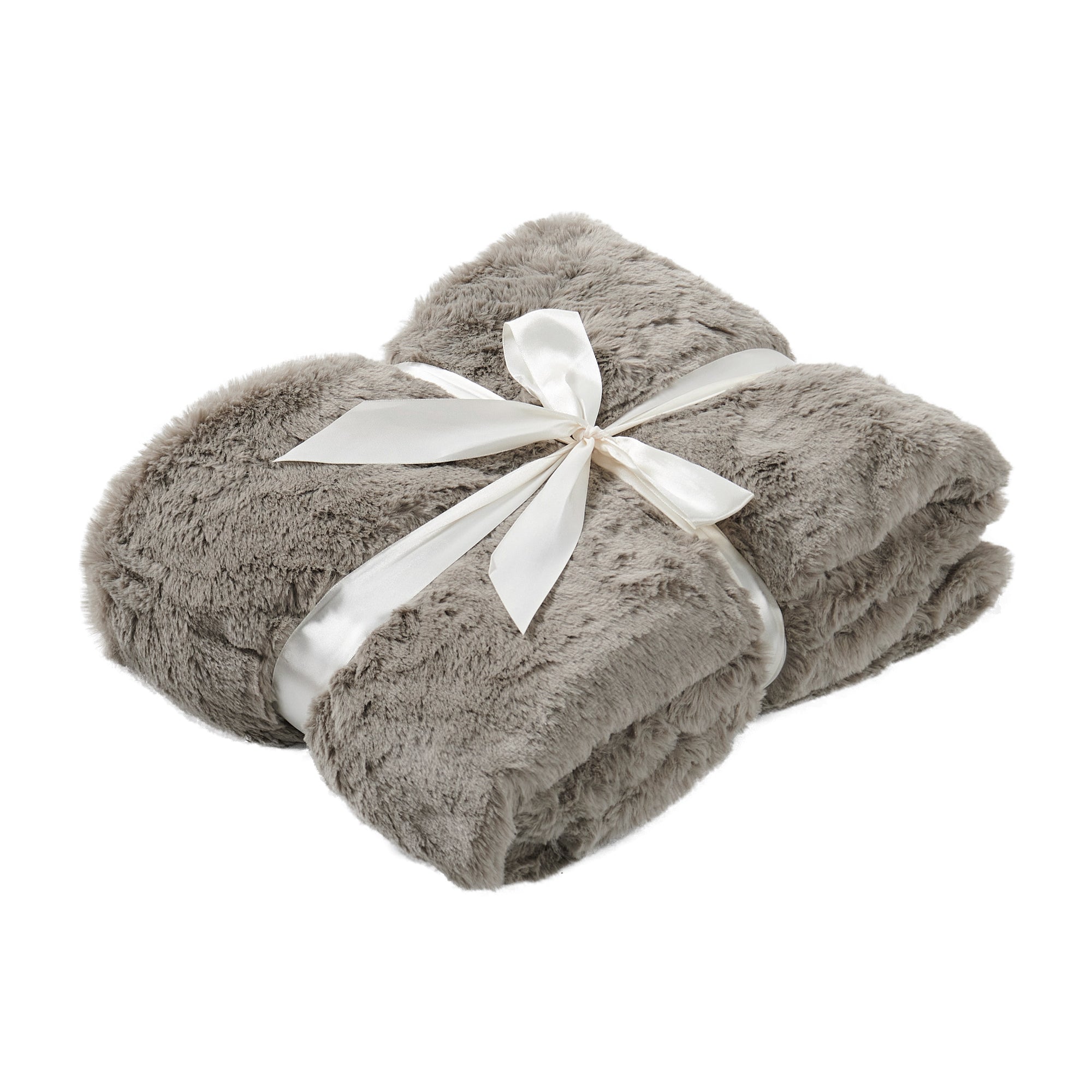 Add a cozy and elegant touch to your living space with this Solid Light FauxFur Throw. Made from high-quality materials, this throw is not only pleasing to the eye but also extremely comfortable to the skin. Its pristine fauxfur texture will create a warm and inviting ambiance that you'll love. This versatile throw makes the perfect gift for your loved ones to snuggle up in when it's cold outside. It comes folded and wrapped in a ribbon which adds to its charm. With proper care, this throw will last a lifetime!