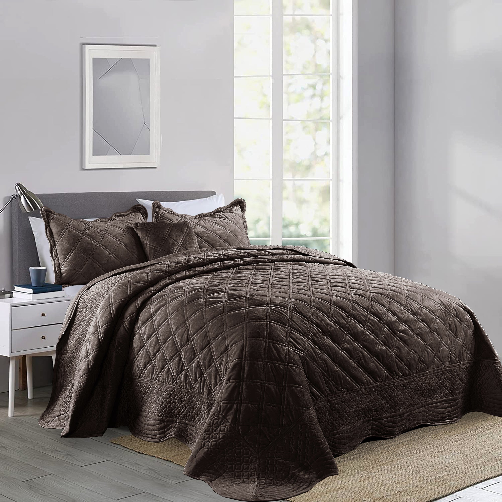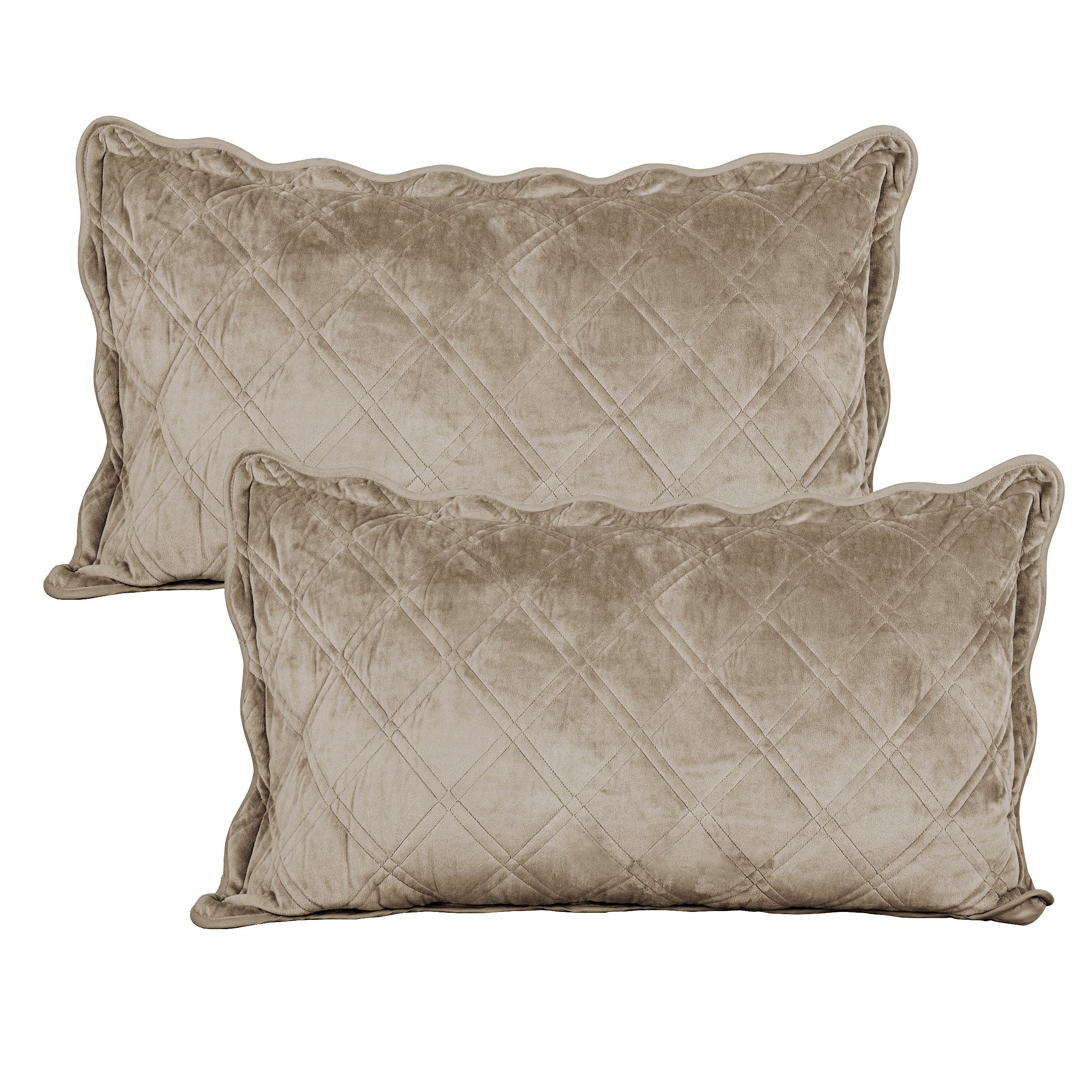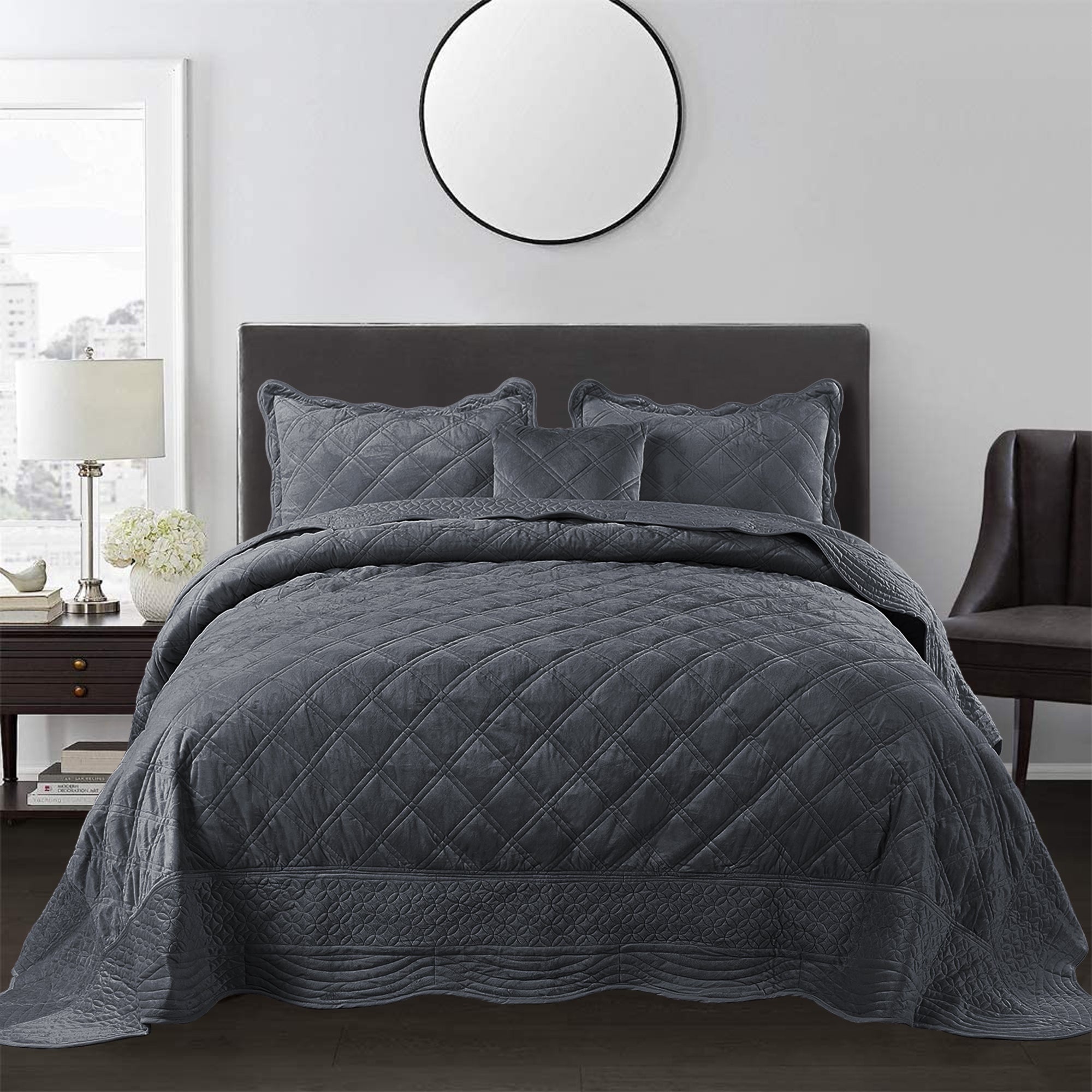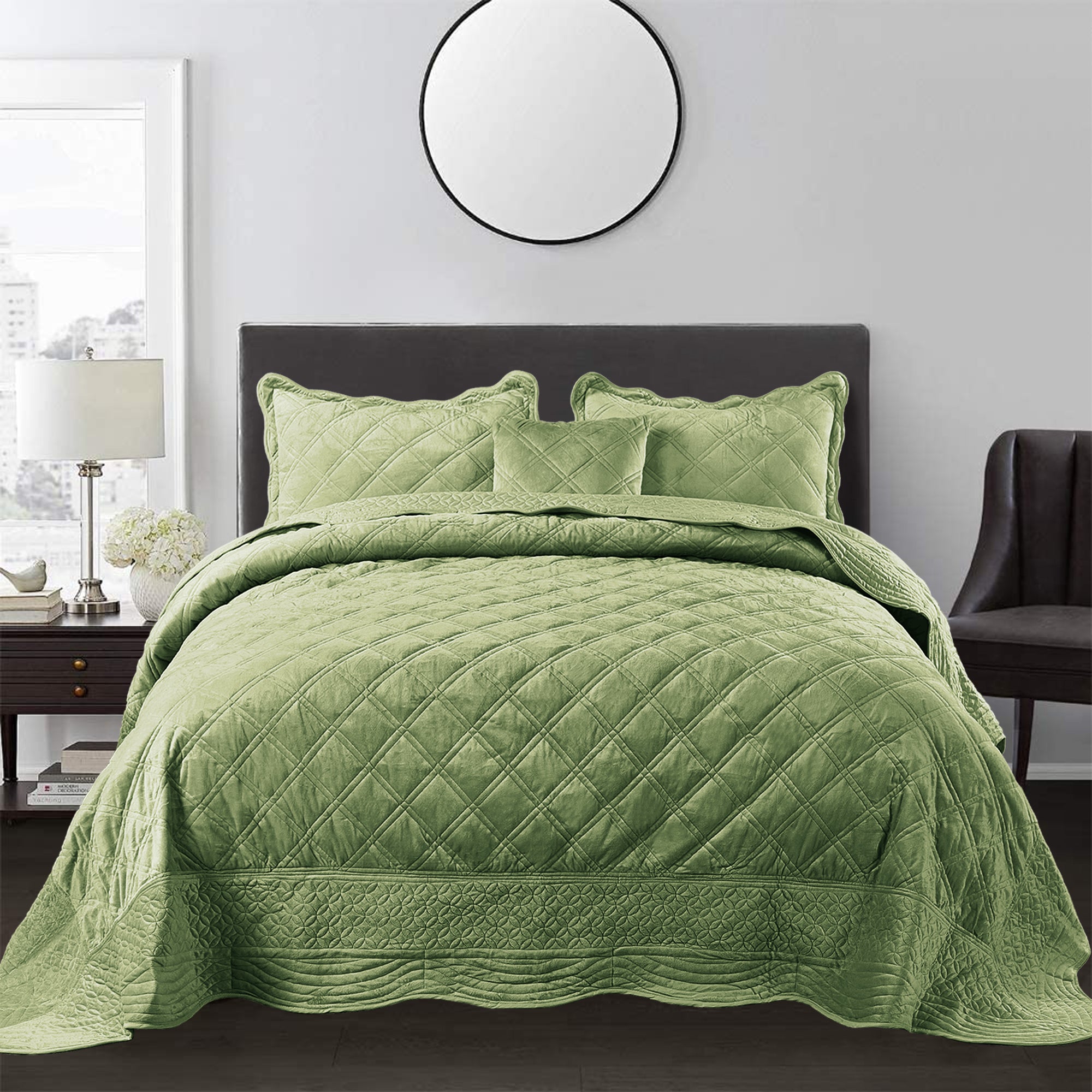 - ELEGANT DIAMOND DESIGN - Beautifully and artfully crafted quilt set features diamond pattern on both sides. Their solid-hued design sets an understated foundation in your bedroom, while scalloped accenting and embroidered details offer a boost of style.