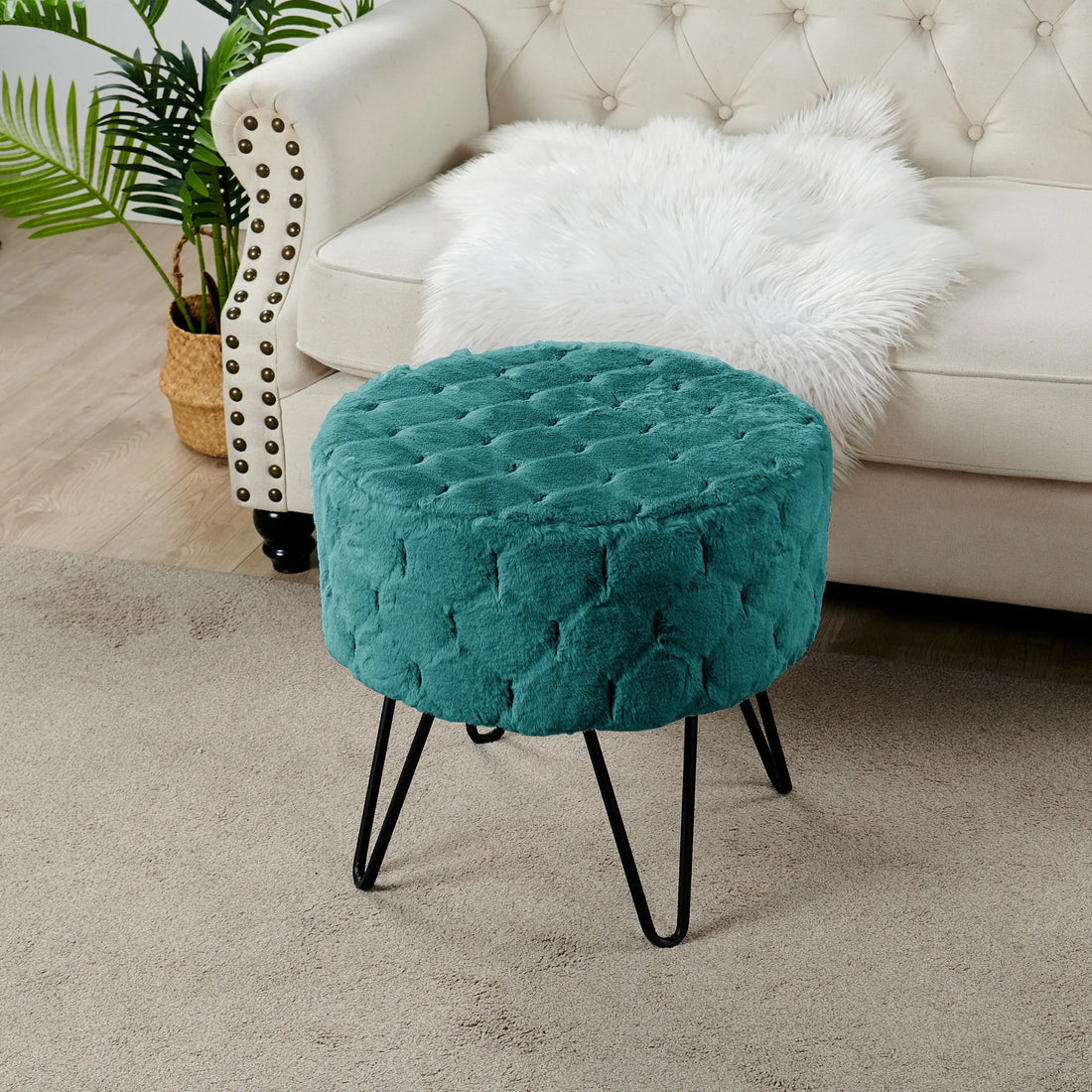 Jacquard Solid Faux Fur Round Ottoman (18" x 18" x 18")Jacquard Solid Faux Fur Round Ottoman (18" x 18" x 18")- Regular price