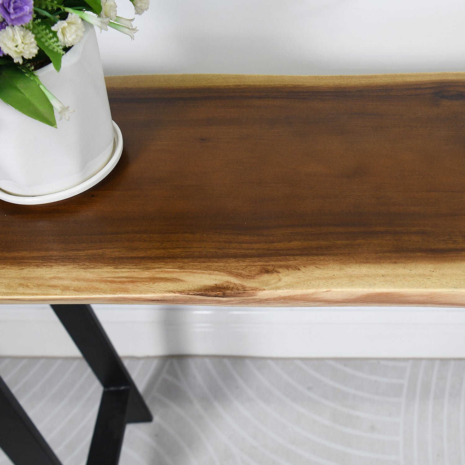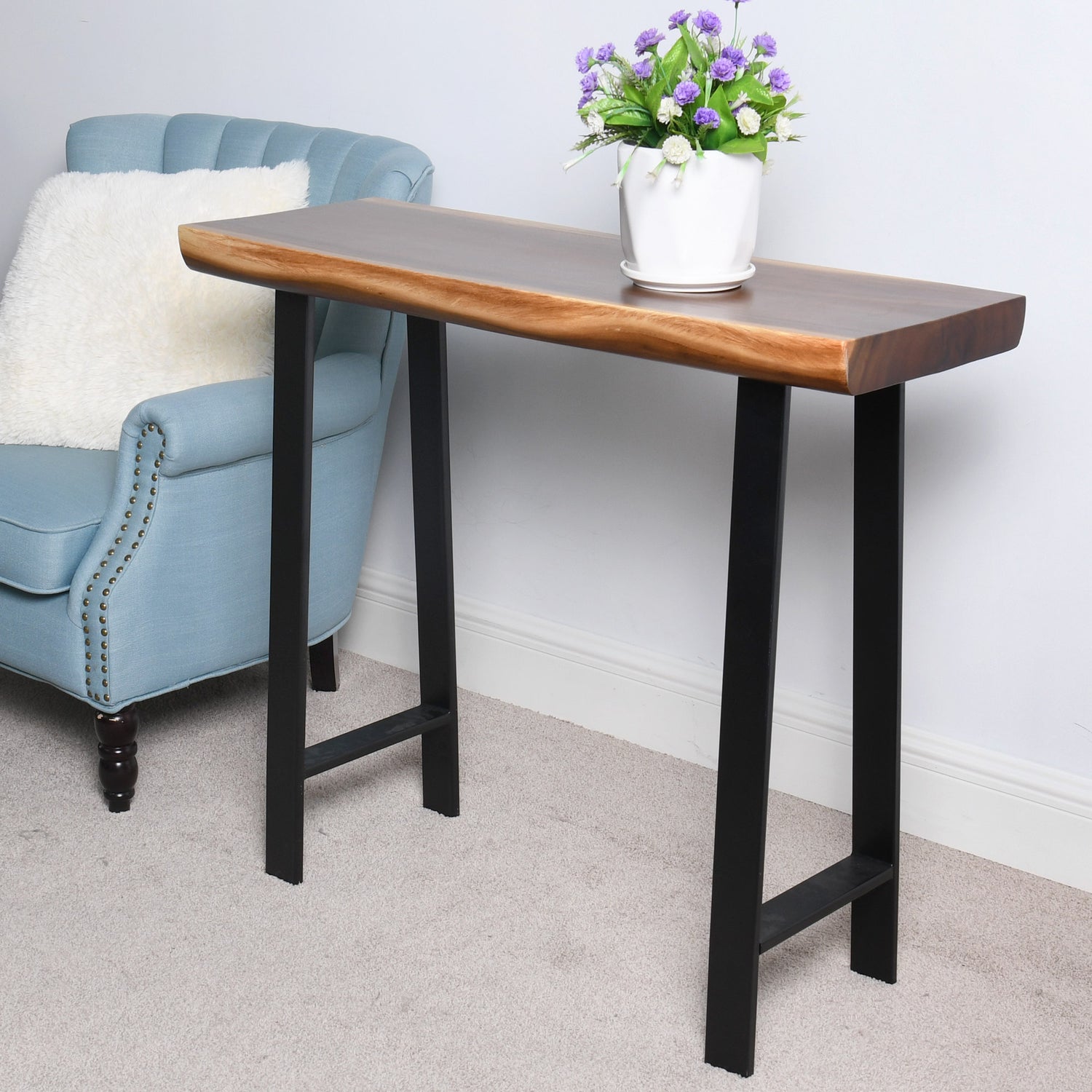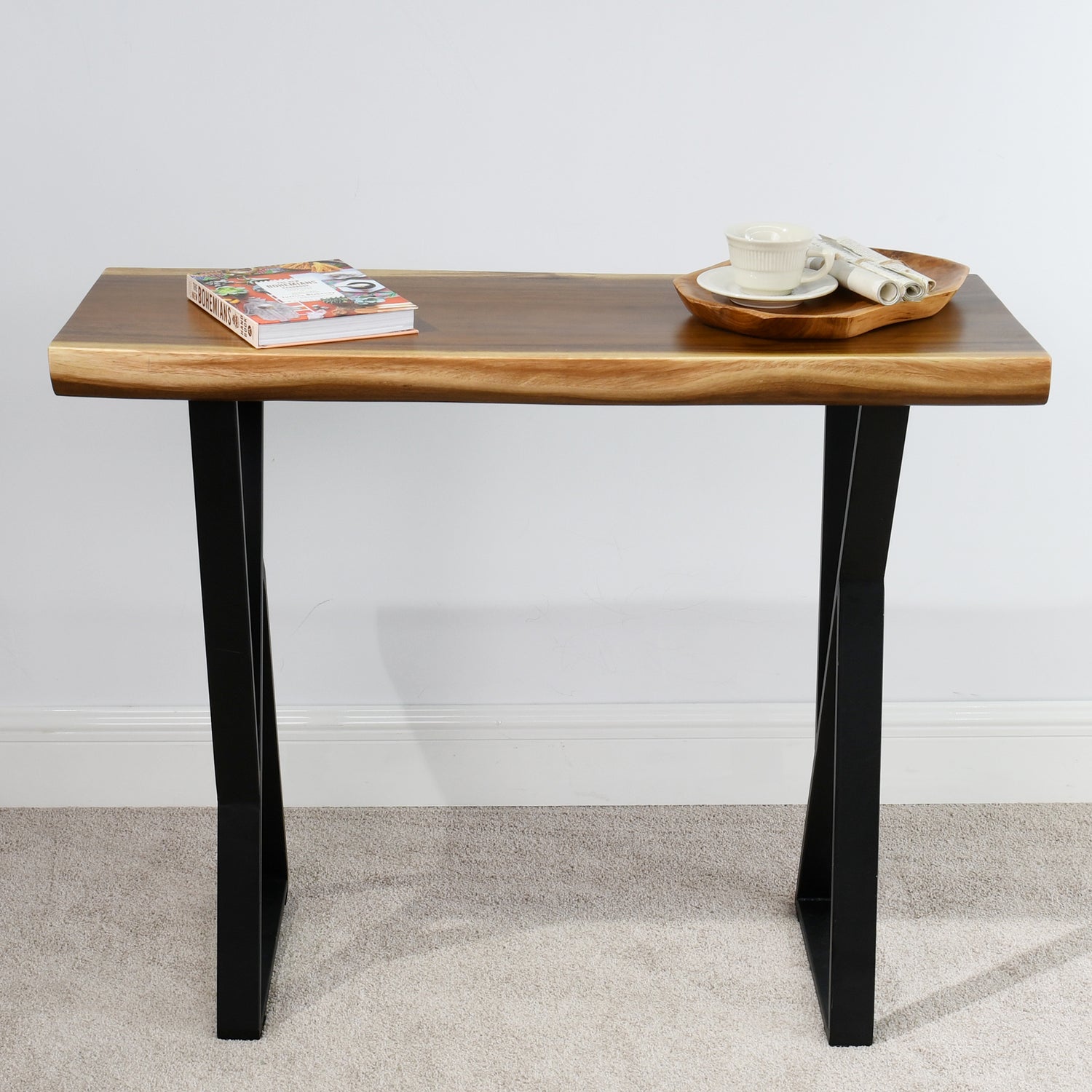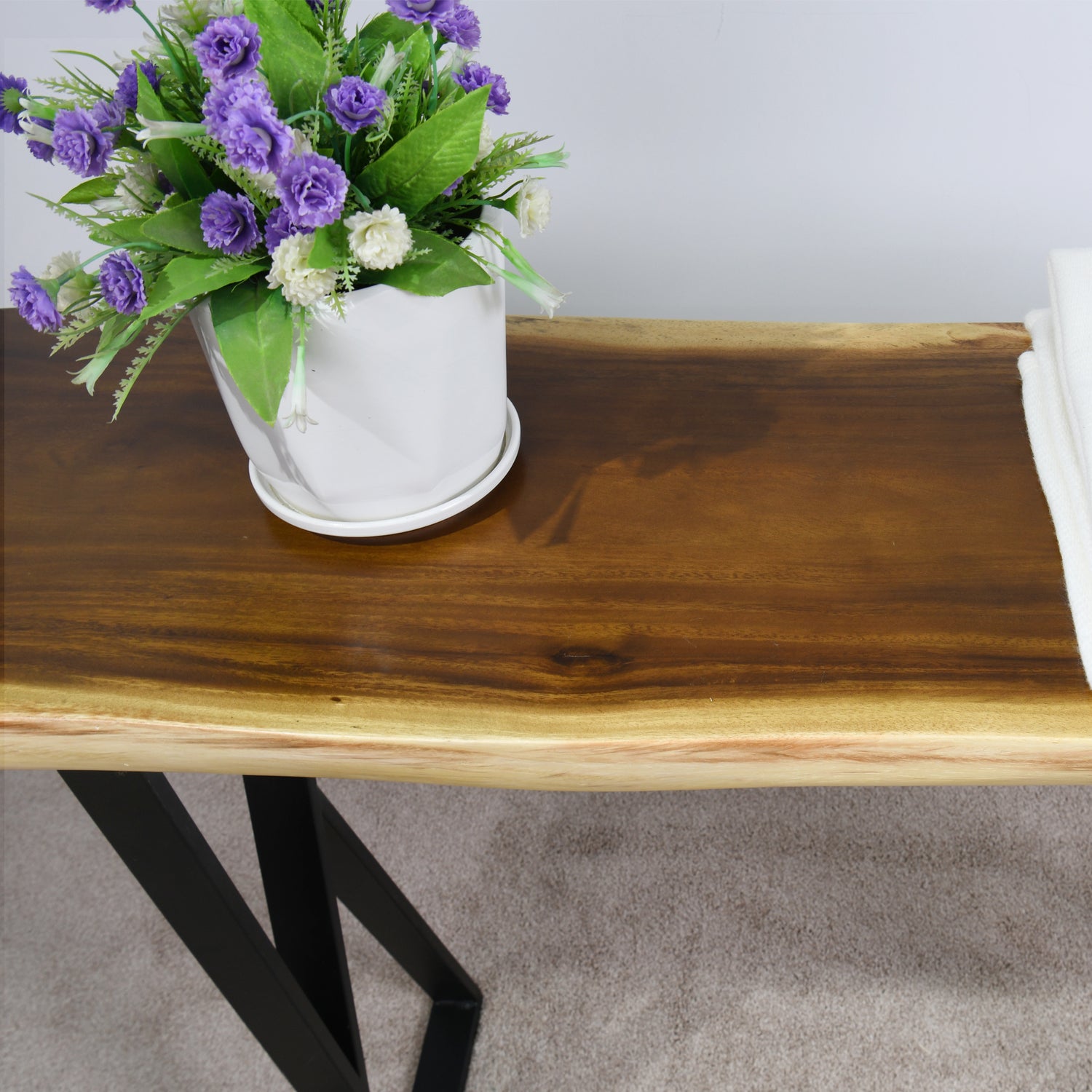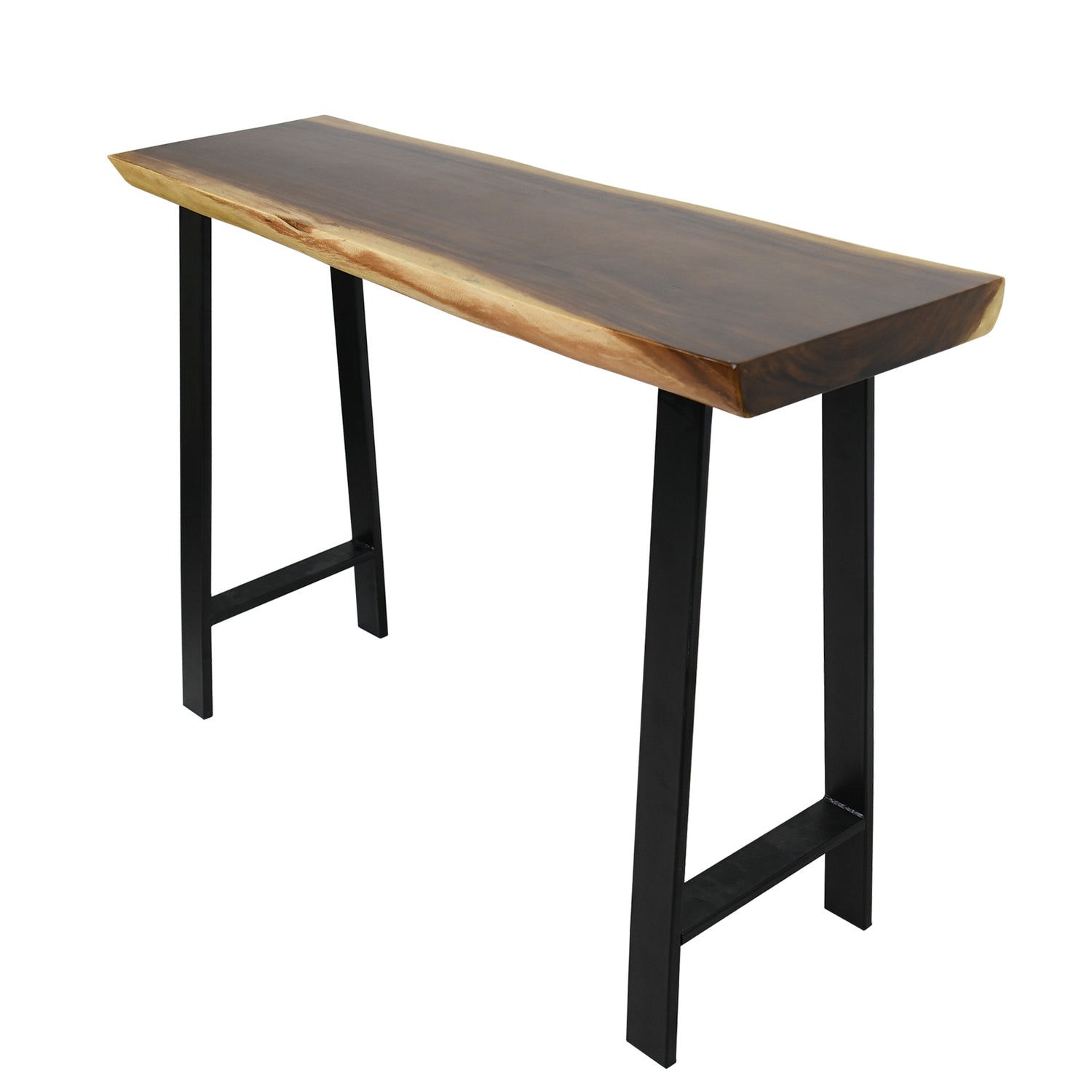 Elevate your living space with this Natural Wood Rectangle Coffee Console Table crafted from suar wood. Each piece is a unique work of art, showcasing its own distinct shape and grain pattern. Suar wood is not only beautiful, but also practical, making it a timeless living accessory. Please note that finished measurements may vary 1-2 inches due to the natural patterns of the wood. Skilled partisans hand-pick and sand down each slab of wood to preserve its natural shape, wood grain patterns, and color. The wood undergoes a meticulous multi-step process that includes recombination, polishing, painting, and waxing, and is finished with a natural lacquer for added durability. With proper care and weight capacities followed, this coffee console table will last a lifetime.