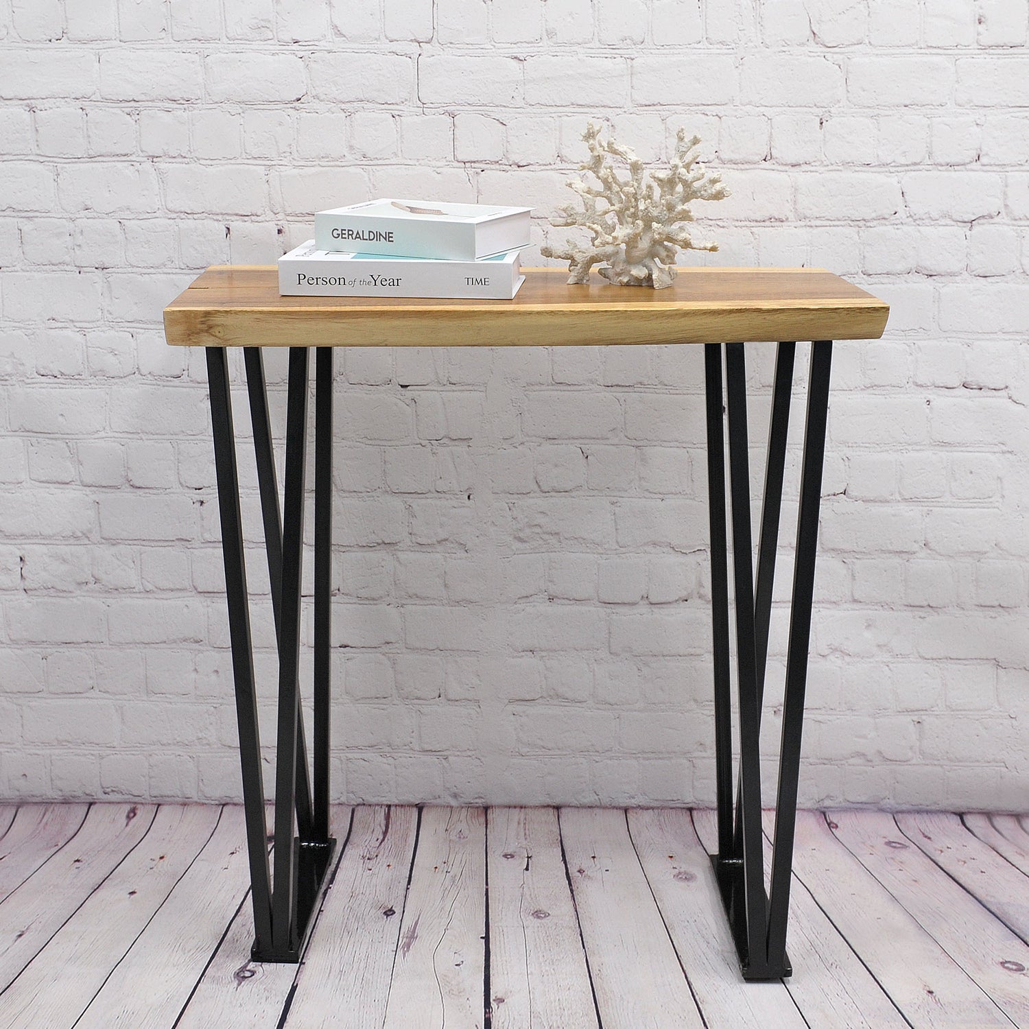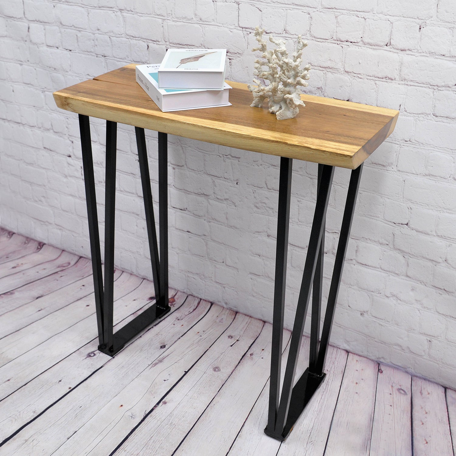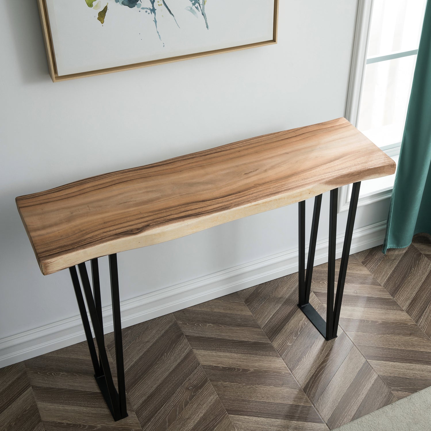 Elevate your living space with the Greenage Suar Wood Console Table, a stunning blend of practicality and art. Crafted from hand-picked suar wood, each piece boasts a unique shape and grain pattern that adds character to your décor. Finished measurements may vary 1-2 inches due to the natural variations of the wood. The flat iron legs provide sturdy support, and all hardware and assembly instructions are included for easy setup. With a multi-step finishing process that includes polishing, painting, and waxing, this table is completed with a natural lacquer that preserves its color and stability. To maintain its beauty, simply dust the surface with an ultra-soft rag, and occasionally apply a sealer. With proper care and weight capacity, this console table will last you a lifetime.
